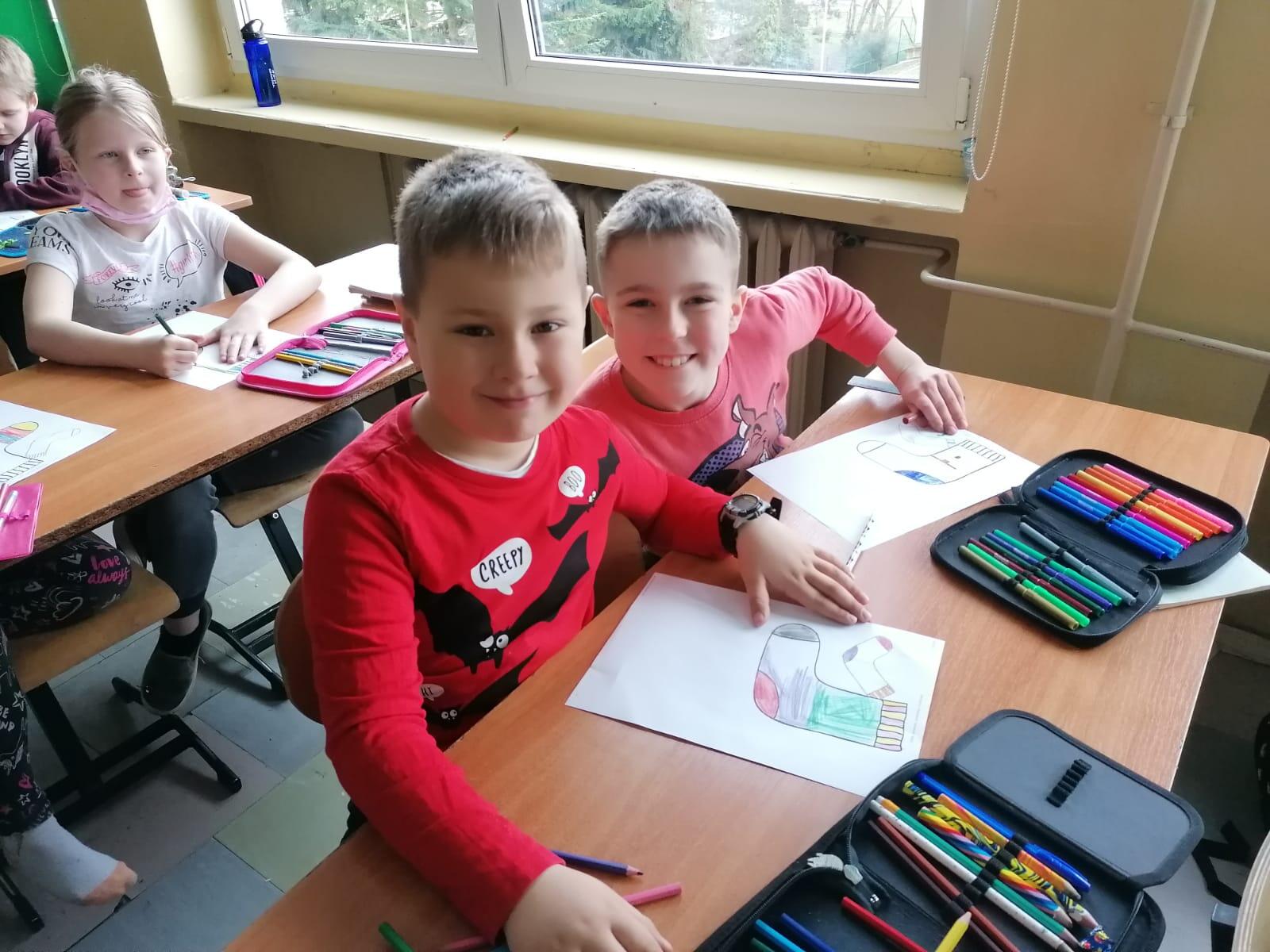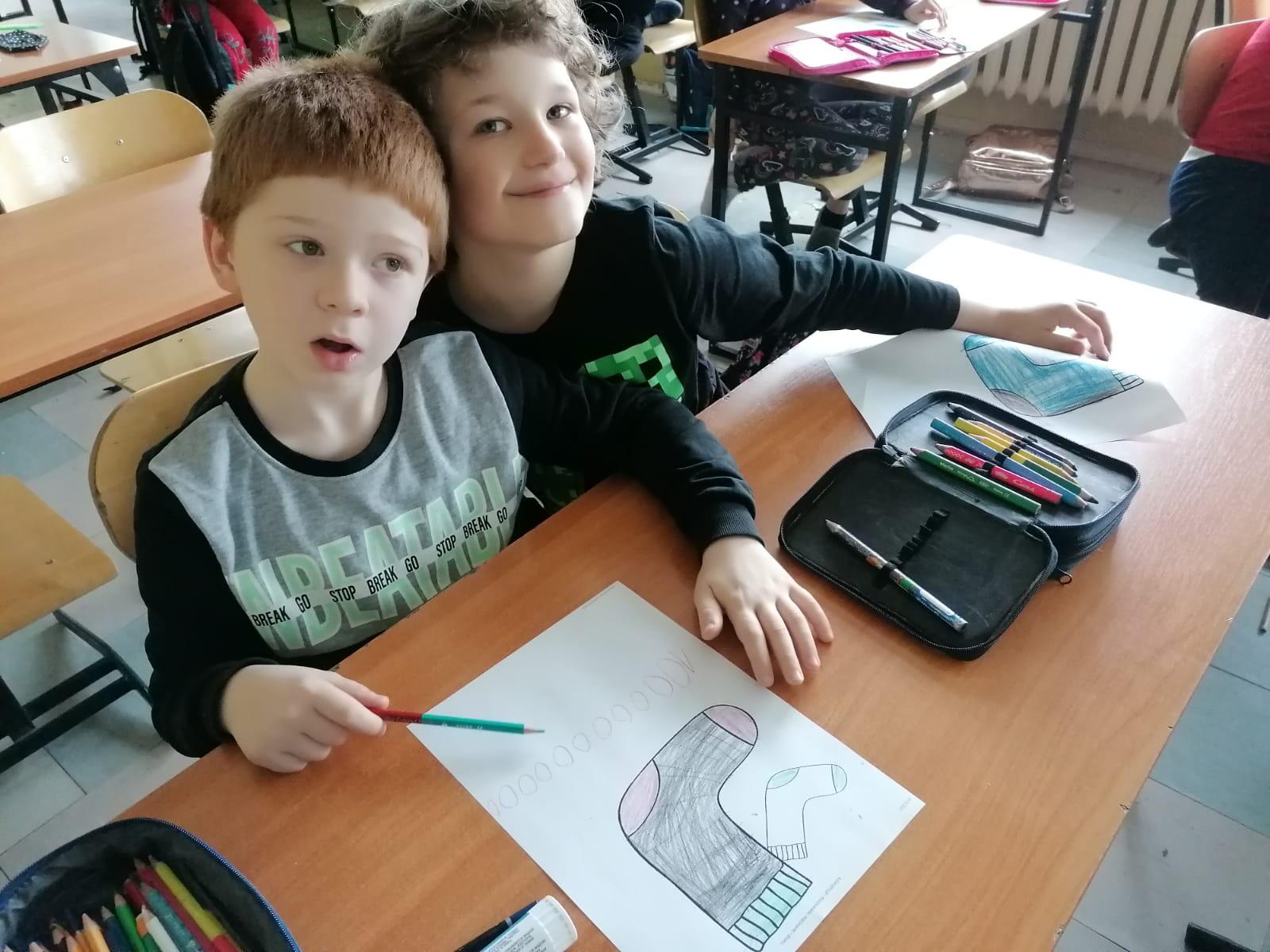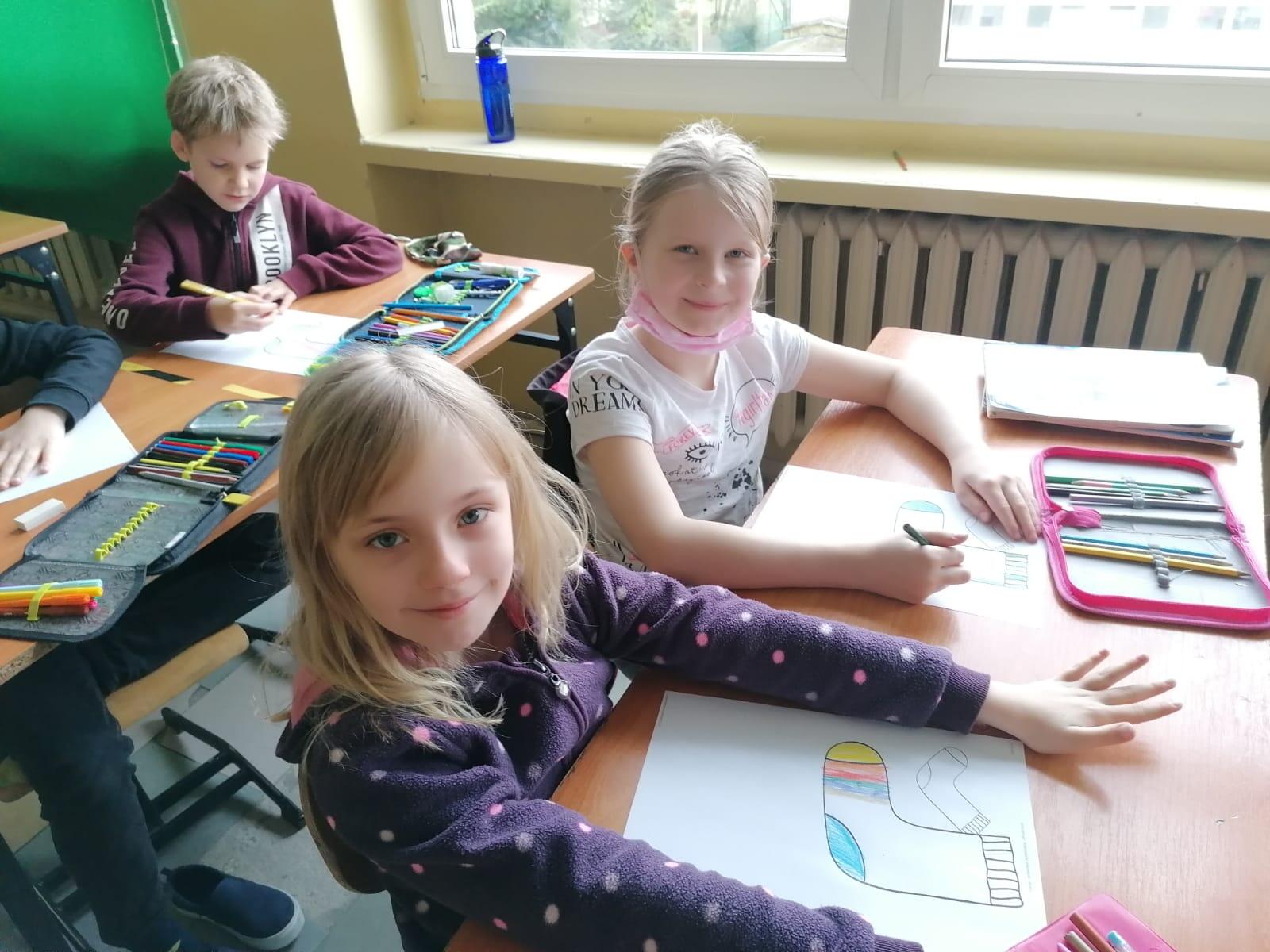pary. Dzieci przygotowywały różnymi technikami kolorowe skarpetki, które następnie znalazły się na tablicy w budynku naszej szkoły.