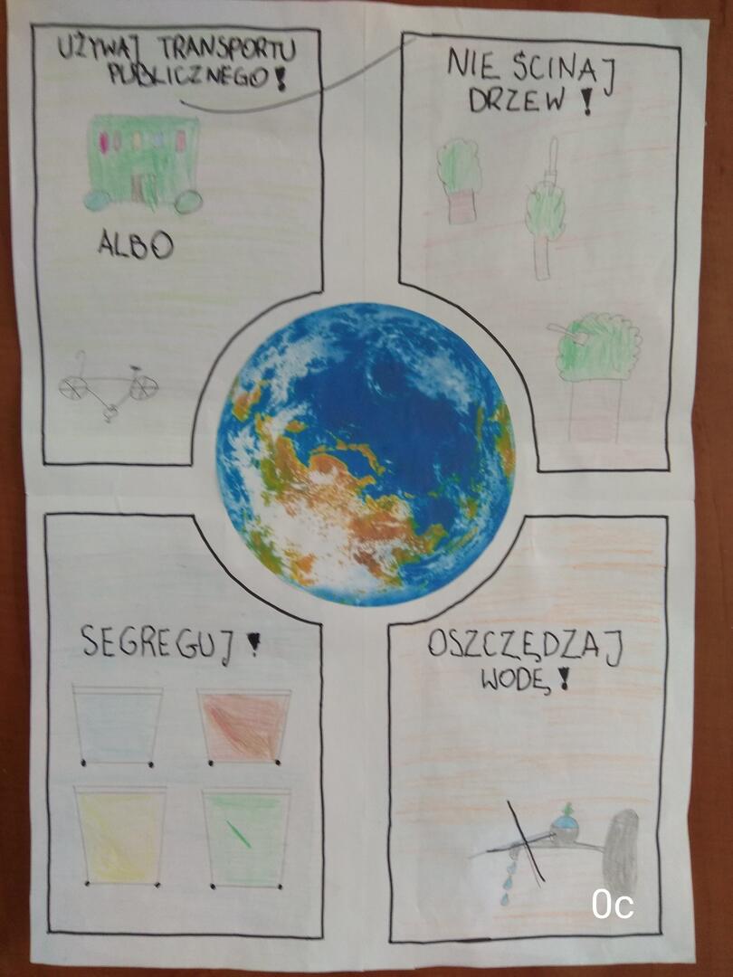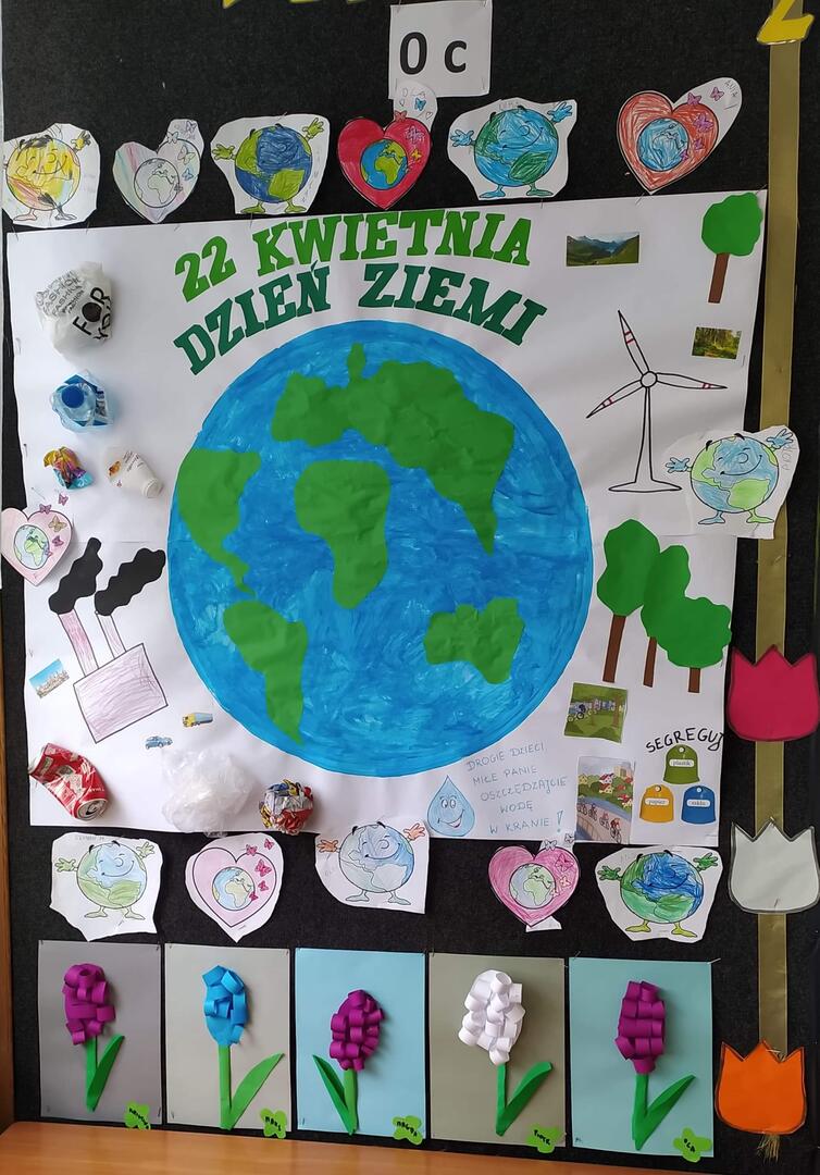 To bardzo dobra okazja, aby przypomnieć sobie o tym, że wszyscy jesteśmy odpowiedzialni za naszą planetę i każdy z nas, może przyczynić się do jej ochrony. Przykłady takich działań dzieci z zerówek przedstawiły za pomocą plakatów, które zostały wykonane podczas zajęć.