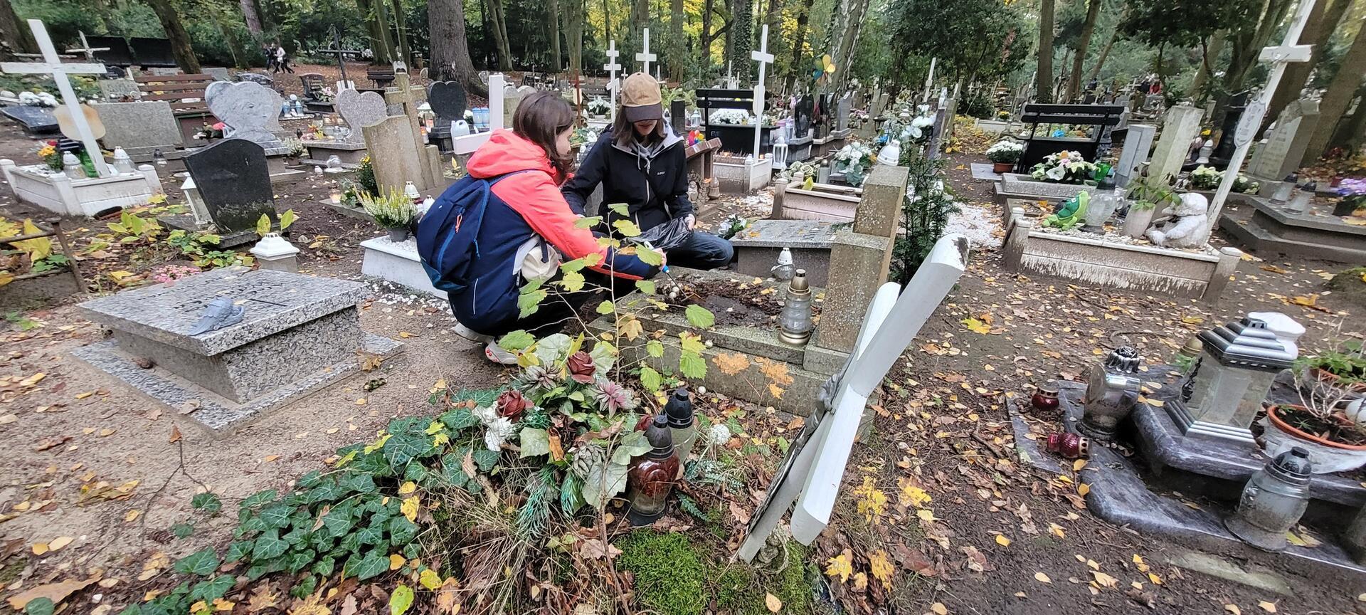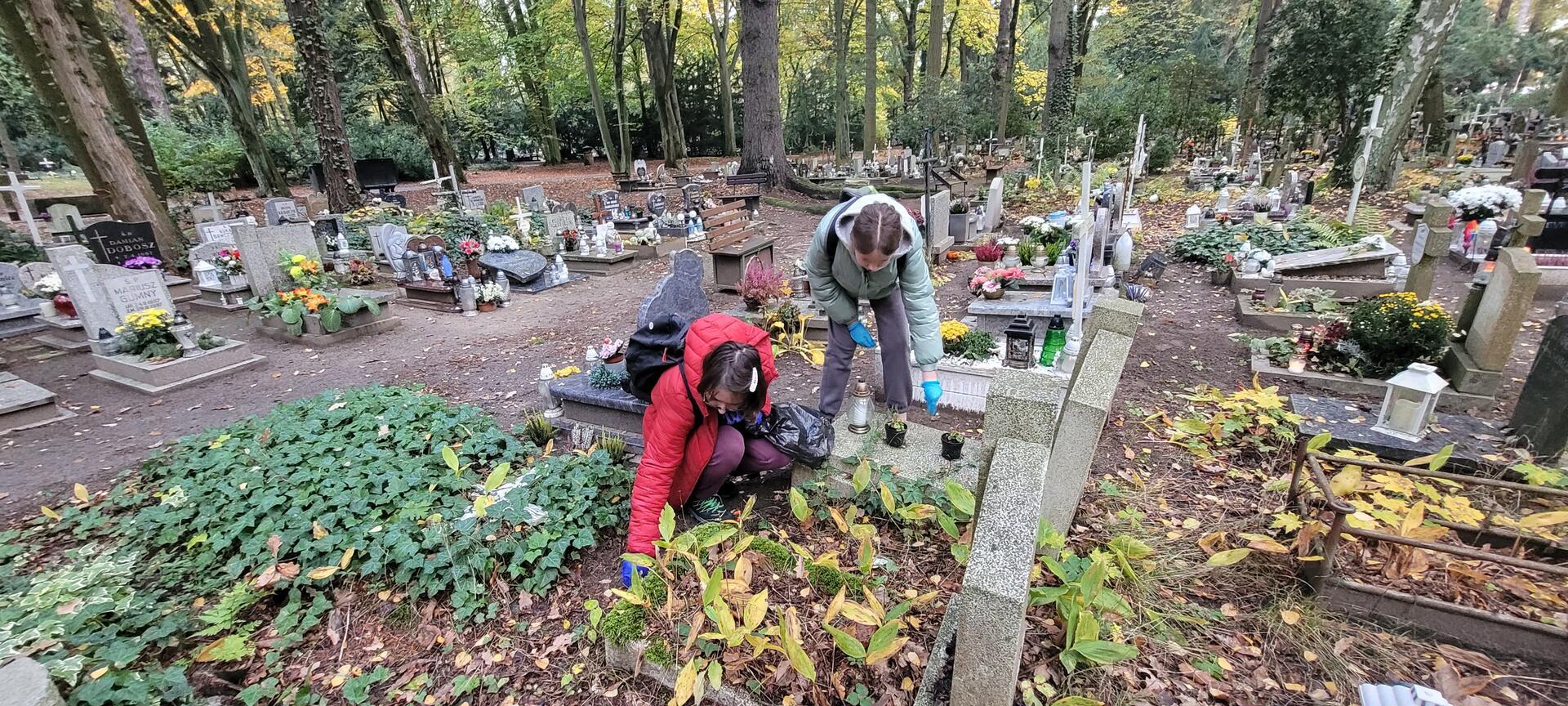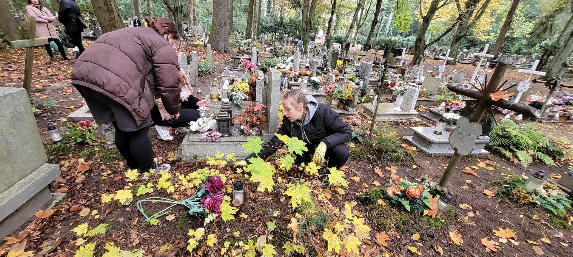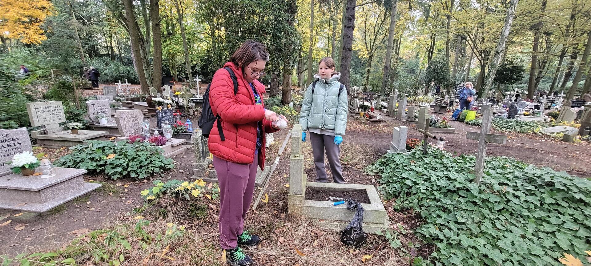 W sobotę, 28 października wolontariusze z naszego Szkolnego Koła Wolontariatu, jak co roku spotkali się na Cmentarzu Centralnym w Szczecinie, gdzie porządkowali groby w kwaterze dziecięcej. Swoją uwagę skupili przede wszystkim na tych najbardziej zaniedbanych, często najstarszych i już bezimiennych. Do pracy przystąpili zaopatrzeni w rękawiczki, worki, grabie i inny potrzebny sprzęt. Na uporządkowanych grobach zapalili znicze, zebrane wcześniej przez Samorząd Uczniowski. Te małe groby i pomniki, czasami tylko krzyże z metalu lub z drewna, tabliczki z datami urodzin i śmierci wzbudziły bardzo silne emocje. Śmierć jest częścią życia każdego człowieka, ale trudno z nią się pogodzić, zwłaszcza jeśli dotyczy dziecka.