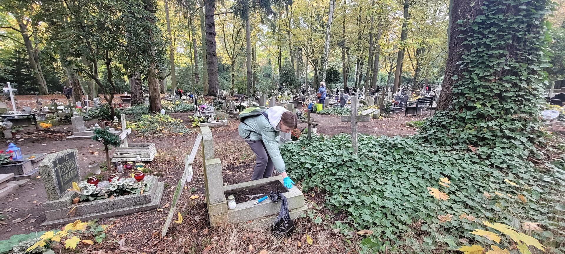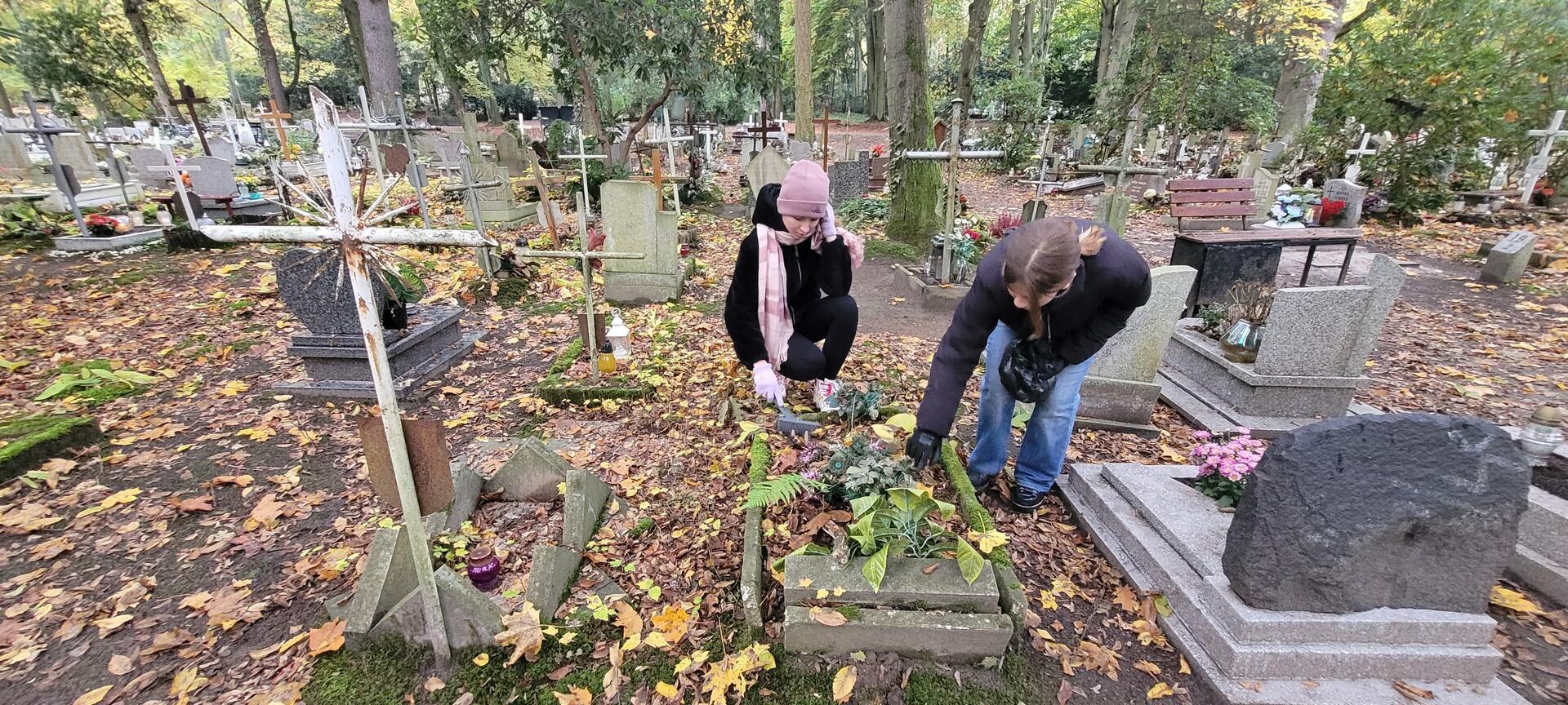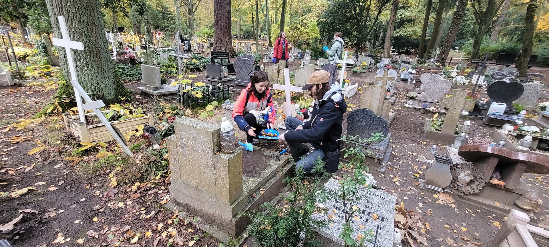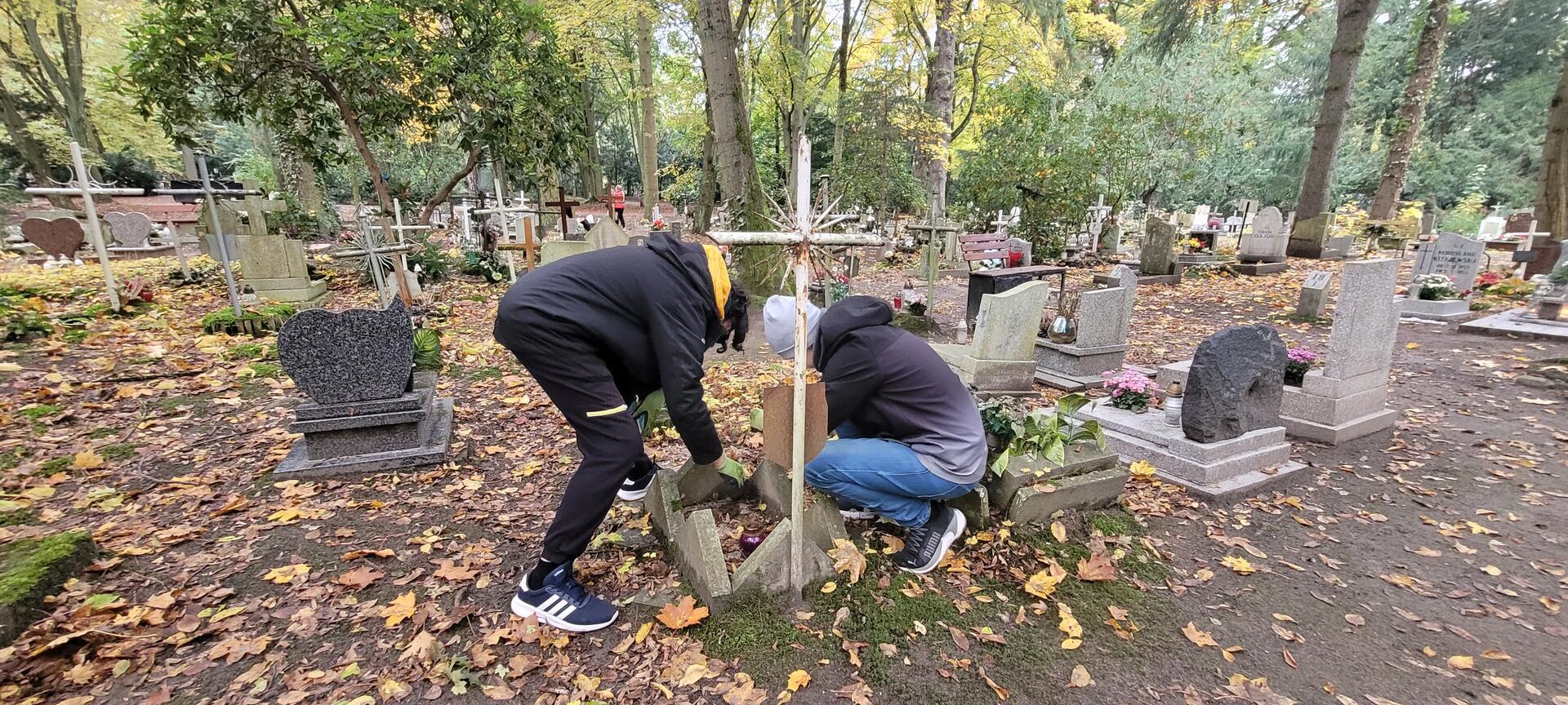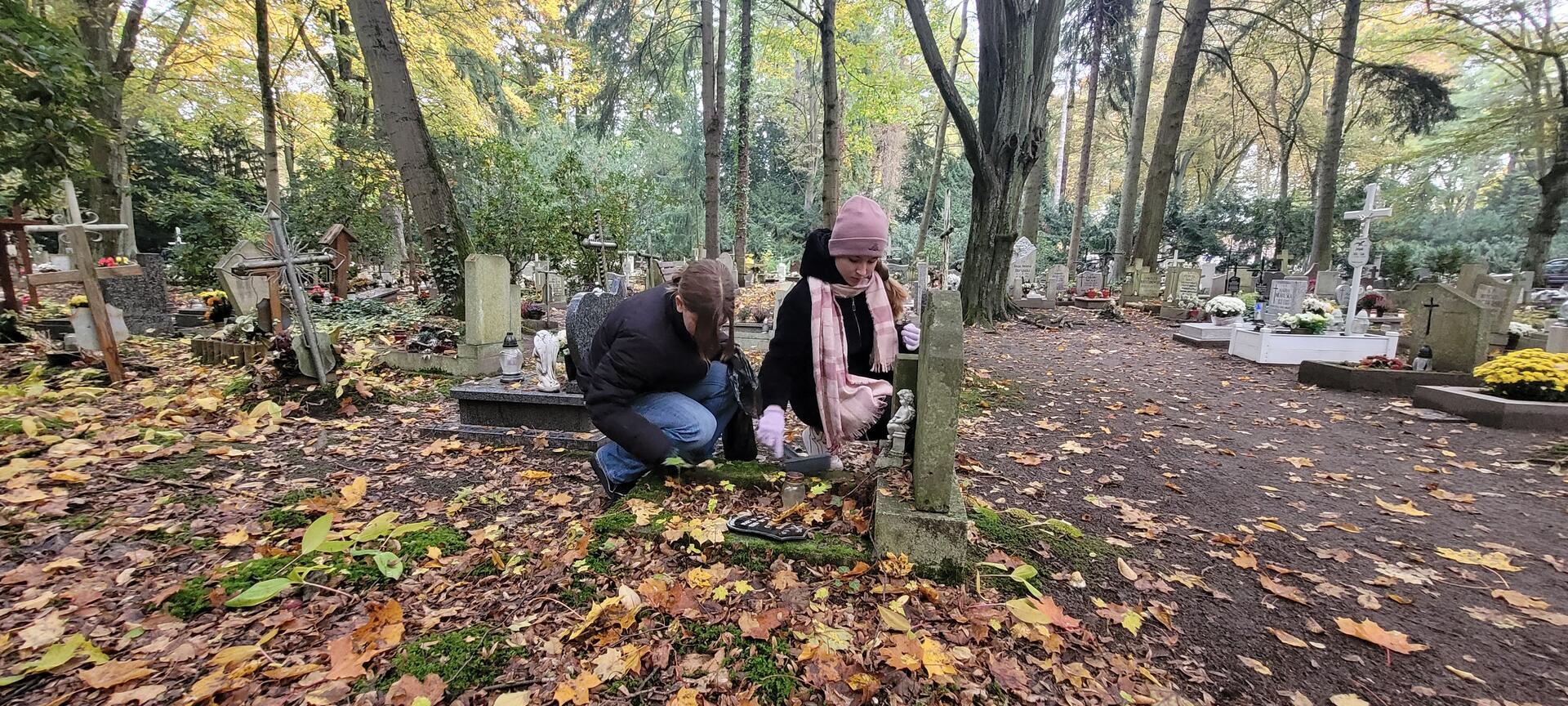 W sobotę, 28 października wolontariusze z naszego Szkolnego Koła Wolontariatu, jak co roku spotkali się na Cmentarzu Centralnym w Szczecinie, gdzie porządkowali groby w kwaterze dziecięcej. Swoją uwagę skupili przede wszystkim na tych najbardziej zaniedbanych, często najstarszych i już bezimiennych. Do pracy przystąpili zaopatrzeni w rękawiczki, worki, grabie i inny potrzebny sprzęt. Na uporządkowanych grobach zapalili znicze, zebrane wcześniej przez Samorząd Uczniowski. Te małe groby i pomniki, czasami tylko krzyże z metalu lub z drewna, tabliczki z datami urodzin i śmierci wzbudziły bardzo silne emocje. Śmierć jest częścią życia każdego człowieka, ale trudno z nią się pogodzić, zwłaszcza jeśli dotyczy dziecka.