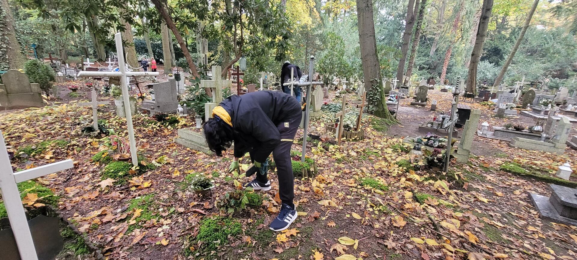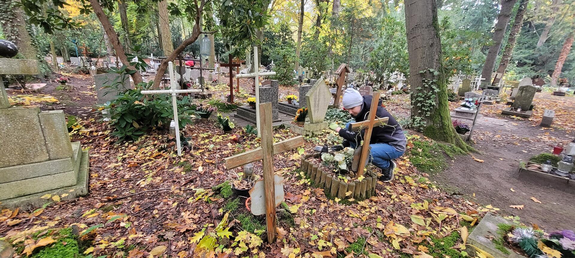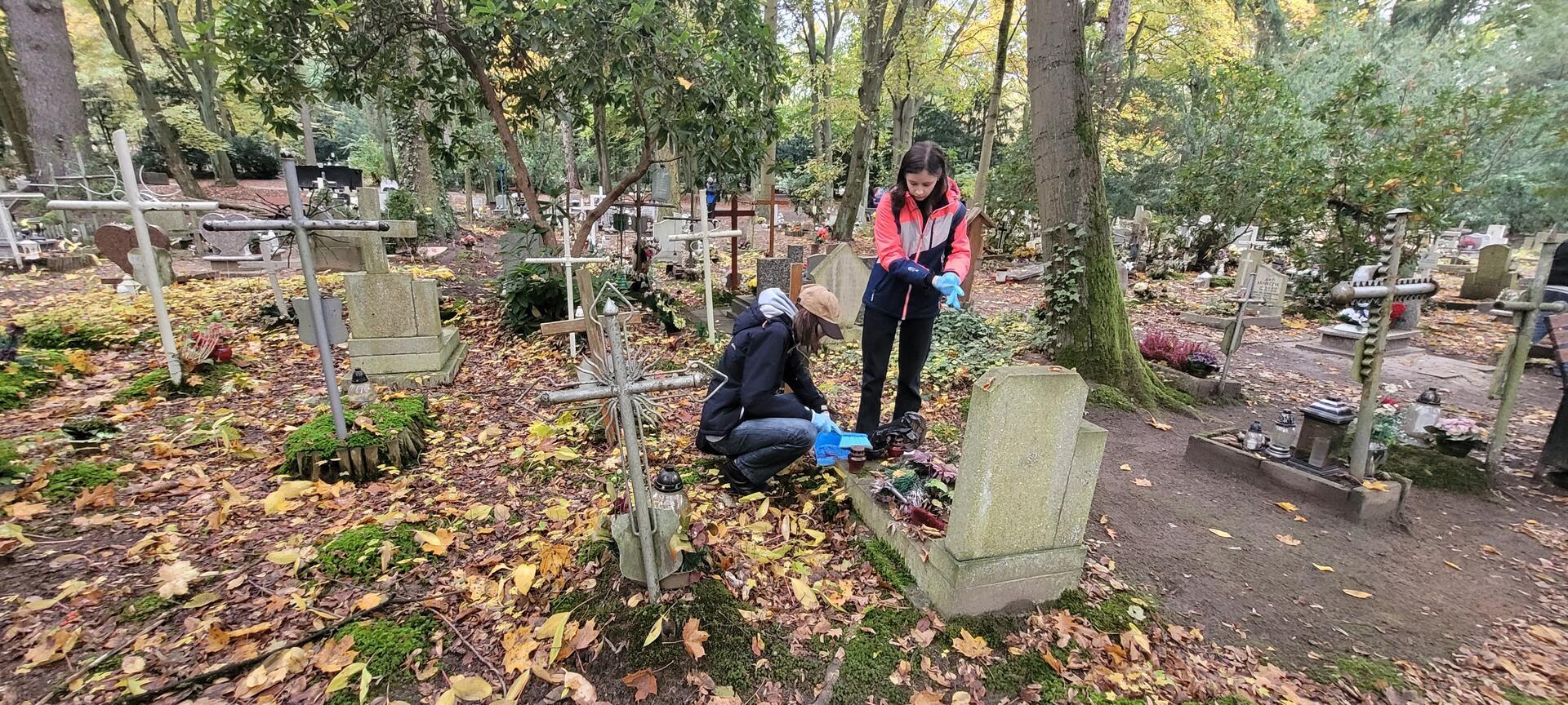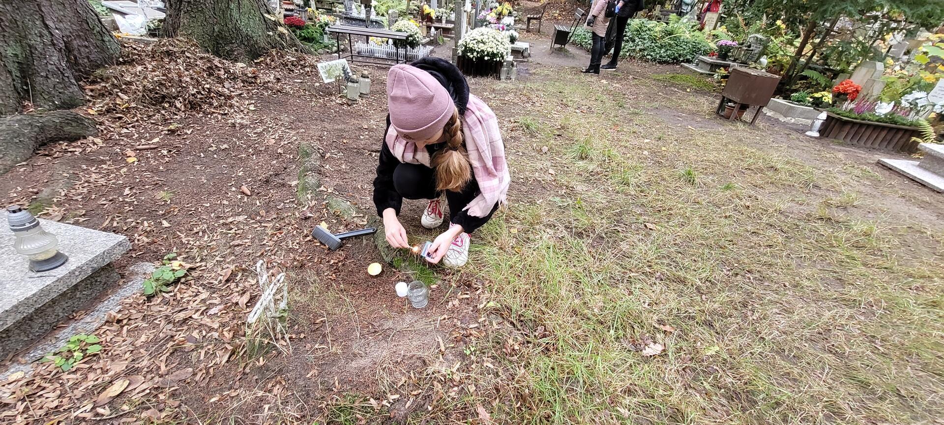 W sobotę, 28 października wolontariusze z naszego Szkolnego Koła Wolontariatu, jak co roku spotkali się na Cmentarzu Centralnym w Szczecinie, gdzie porządkowali groby w kwaterze dziecięcej. Swoją uwagę skupili przede wszystkim na tych najbardziej zaniedbanych, często najstarszych i już bezimiennych. Do pracy przystąpili zaopatrzeni w rękawiczki, worki, grabie i inny potrzebny sprzęt. Na uporządkowanych grobach zapalili znicze, zebrane wcześniej przez Samorząd Uczniowski. Te małe groby i pomniki, czasami tylko krzyże z metalu lub z drewna, tabliczki z datami urodzin i śmierci wzbudziły bardzo silne emocje. Śmierć jest częścią życia każdego człowieka, ale trudno z nią się pogodzić, zwłaszcza jeśli dotyczy dziecka.
