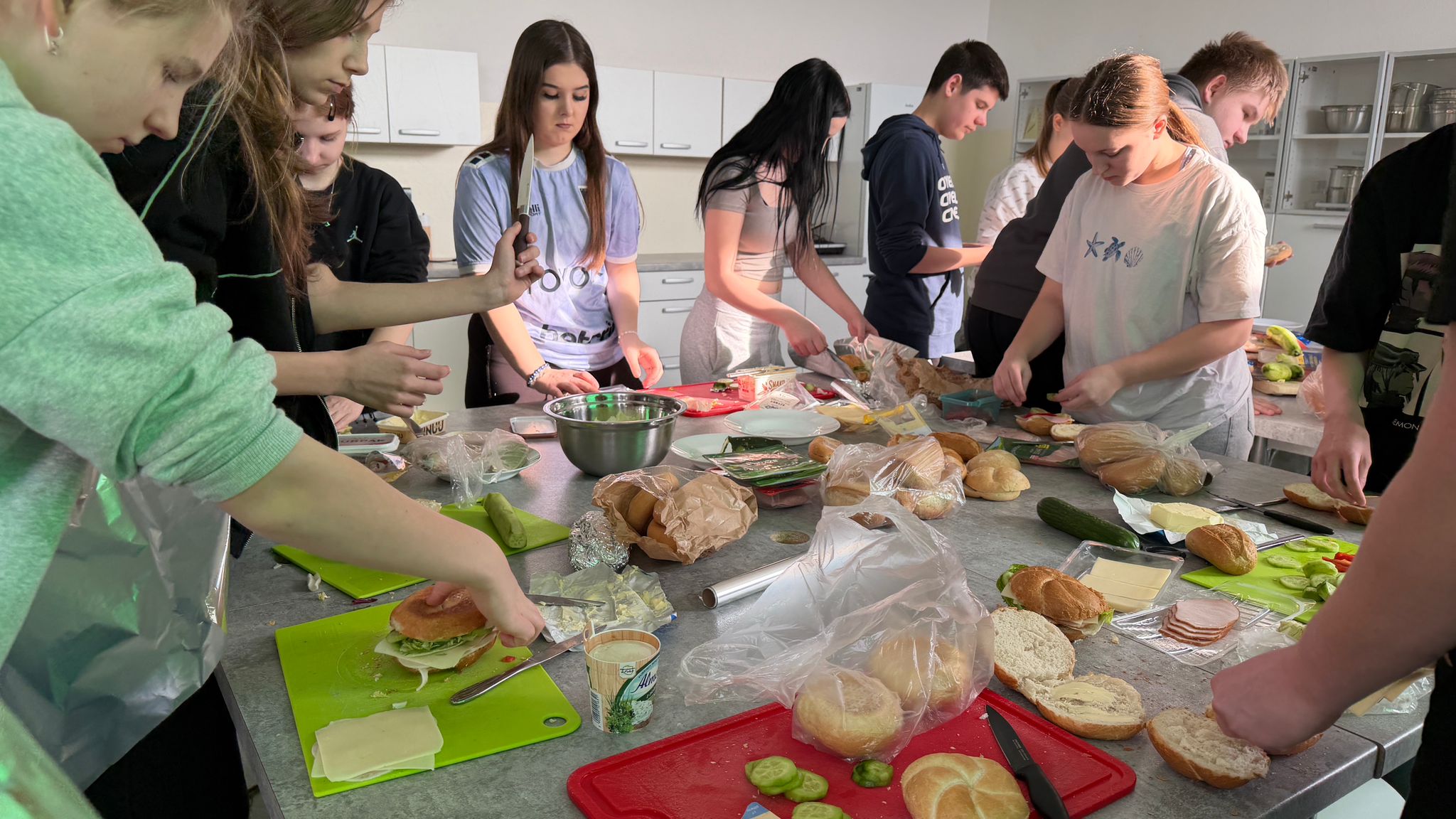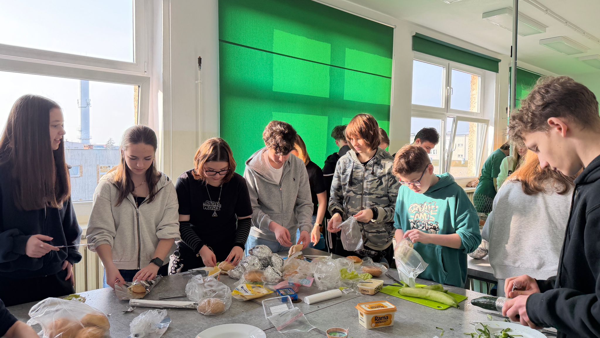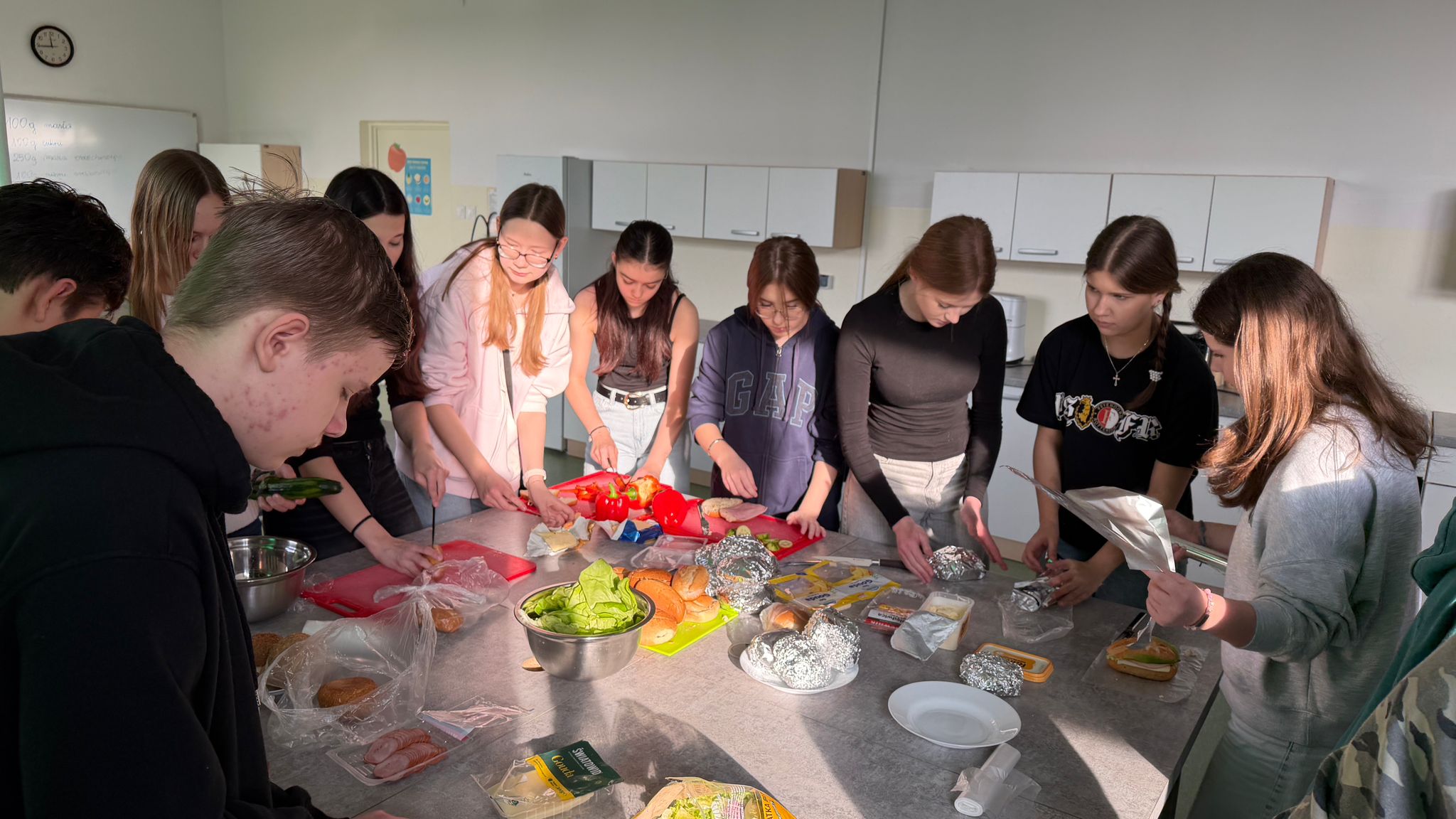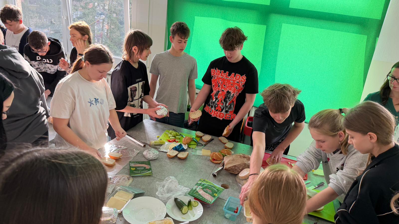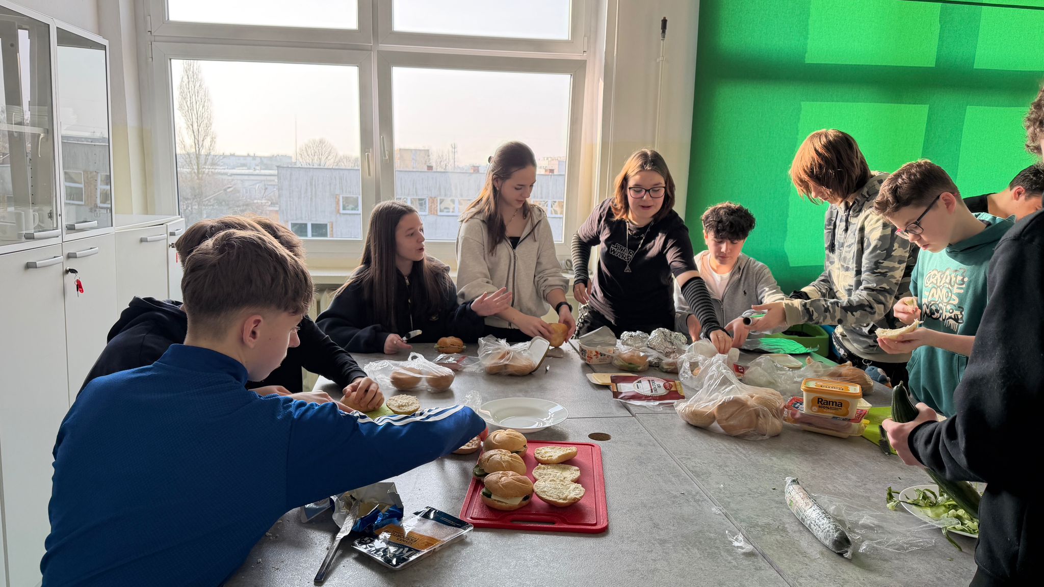 W ramach działalności Szkolnego Koła Wolontariatu oraz Samorządu Uczniowskiego uczniowie klas ósmych zorganizowali akcję przygotowywania kanapek oraz zbiórkę darów dla osób w potrzebie.