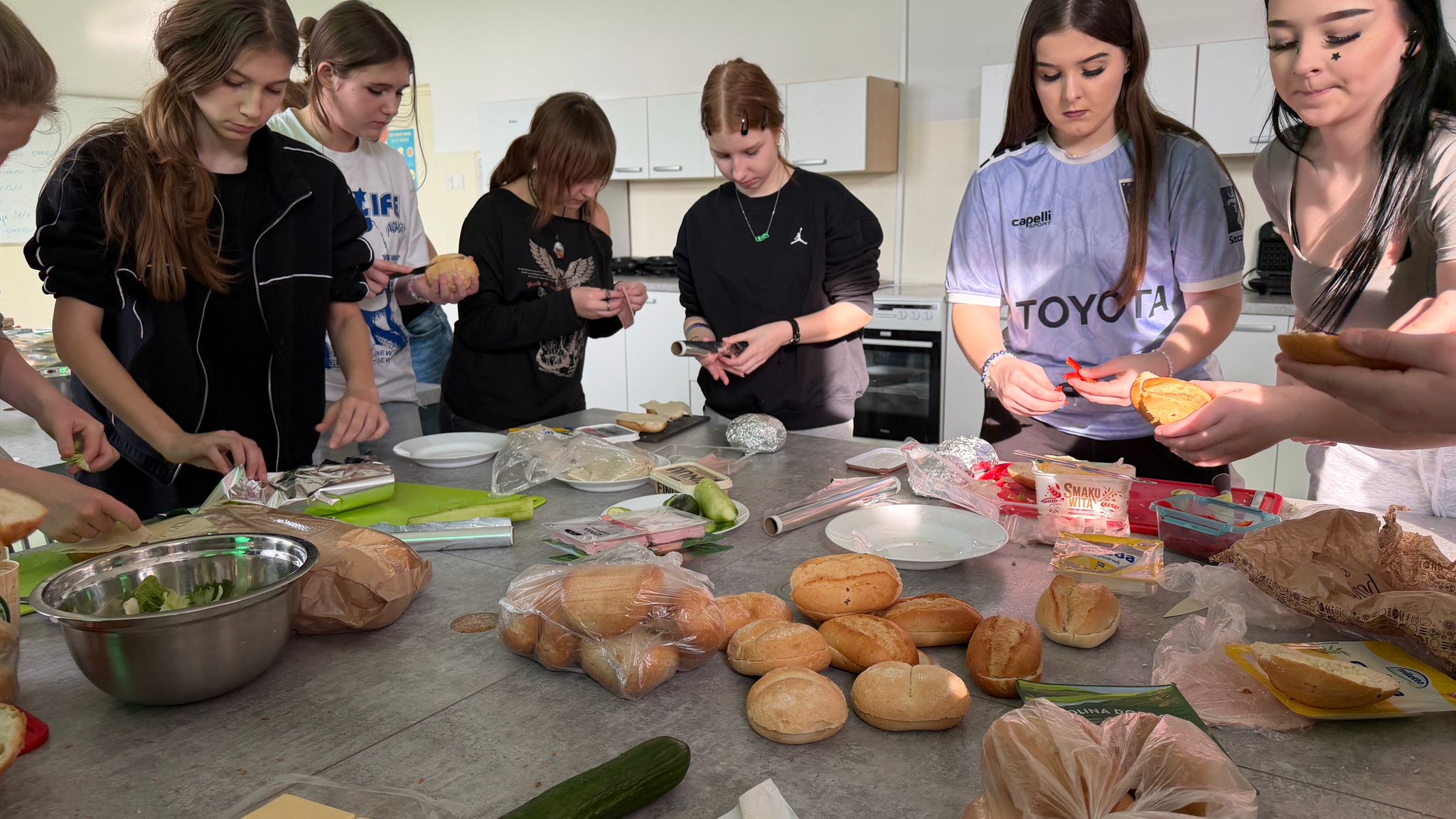 Podczas piątkowej akcji uczniowie własnoręcznie przygotowali 266 bułek, które wraz ze zebranymi darami zostały przekazane Panu Mariuszowi z INFO Szczecin. W organizację i realizację przedsięwzięcia włączył się również Klub Seniora działający przy Radzie Osiedla Zawadzkiego, okazując cenne wsparcie i pomoc.