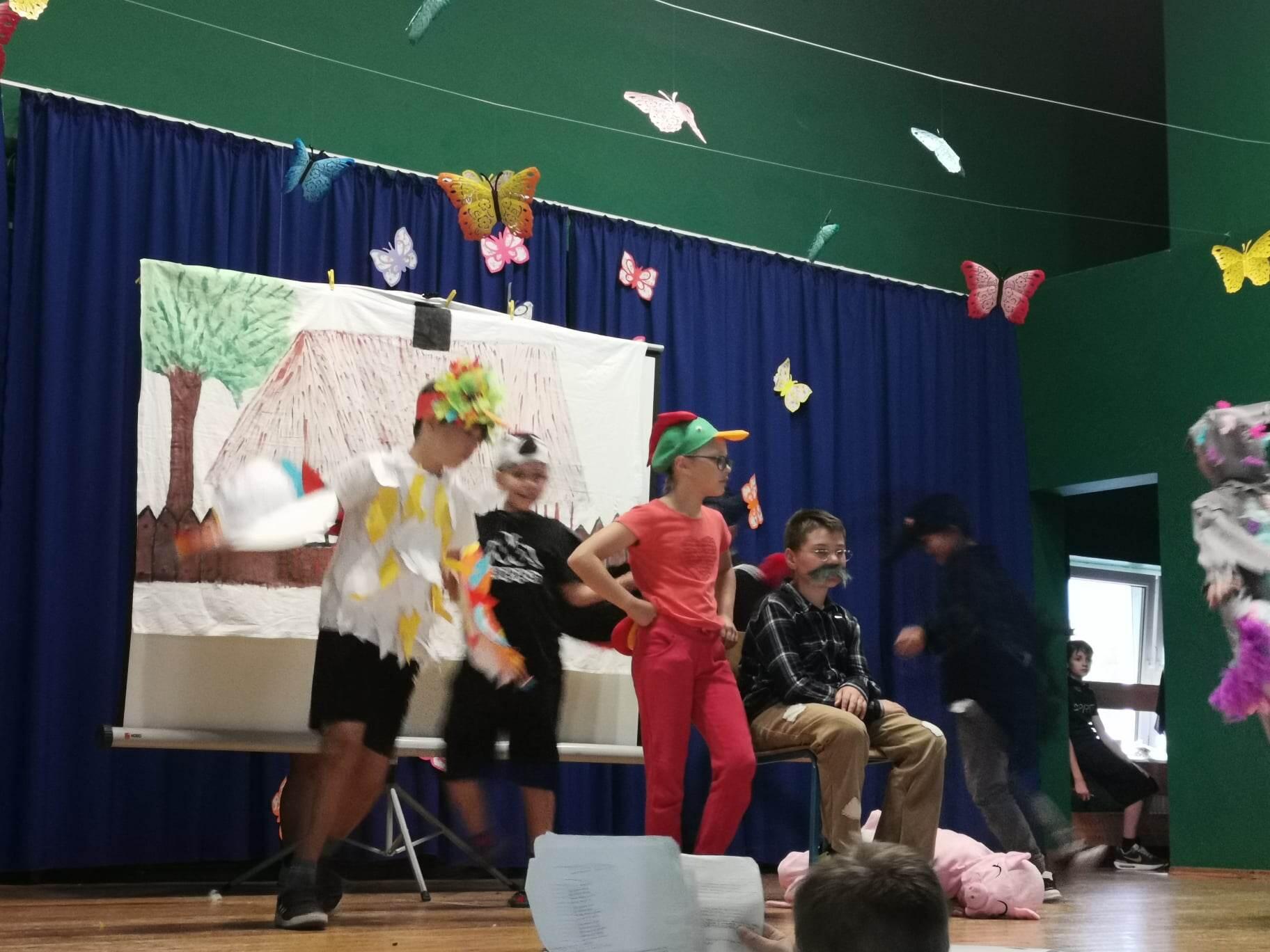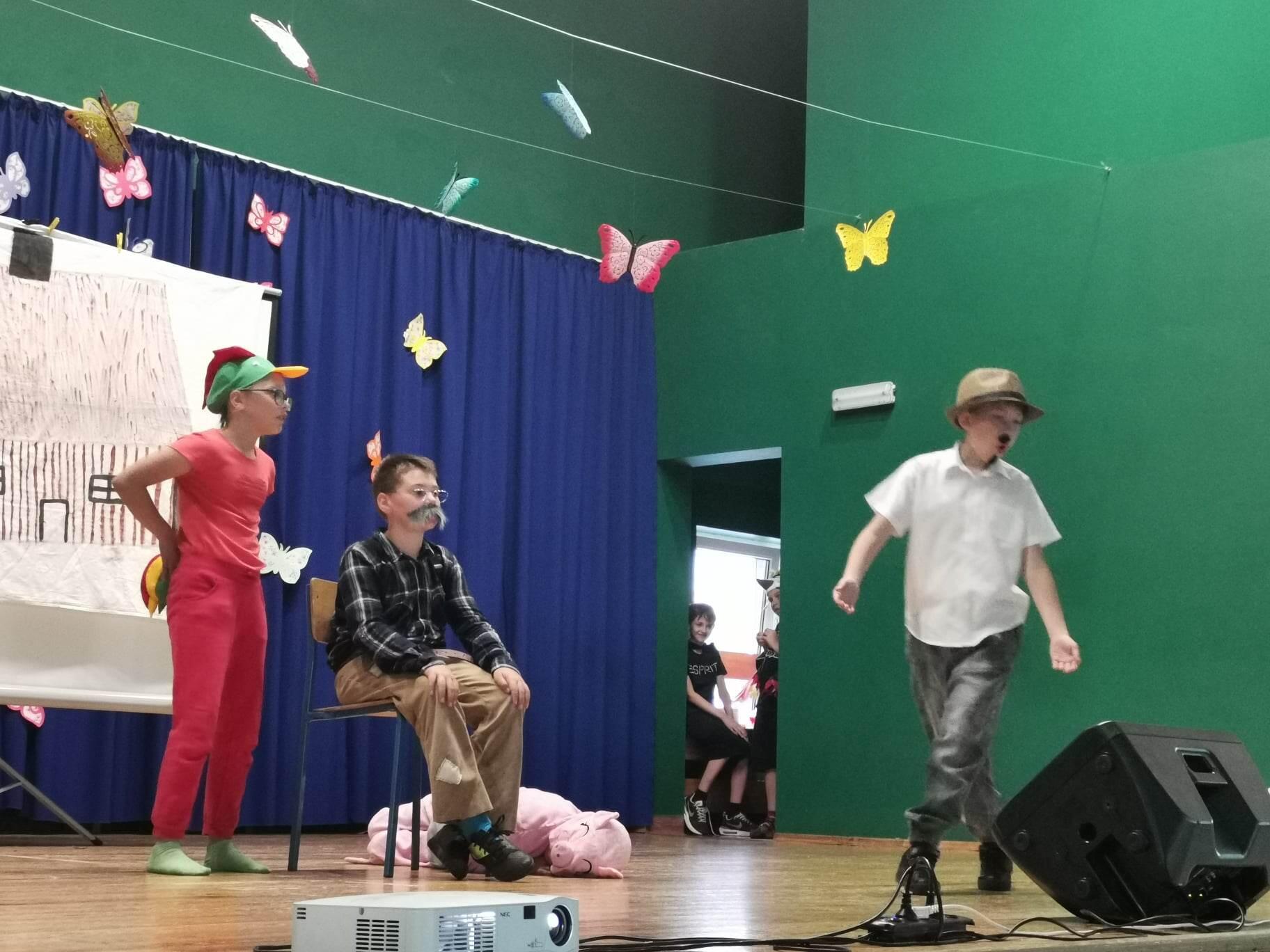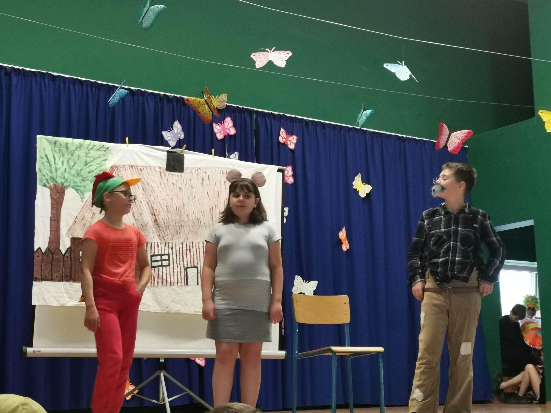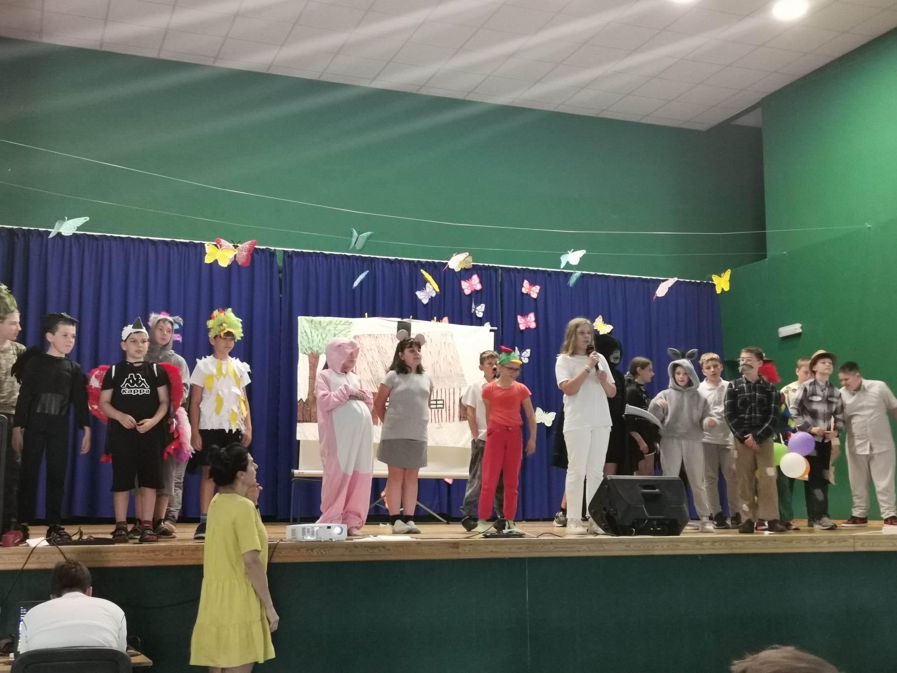 Spektakl klasy 4a okazał się nie lada wyzwaniem. Mogliśmy podziwiać niesamowitą grę aktorską,choreografię , śpiew,ale przede wszystkim usłyszeć kwestie obcojęzyczne,bowiem znalazły się tu wydźwięki w języku polskim, angielskim, niemieckim i ukraińskim. Nasi młodzi aktorzy zaprezentowali również wspaniałe stroje,które swoimi kolorami dopełniły całości.