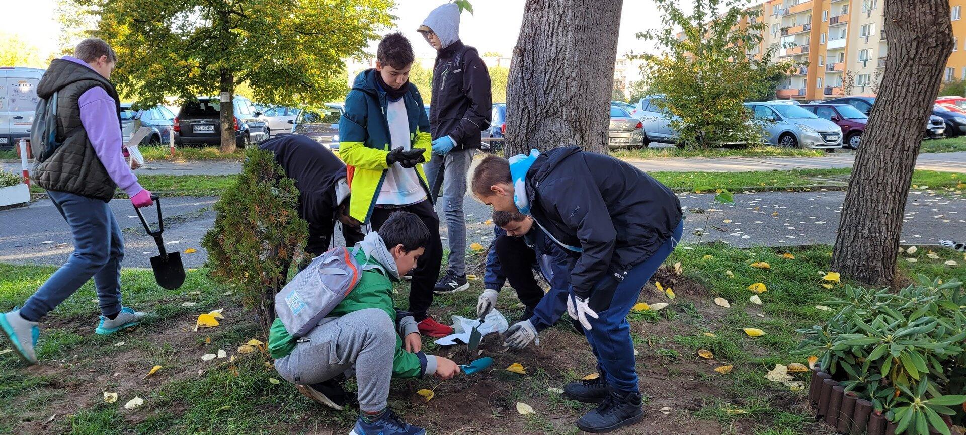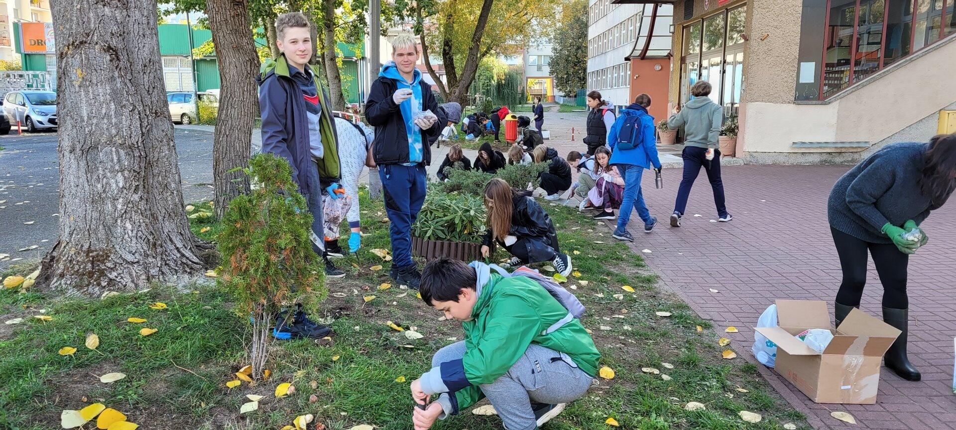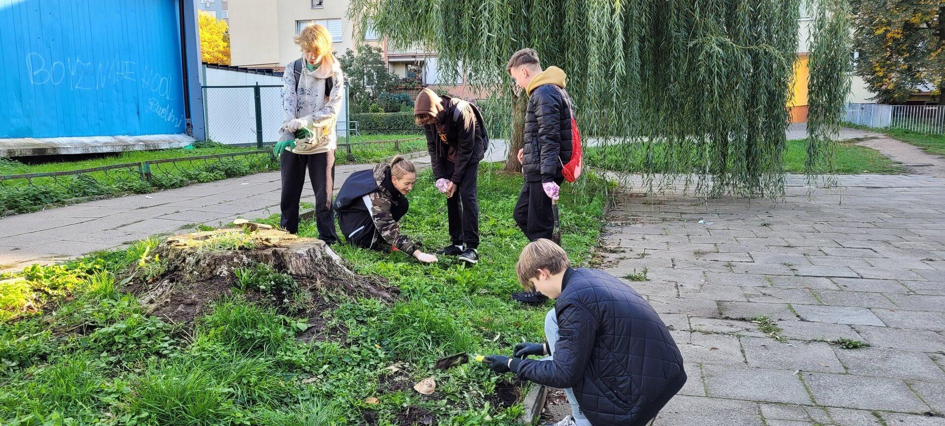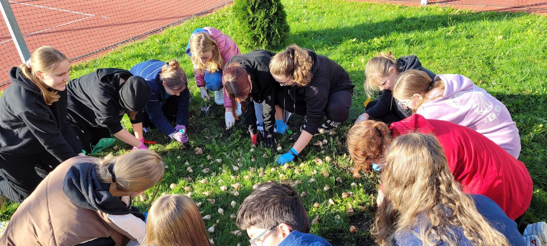 W sobotę 8 października wolontariusze ze Szkolnego Koła Wolontariatu posadzili na skwerach wokół naszej szkoły cebulki tulipanów, krokusów, szafirków i hiacyntów, aby wiosną było radośnie i kolorowo. Pamiętając o podopiecznych z Hospicjum Św. Jana Ewangelisty w Szczecinie, posadziliśmy cebulki żonkili , tworząc małe „Pole Nadziei”. Żonkil jest symbolem nadziei w walce z chorobą nowotworową. Kiedy wiosną zakwitną – są rozdawane w kwestach, a pozyskane w ten sposób fundusze pozwalają na częściowe zaspokojenie potrzeb podopiecznych hospicjum. Nasi wolontariusze co roku kwestują na rzecz hospicjum.