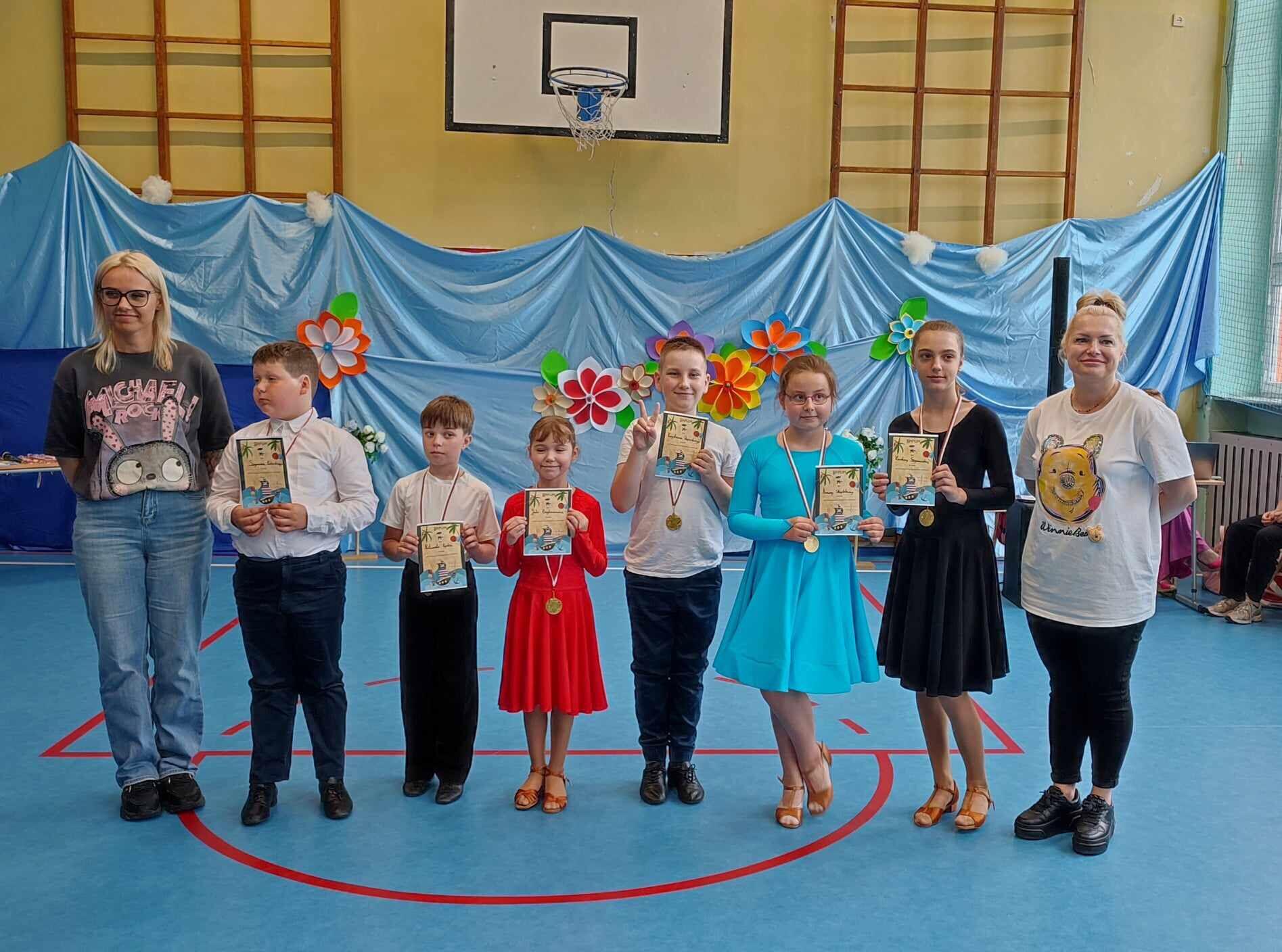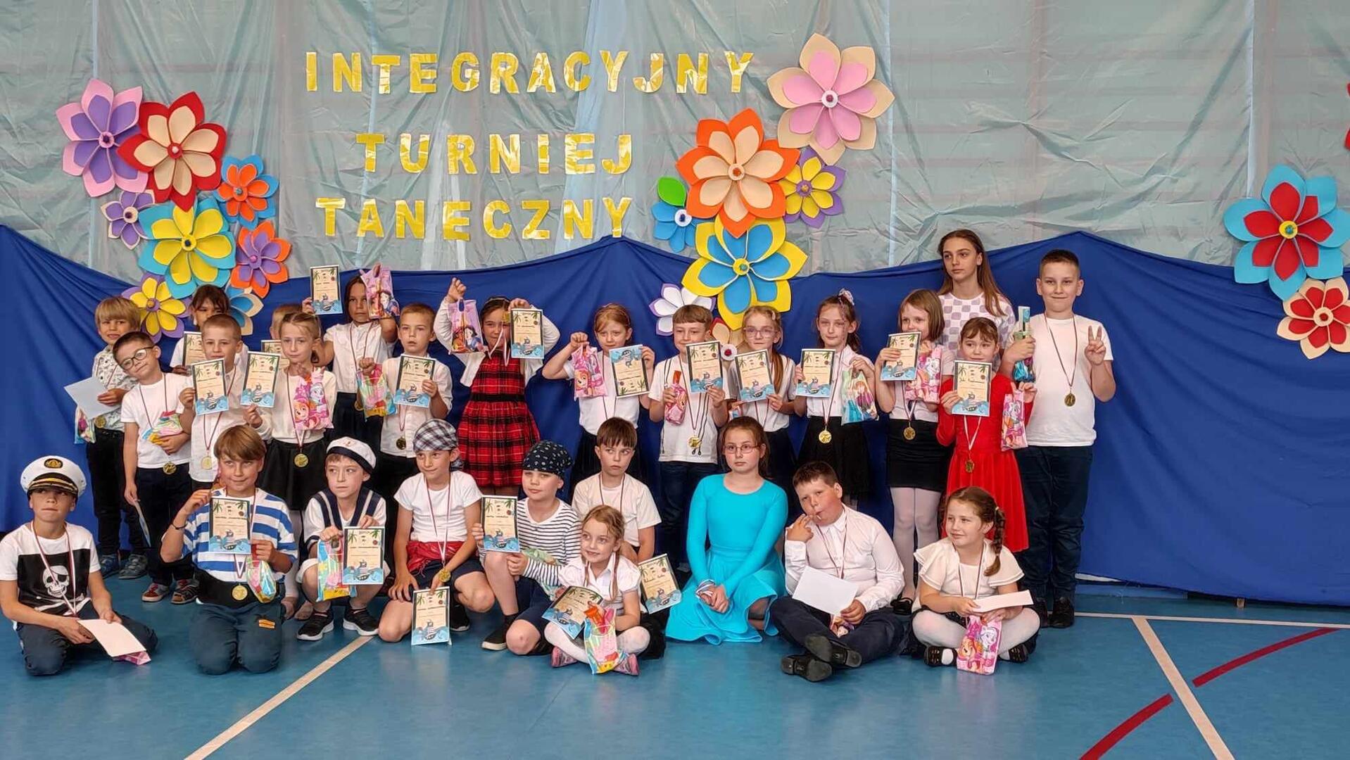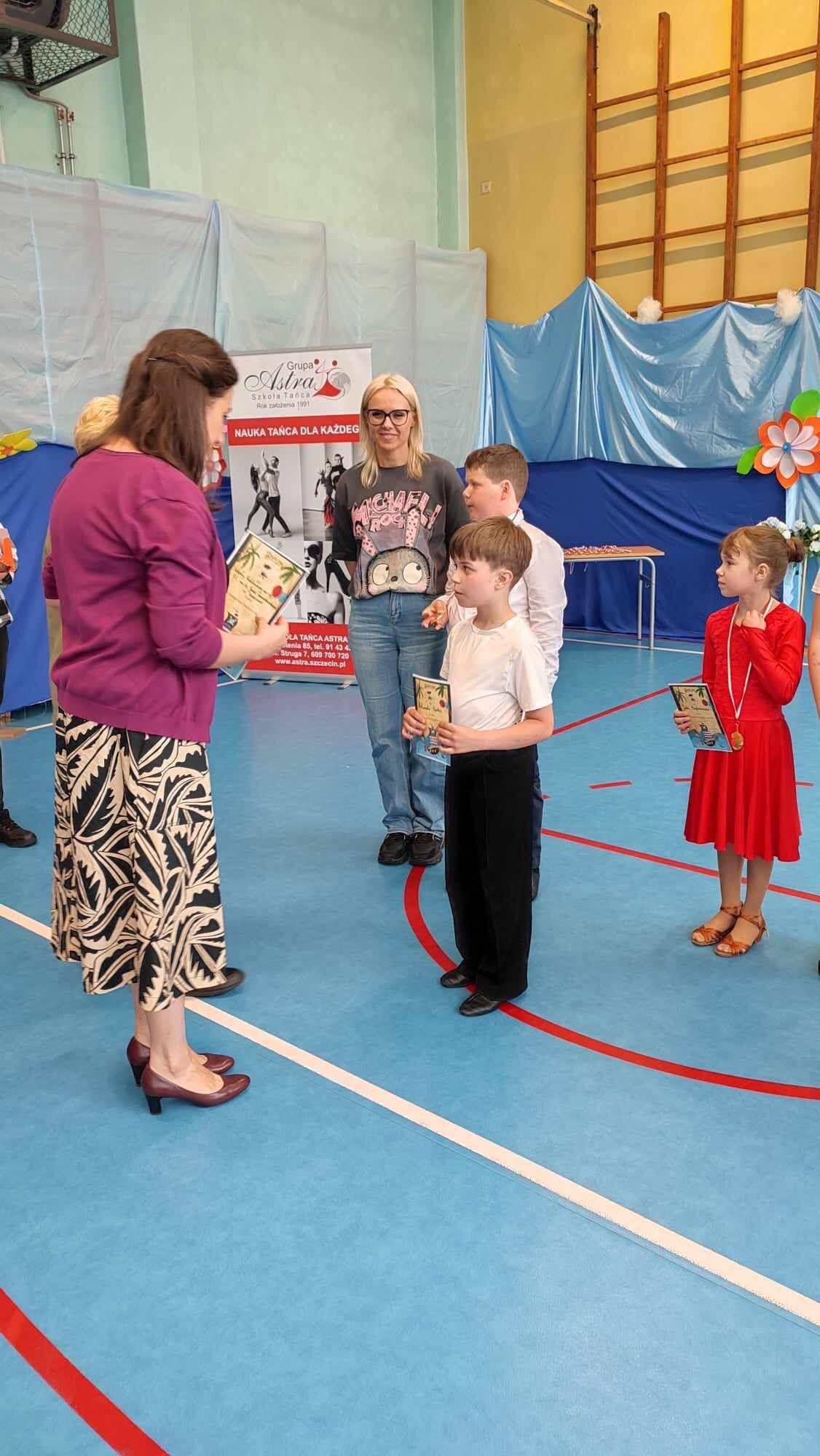 W dniu 23.05.2024r. uczniowie naszej szkoły Julia Bogdanowicz 1c, Nataniel Pyrek 2a, Krystian Dejewski 3a, Karolina Szymańska 3c, Arina Shyshkina 3b oraz Szymon Zalewski 3b brali udział w XI Integracyjnym Turnieju Tanecznym organizowanym prze SP 63. Nasi reprezentanci zatańczyli ,,cha cha'' i ,,jive'' przygotowani przez Pana Łukasza Olczaka z Akademii Tańca Grycmacher. Prócz turnieju na dzieci czekały zabawy i animacje prowadzone przez instruktorkę ze Szkoły Tańca Astra. Na zakończenie wszyscy uczestnicy otrzymali medale, dyplomy oraz słodkie upominki.