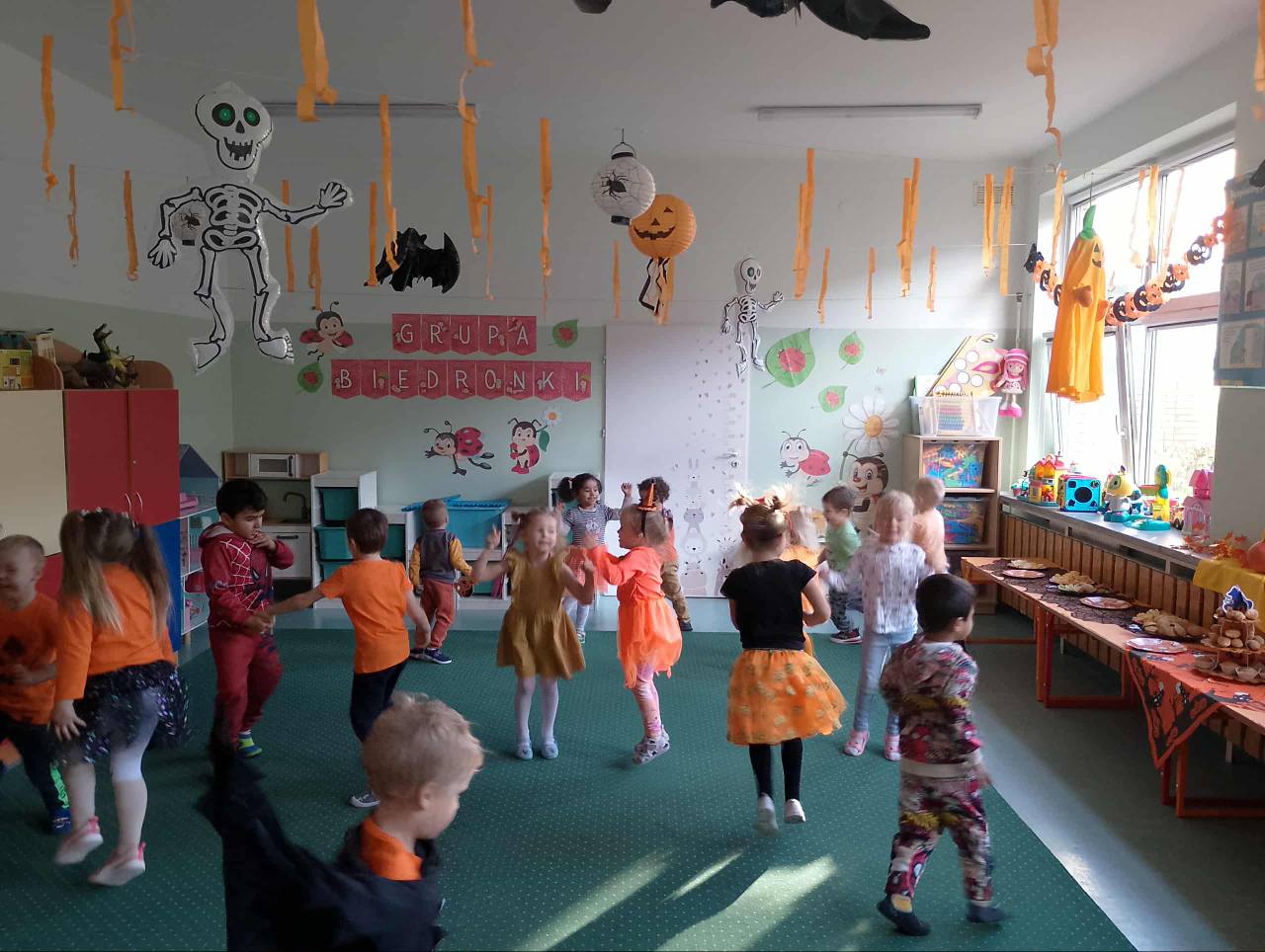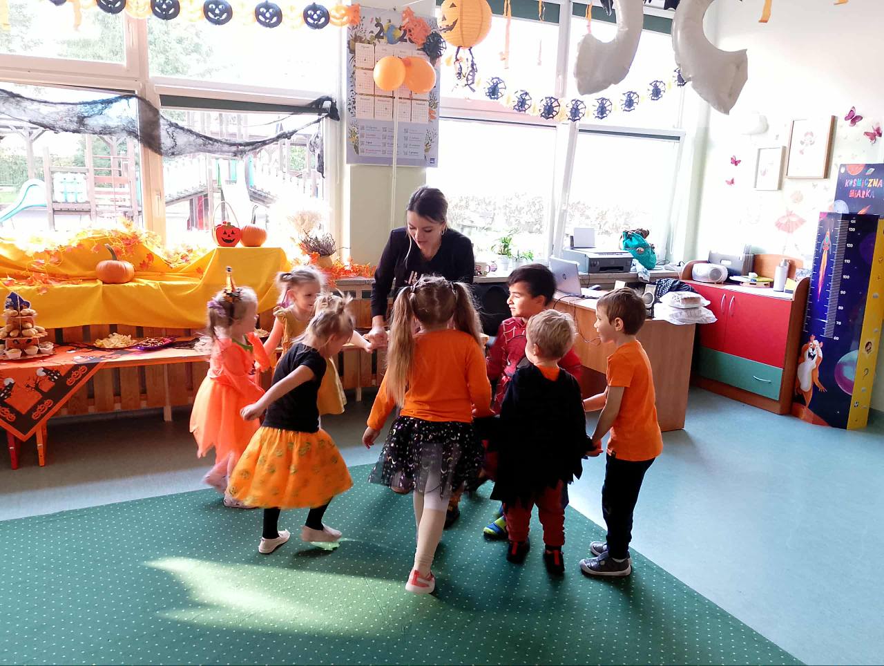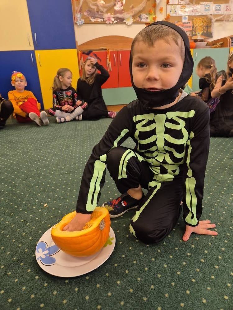 30 i 31 października obchodziliśmy w naszym przedszkolu Dzień Dyni. Było bardzo dużo zabawy z dynią w roli głównej. Tego dnia dzieci poznały wielką różnorodność dyń oraz wzbogaciły wiedzę na ich temat. Dowiedziały się, że dynia jest bardzo zdrowym warzywem i, że można z niej przygotować wiele dań. Dzieci osobiście drążyły pomarańczowe warzywo. Były tańce, gry i zabawy a na koniec pyszny poczęstunek. Przedszkolakom udało się również upiec ciastka w naszej pracowni kulinarnej. Ach co to były za wspaniałe chwilę!