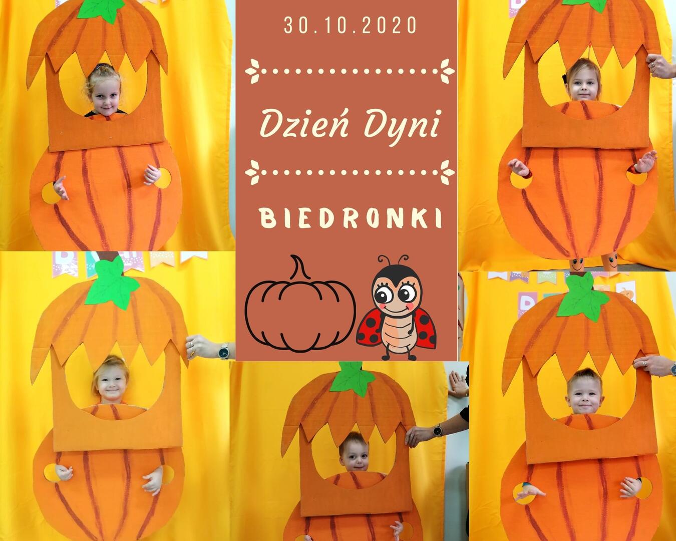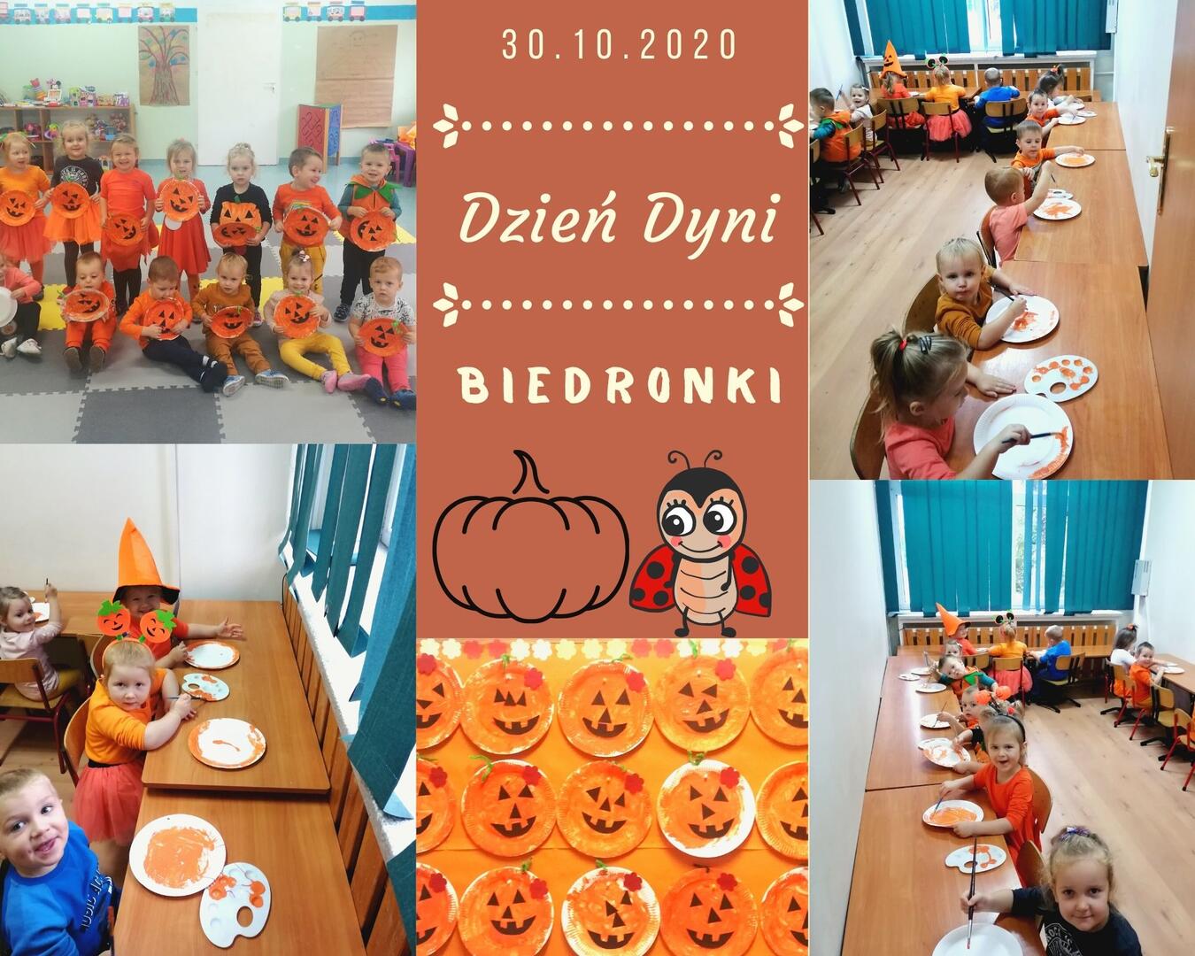30 października w grupie Biedronki odbyły się obchody "Dnia Dyni". Dzieci tego dnia przyszły ubrane w kolorach dyni. Biedronki poznały odmiany dyni. Przeliczały dynie w zakresie 3 i 4. Porównywały wielkość, układały dyniowe rytmy. Zagrały również w dyniowe kręgle, wykonały pracę plastyczną. Chętne dzieci poznały wnętrze dyni poprzez dotyk, próbując wyłowić pestki. Biedronki wykonały pamiątkowe zdjęcie w fotobudce i uczestniczyły w poczęstunku. Zabawy tego dnia było wiele.