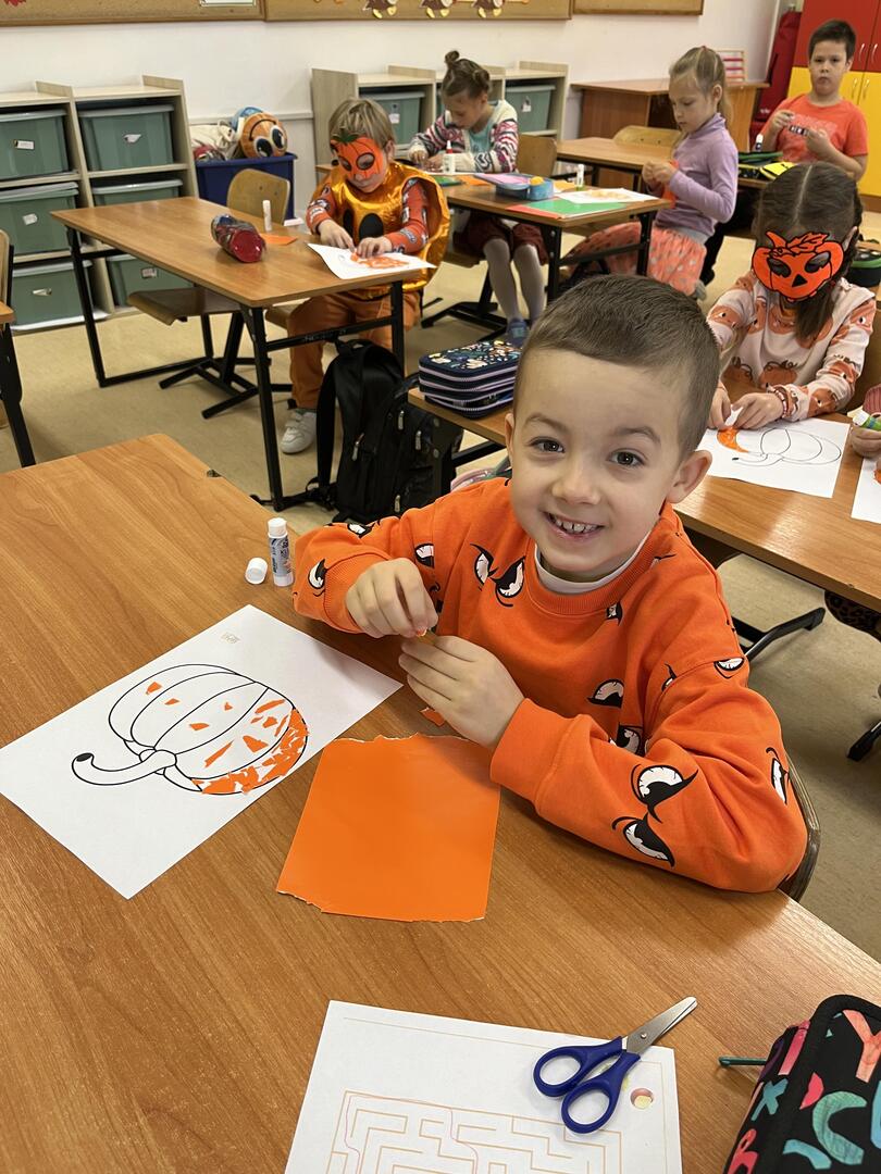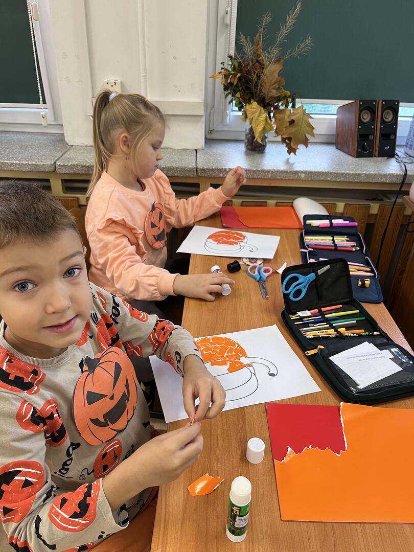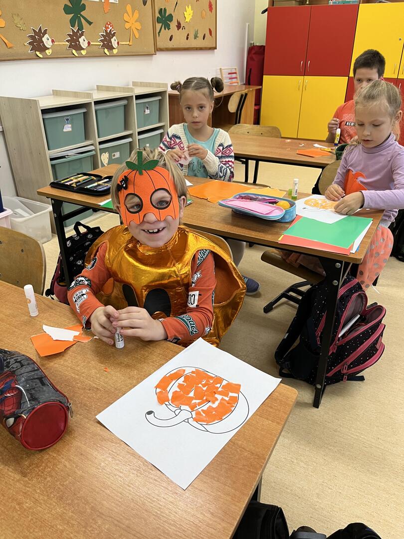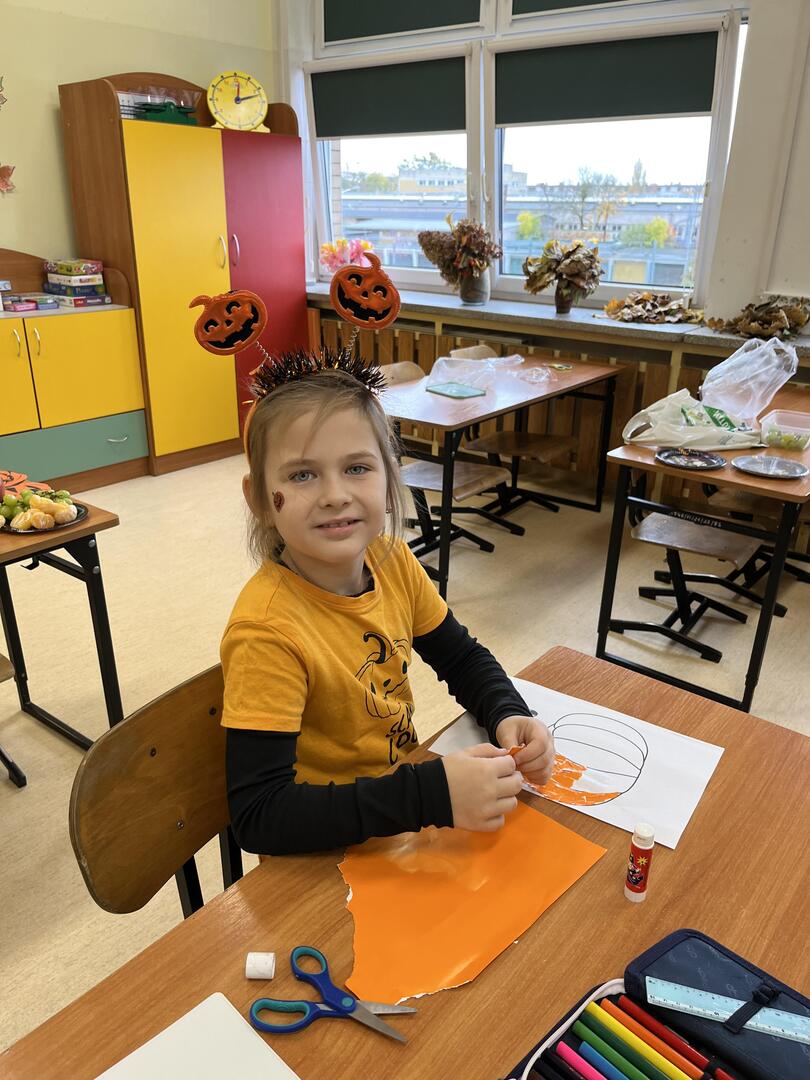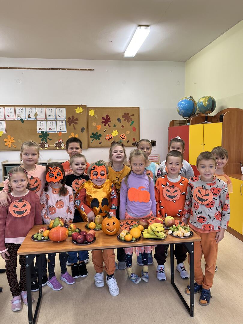 W czwartek świeżo upieczeni pierwszoklasiści klasy 1b po raz pierwszy obchodzili Dzień Dyni. W tym dniu obowiązywał pomarańczowy kolor w ubiorze i uśmiech na twarzy. Świąteczna atmosfera zapanowała już od pierwszych chwil. Uczniowie mieli okazję poznać walory smakowe dyni oraz innych owoców powszechnie dostępnych. Była to świetna okazja, by zaszczepić wśród dzieci zdrowe nawyki żywieniowe. Cały dzień minął na śpiewaniu piosenek, rozwiązywaniu zagadek o tematyce jesiennej, udzieleniu pomocy wiewiórce w szukaniu drogi w labiryncie oraz rozwiązywaniu krzyżówek. Uwieńczeniem spotkania było wykonanie prac plastycznych doskonalących małą motorykę, z których wykonano wystawę upiększającą salę.
