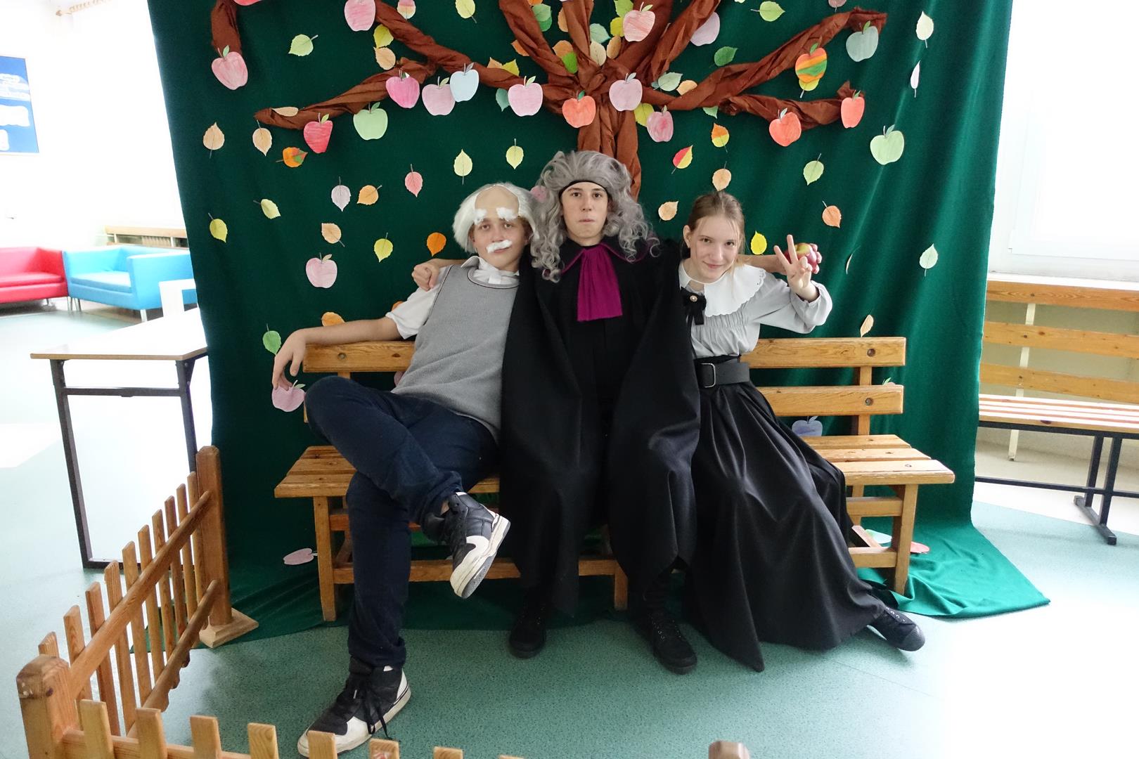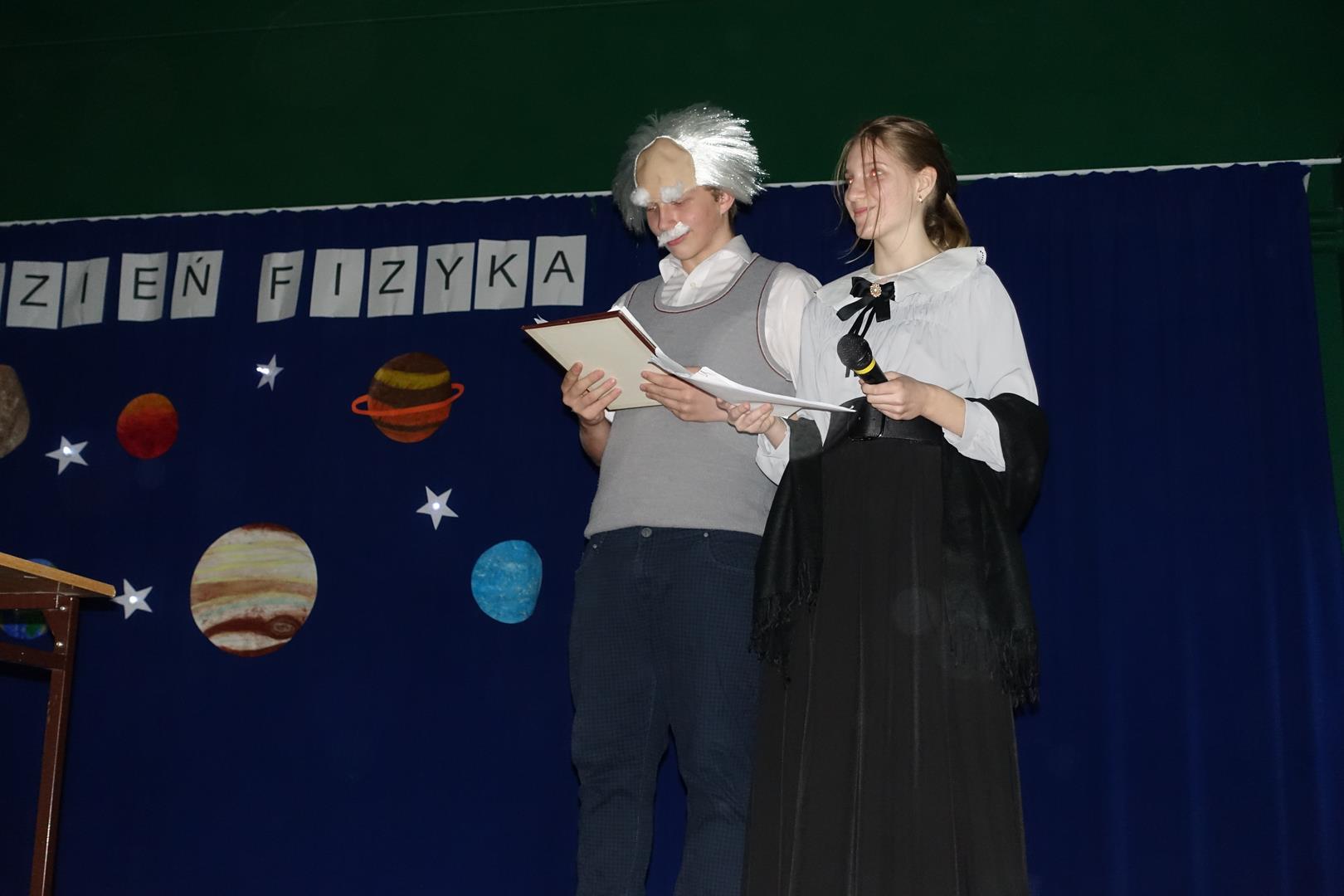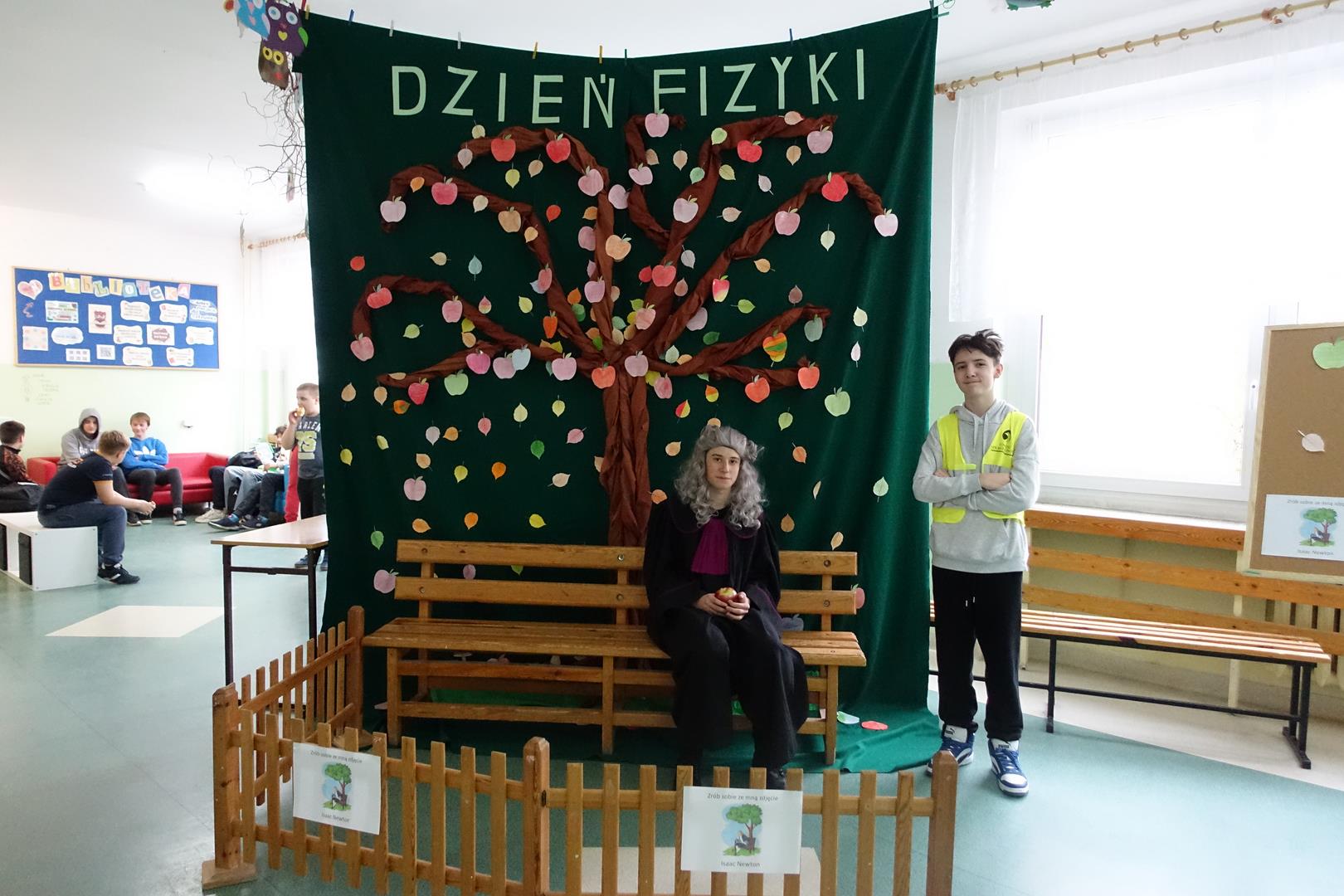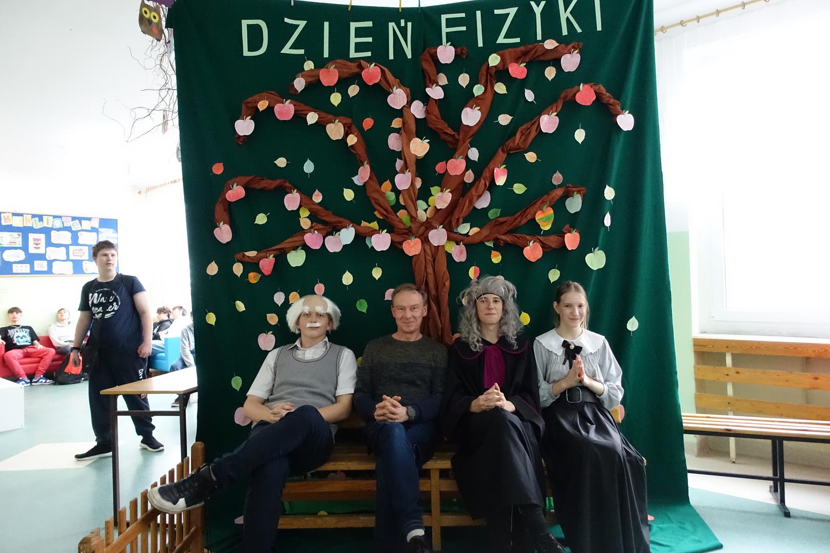 14 listopada odbył się "Dzień Fizyka". Tego dnia odwiedzili nas: Albert Einstein, Maria Skłodowska-Curie i Isaac Newton. Uczniowie mogli zrobić sobie zdjęcie pod drzewem z Newtonem i innymi gośćmi. Obejrzeć pokaz doświadczeń przygotowany przez uczniów z koła naukowego. Był to dzień pełen wrażeń i emocji. Zapraszamy do galerii.