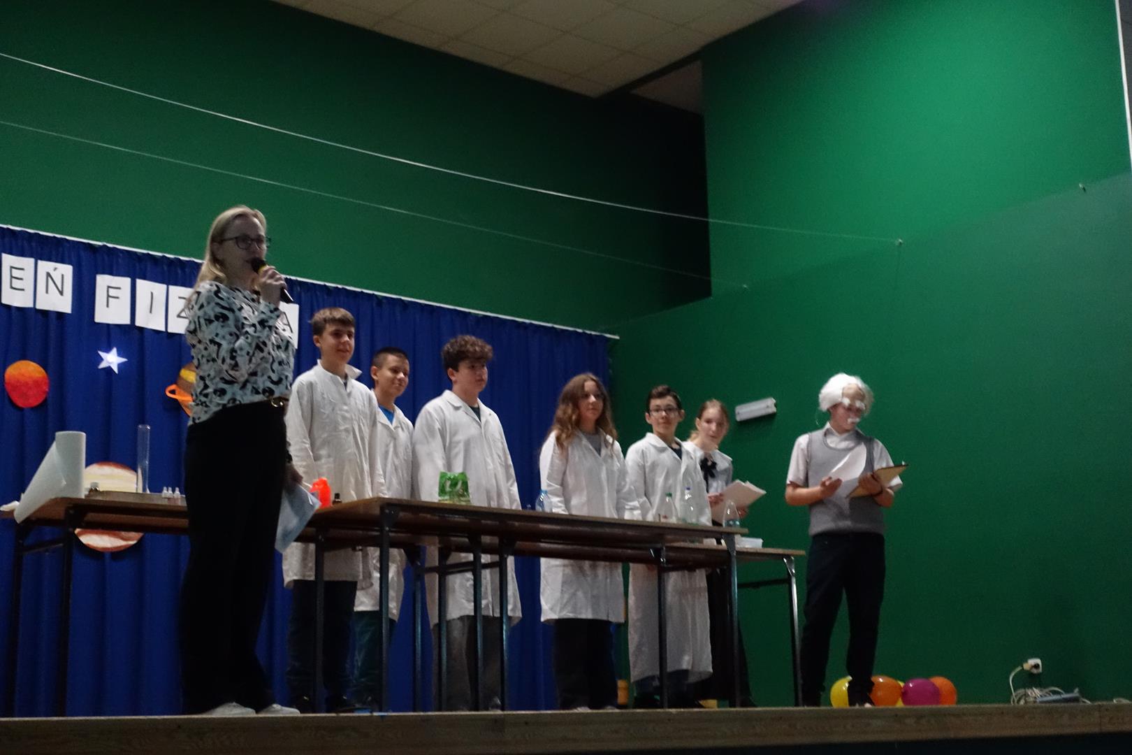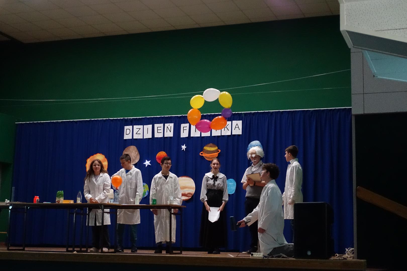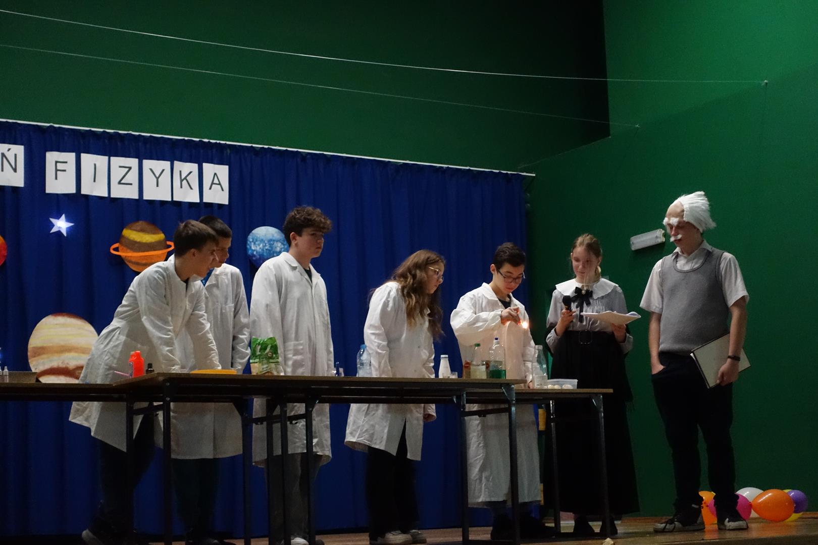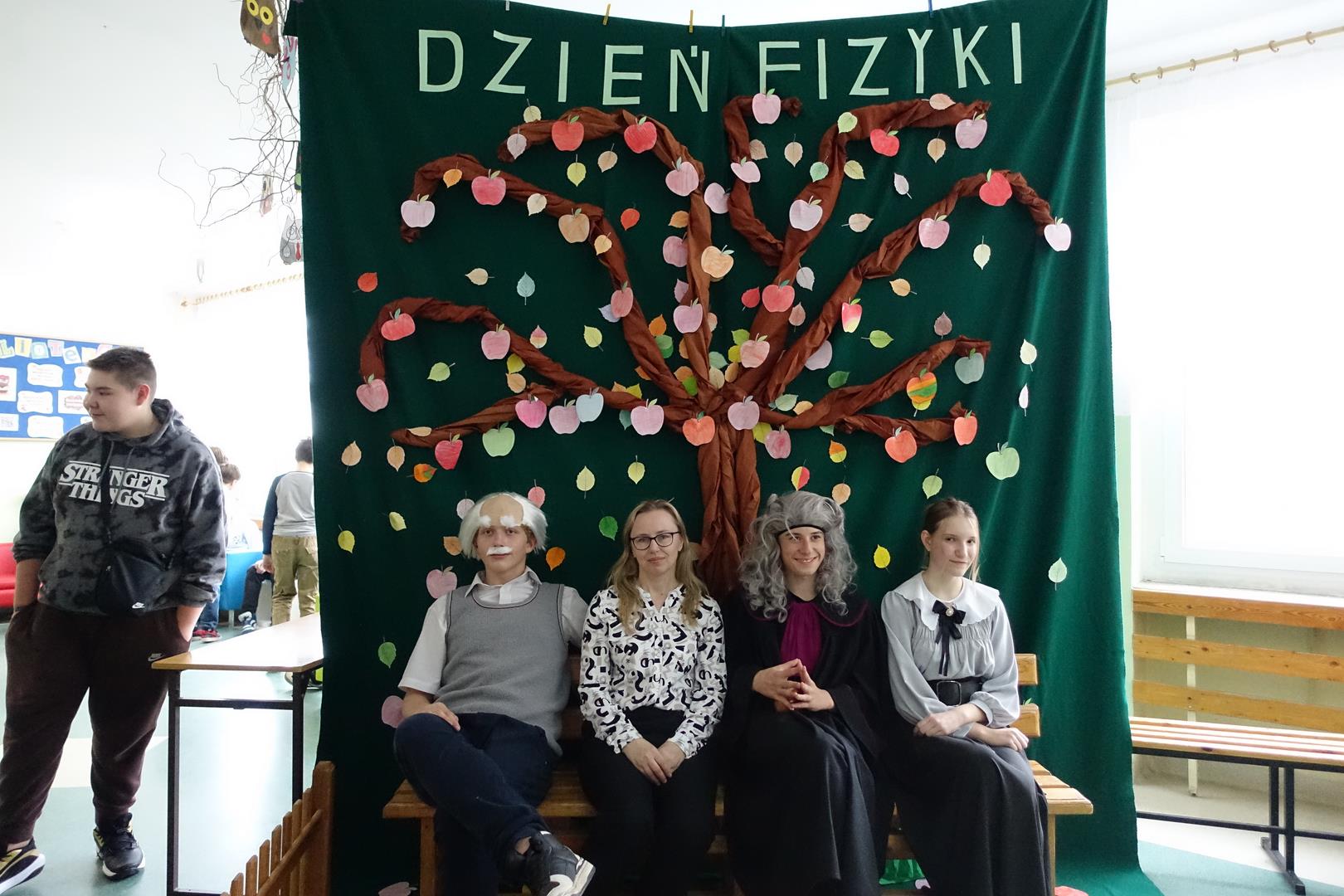 14 listopada odbył się "Dzień Fizyka". Tego dnia odwiedzili nas: Albert Einstein, Maria Skłodowska-Curie i Isaac Newton. Uczniowie mogli zrobić sobie zdjęcie pod drzewem z Newtonem i innymi gośćmi. Obejrzeć pokaz doświadczeń przygotowany przez uczniów z koła naukowego. Był to dzień pełen wrażeń i emocji. Zapraszamy do galerii.