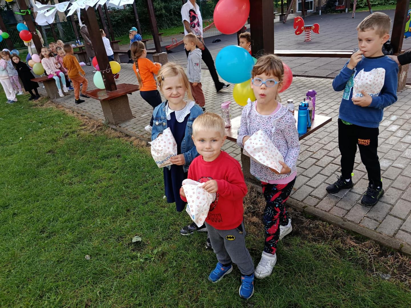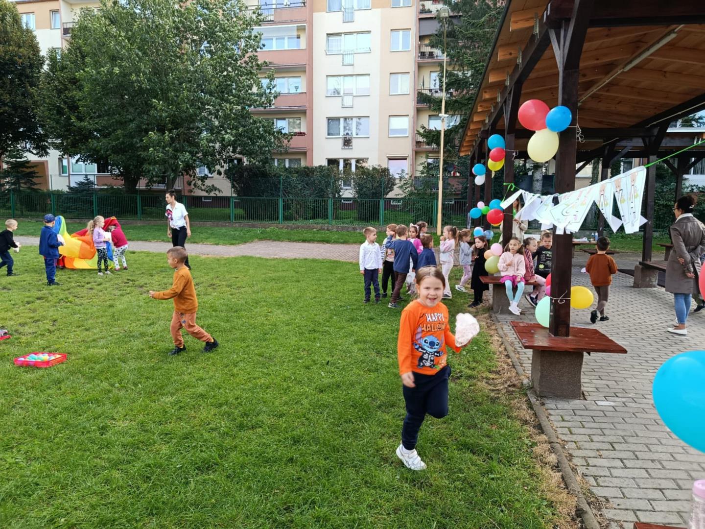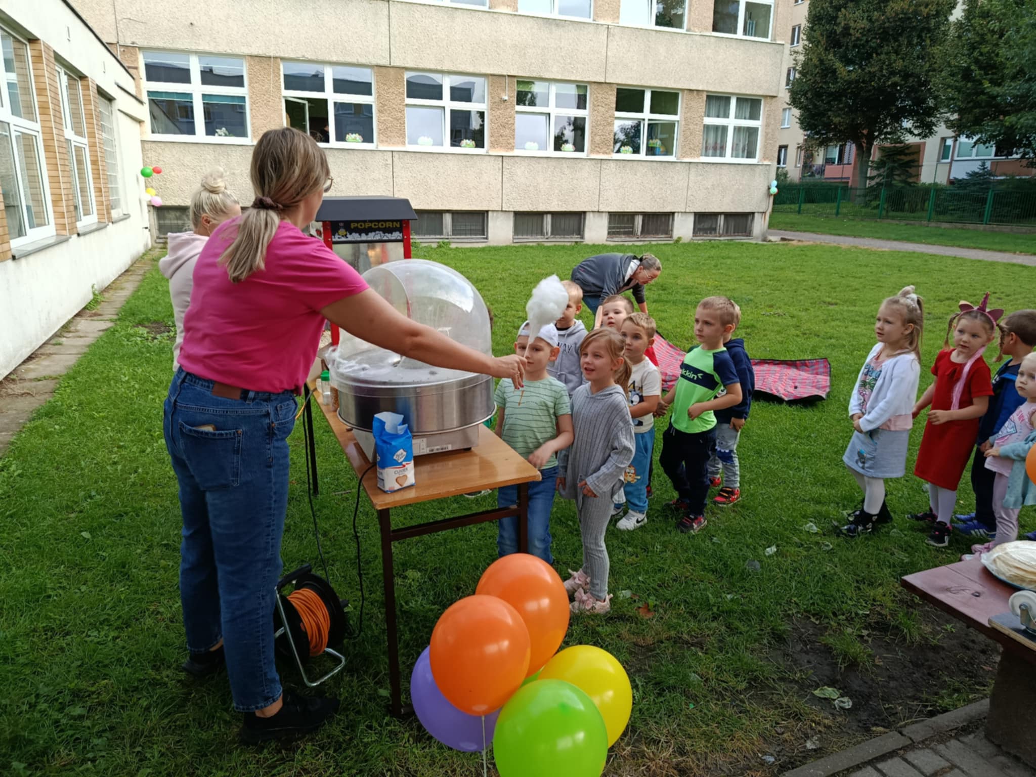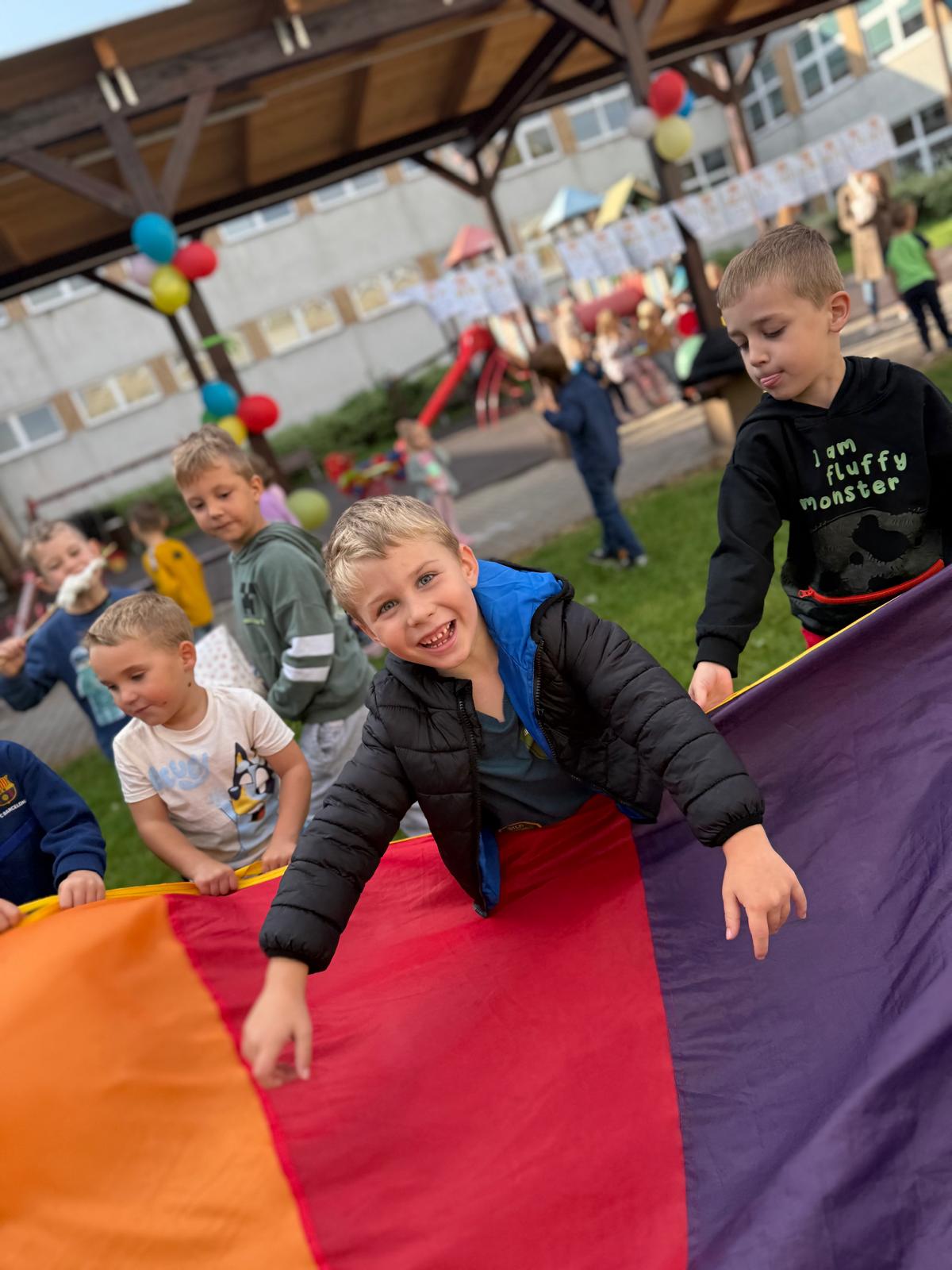 19.09.2025 obchodziliśmy najważniejsze święto, czyli DZIEŃ PRZEDSZKOLAKA. Były zabawy z chustą animacyjną, balonami, dużo muzyki i tańca. Rodzice przygotowali pyszne naleśniki i babeczki a Panie zadbały o popcorn i watę cukrową. To był dzień pełen zabawy i pyszności.