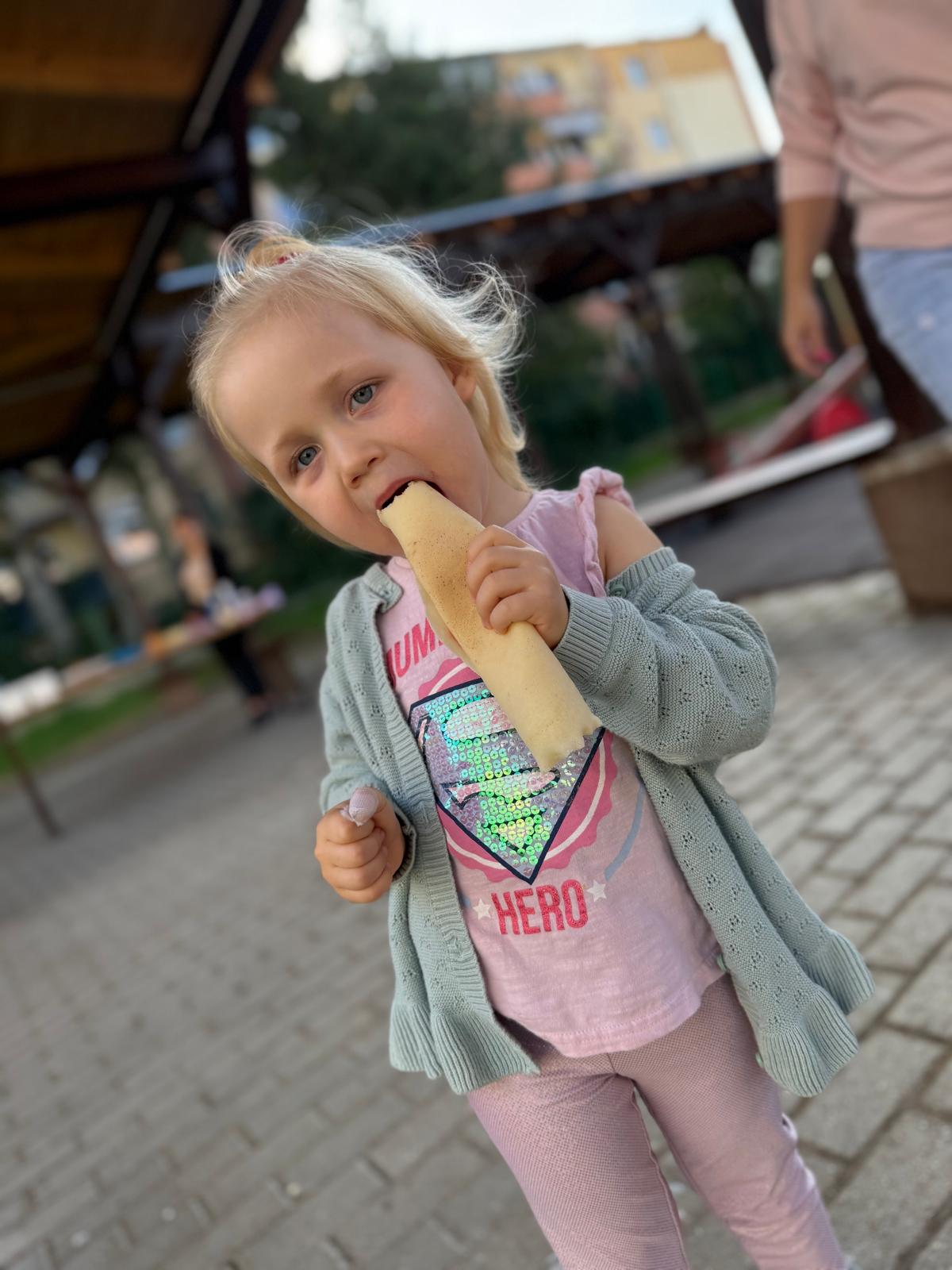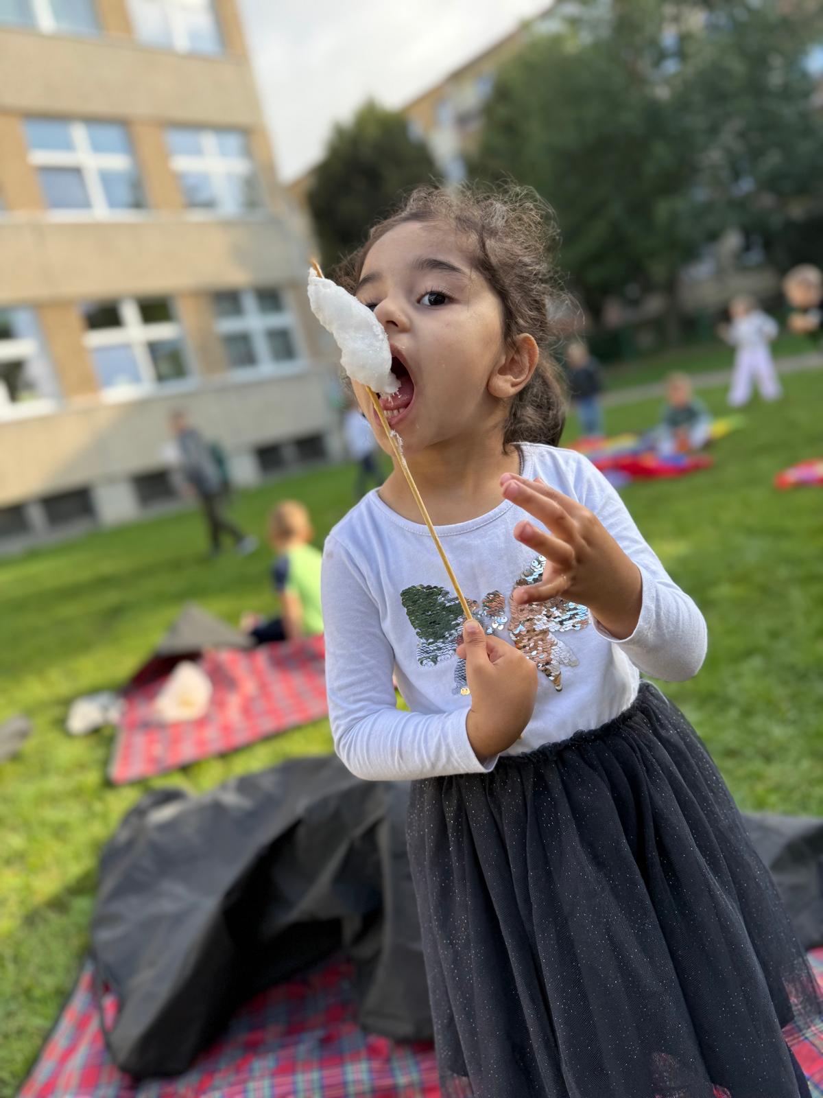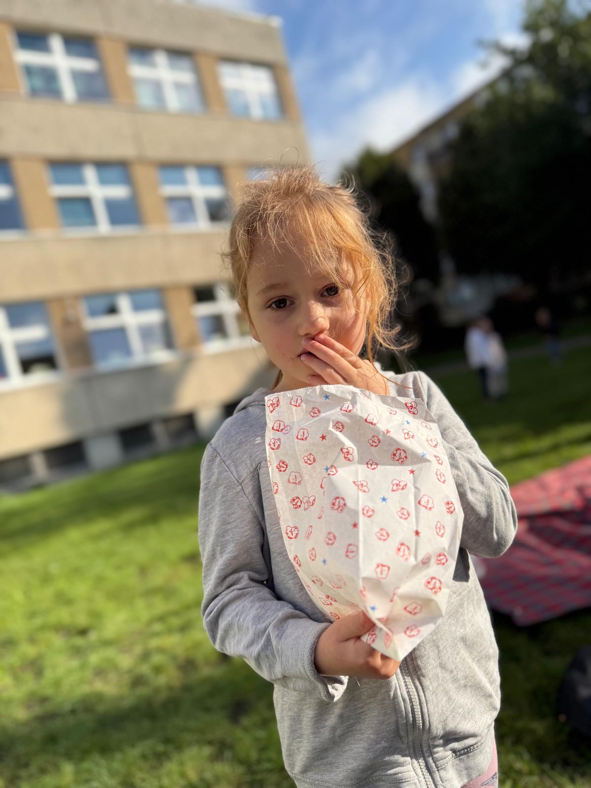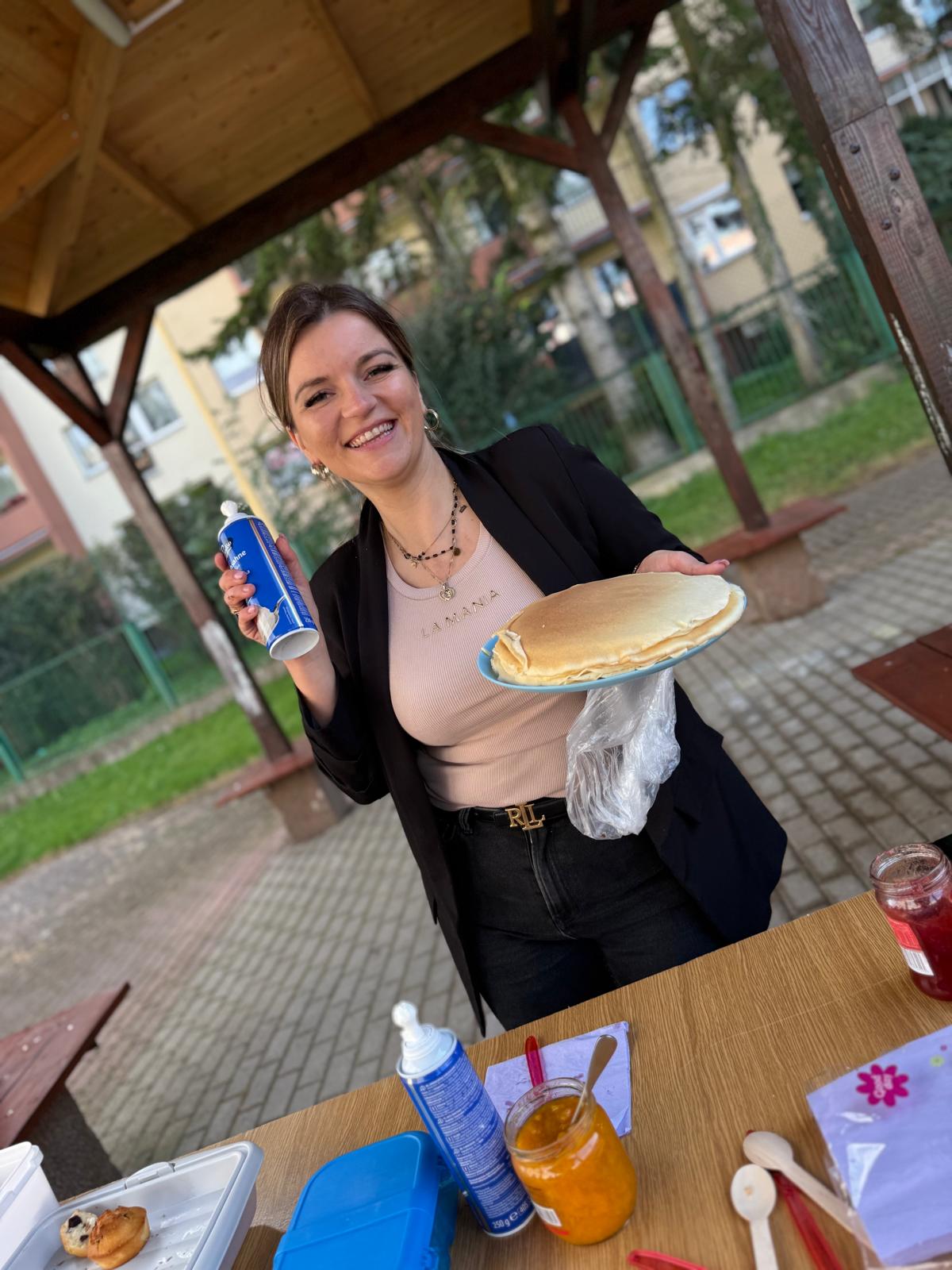 19.09.2025 obchodziliśmy najważniejsze święto, czyli DZIEŃ PRZEDSZKOLAKA. Były zabawy z chustą animacyjną, balonami, dużo muzyki i tańca. Rodzice przygotowali pyszne naleśniki i babeczki a Panie zadbały o popcorn i watę cukrową. To był dzień pełen zabawy i pyszności.