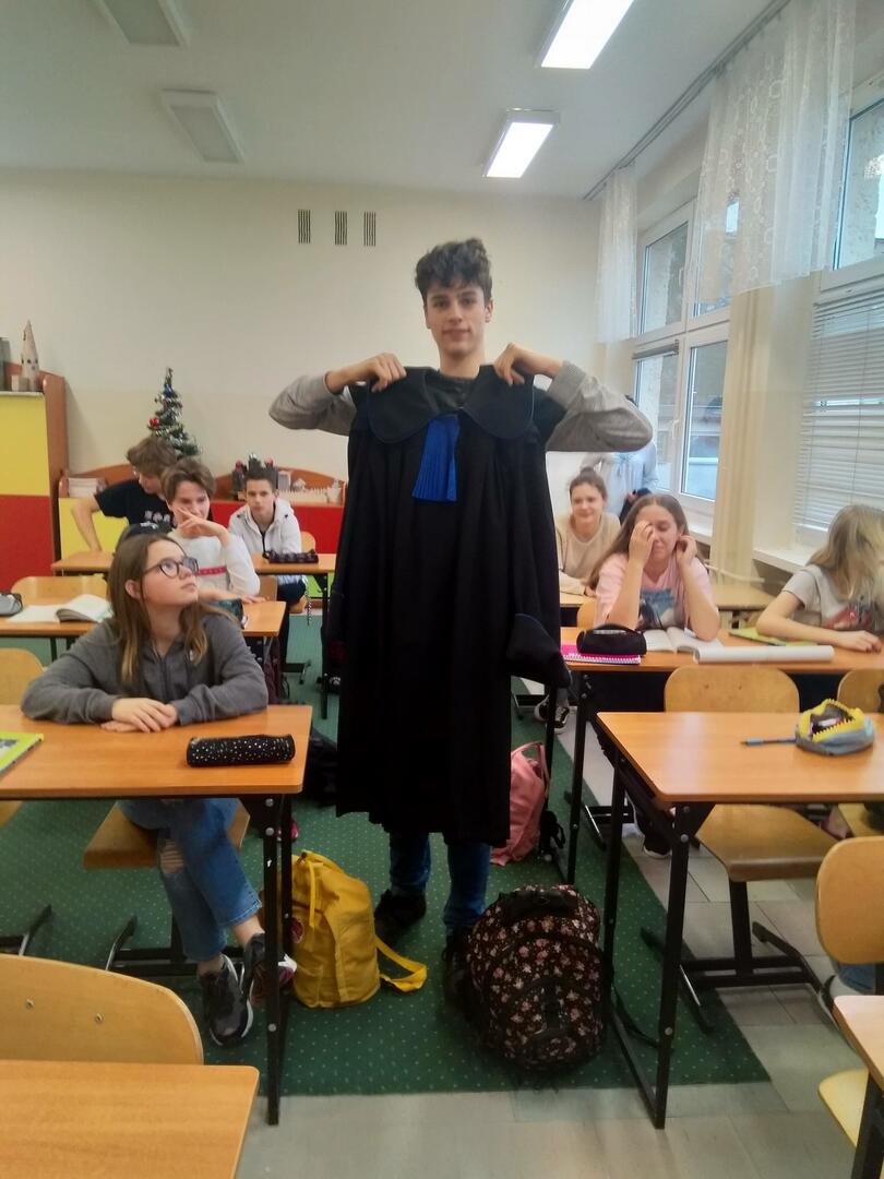 Dnia 14 stycznia 2020r. uczniowie klas VIII mieli możliwość spotkania się z Panią Mecenas Barbarą Domańską z BD Kancelarii Radców Prawnych i Adwokatów w Szczecinie, która w niezwykle ciekawy sposób opowiedziała jaka jest ścieżka kariery prawnika. Uczniowie poznali pracę wielu zawodów prawniczych jak radca prawny, adwokat, sędzia, prokurator. Pani Mecenas przedstawiła informację jak wygląda sala sądowa i jak należy się w takim miejscu zachować oraz pokazała urzędowy strój prawnika – togę. Uczniowie w czasie spotkania dowiedzieli się, o jakim profilu powinni wybrać szkołę ponadpodstawową, aby w przyszłości móc wykonywać zawody prawnicze oraz jak wyglądają studia prawnicze. Młodzież słuchała z uwagą i zadawała ciekawe pytania.