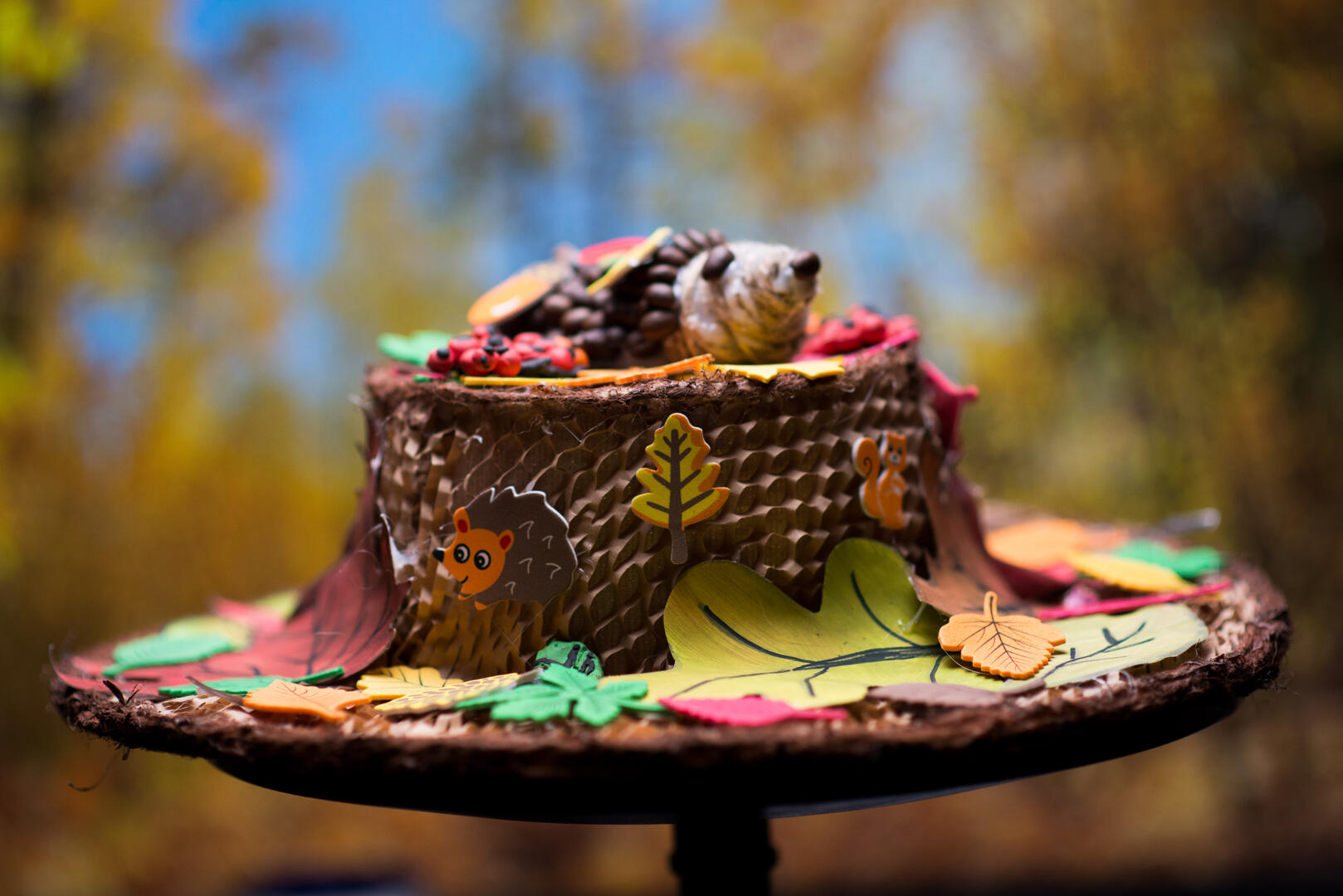 W dniach 9-20 października odbył się konkurs plastyczno-techniczny. Zadaniem konkursowym było stworzenie przestrzennego projektu kapelusza dla Pani Jesieni. Uczniowie wykazali się niezwykłą kreatywnością, a do wykonania prac użyli rozmaitych materiałów – od papieru, sznurków, przez plastelinę, po dary natury: liście, kasztany, żołędzie, mech, kamienie a nawet kawę! Wśród prac znalazła się także płaskorzeźba.