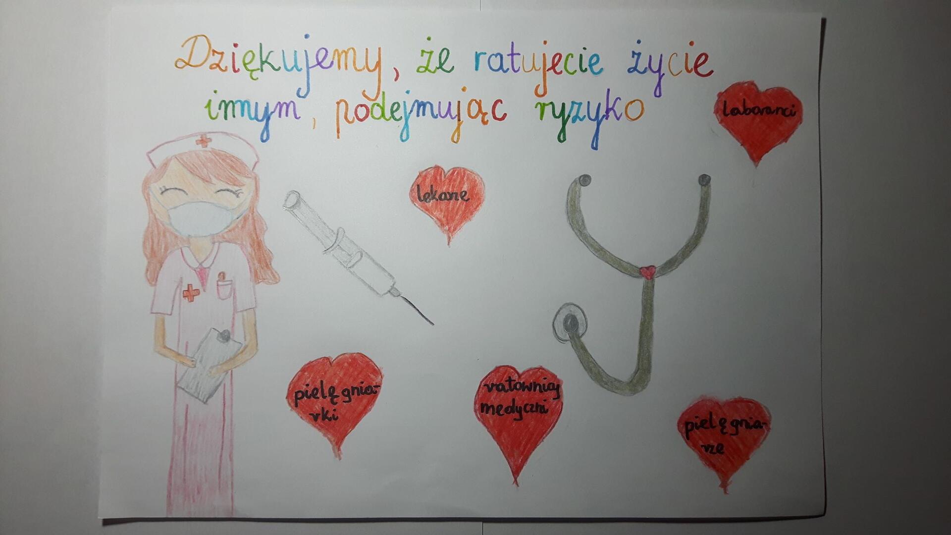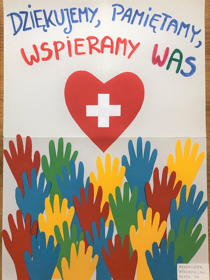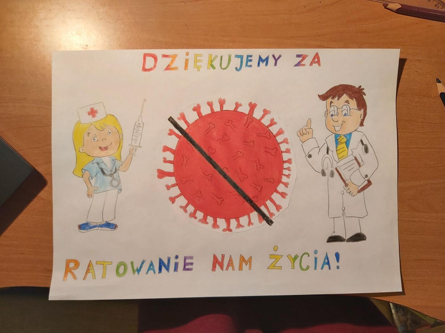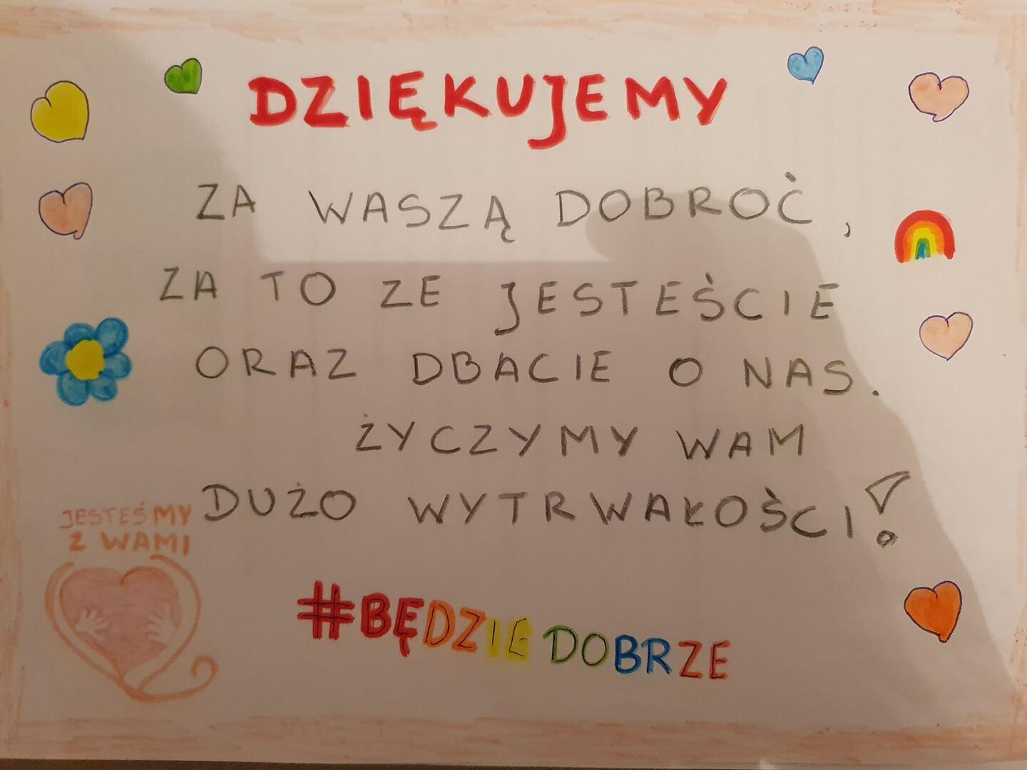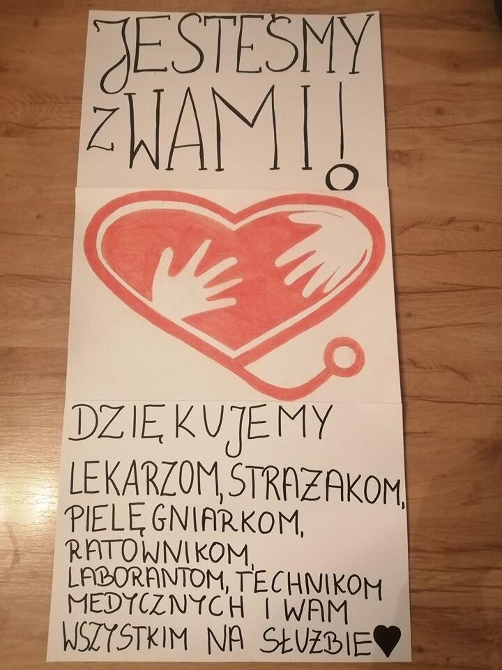 Uczniowie SP 45 dziękują lekarzom, pielęgniarkom, ratownikom, całemu personelowi medycznemu i niemedycznemu oraz każdej osobie, która stoi na pierwszej linii frontu w walce z koronawirusem. Za Wasz trud, troskę, poświęcenie, wkładane serce i wielki profesjonalizm. Dziękujemy !!!!! #JesteśmyZWami