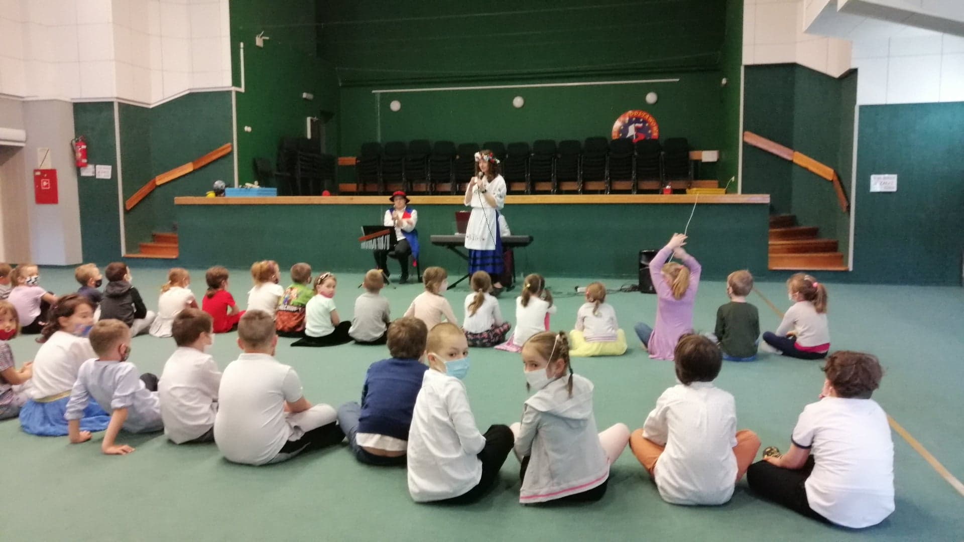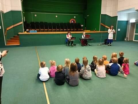 Dzieci z oddziałów przedszkolnych miały okazję wysłuchać koncertu Agencji Artystycznej Pro Musica pt. „O rybaku, srebrnej rybce i słonym Bałtyku”. Maluchy zapoznały się z budową i brzmieniem instrumentów takich jak klarnet i pianino elektryczne. Koncert był muzyczną opowieścią o tym dlaczego Bałtyk jest słony. Prowadząca w bardzo ciekawy sposób opowiedziała legendę o młynku, który wpadł do morza Bałtyckiego. Zadaniem dzieci było m.in. naśladować grę na poznanych instrumentach oraz wyklaskiwać rytm. Koncert bardzo podobał się wszystkim dzieciom.