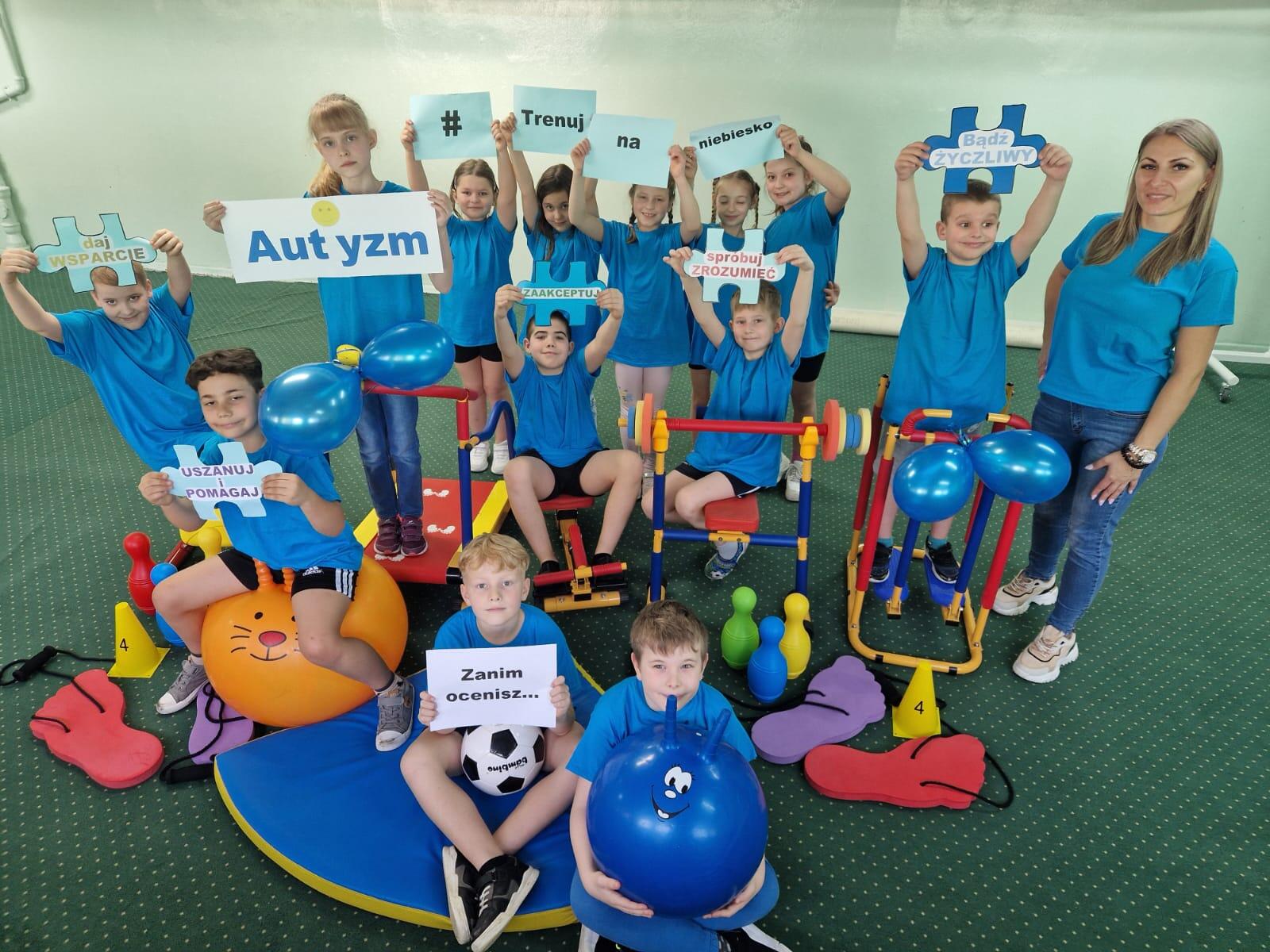 Światowy Dzień Świadomości Autyzmu jest obchodzony corocznie 2 kwietnia. W naszej szkole wydłużyliśmy ten szczególny dzień na cały miesiąc kwiecień. Celem tego miesiąca jest zwiększenie świadomości społecznej na temat autyzmu oraz promowanie zrozumienia i akceptacji osób z autyzmem. Jest to doskonała okazja do edukacji społeczeństwa na temat różnorodności w spektrum autyzmu oraz podkreślenia potrzeby wsparcia dla osób z autyzmem i ich rodzin. Podczas tego miesiąca organizowane są w naszej szkole różnorodne wydarzenia, takie jak tematyczne lekcji o autyzmie, akcja sportowa # trenuj z nami na niebiesko czy też zajęcia plastyczne. Uczniowie i nauczyciele podczas zabawy są ubrani na niebiesko, ponieważ ten kolor oznacza solidarność z osobami z autyzmem. Celem wszystkich przedsięwzięć jest m.in. podniesienie świadomości dzieci i młodzieży, budowanie zrozumienia i akceptacji dla osób, które zmagają się z tym zaburzeniem ze spektrum na co dzień. Dzieci i młodzież uświadomiły sobie, że osoby ze spektrum autyzmu, chociaż wyglądają zupełnie zwyczajnie, to odbierają świat inaczej niż większość z nas.