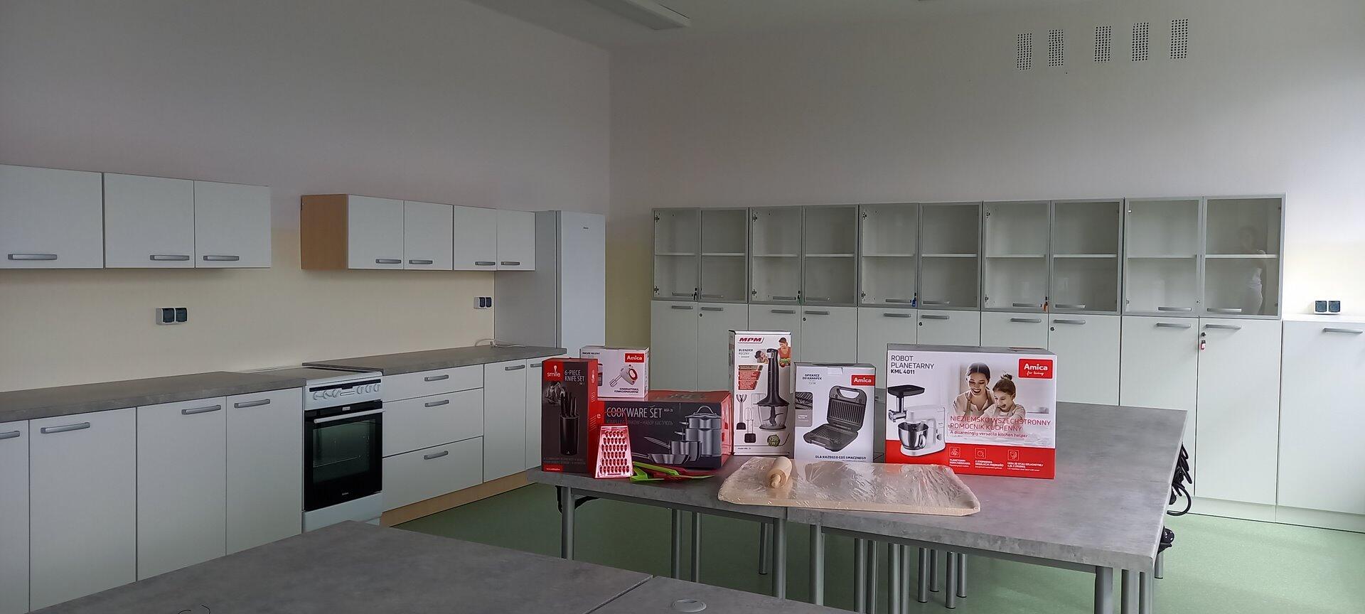 Pracownia gotowania to w pełni wyposażone stanowiska w sprzęt kuchenny. Nauka obsługi podstawowych sprzętów AGD oraz korzystanie z przepisów kulinarnych, odmierzanie gramatur, łączenie ze sobą składników, to dla niektórych pierwszy krok na drodze zawodowej w kształtowaniu przydatnych umiejętności życiowych. Pracownia kuchenna umożliwia naukę gotowania i przyrządzania potraw oraz doskonalenia umiejętności planowania pełnowartościowych posiłków. Dzięki otrzymanemu wsparciu został zakupiony poniższy akcesoria: