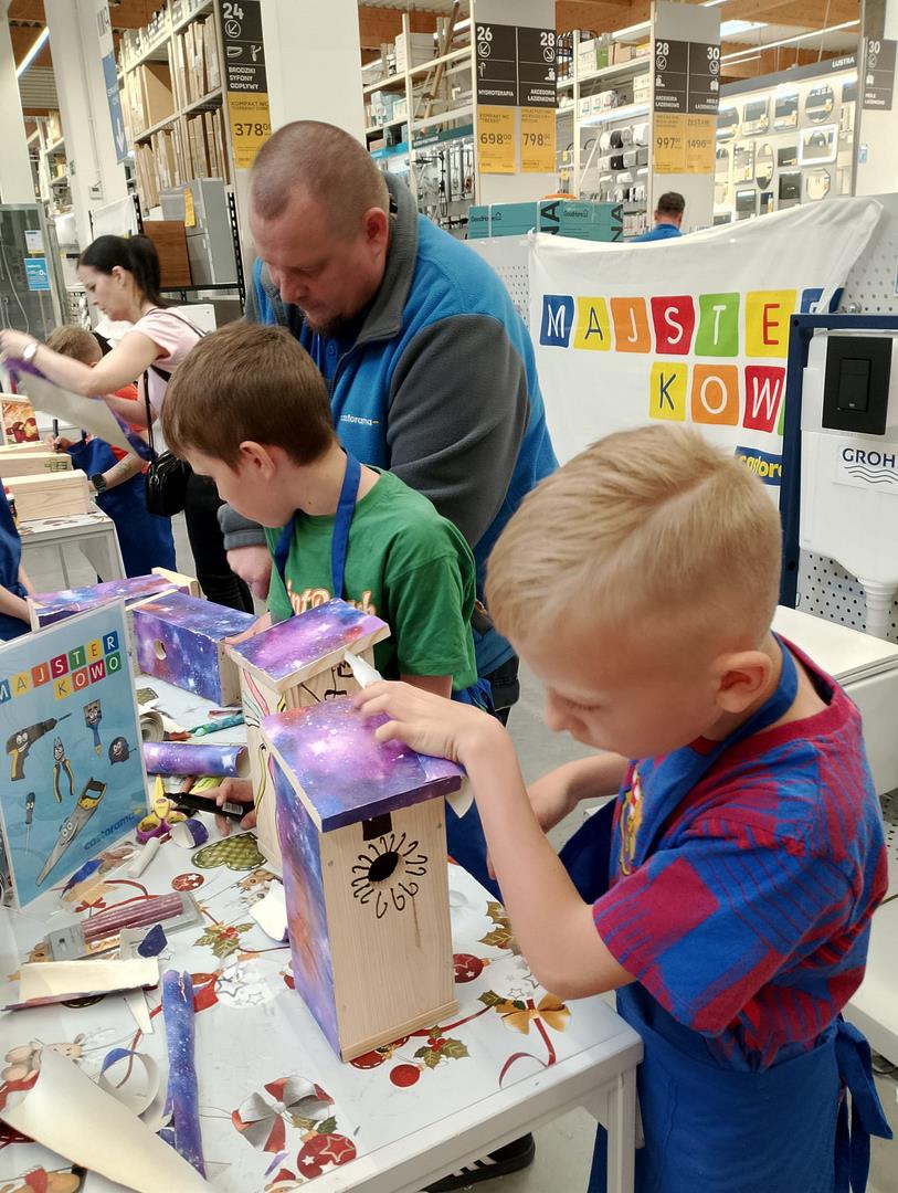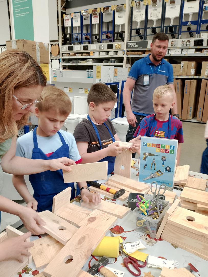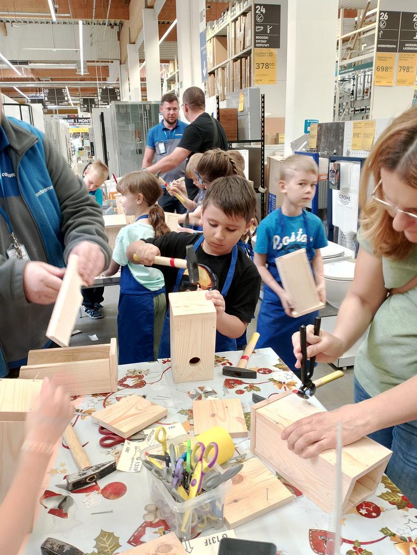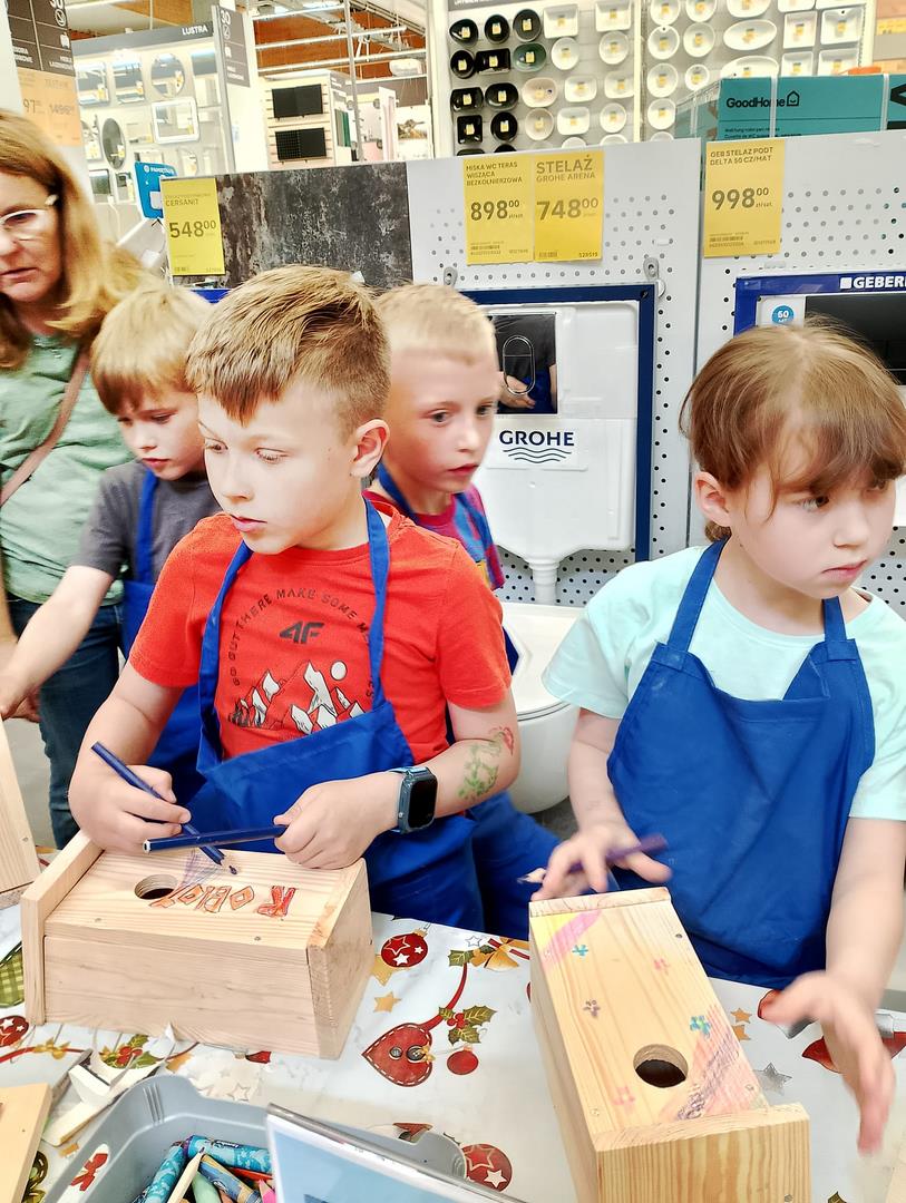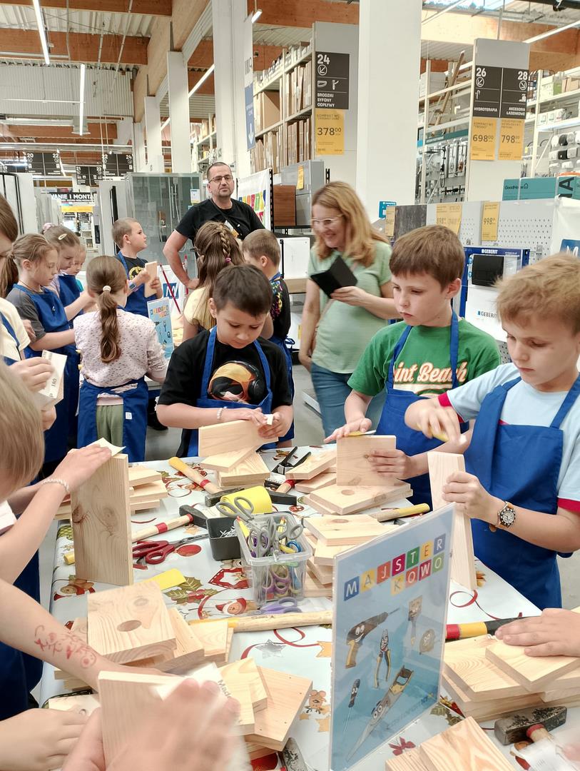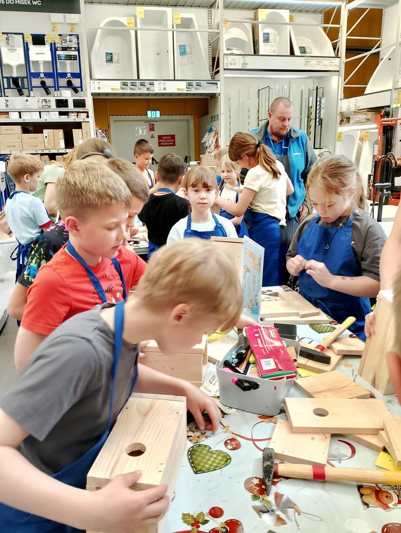 Kl. 2c nieustannie rozwija swoje talenty i podejmuje wciąż nowe wyzwania. W ostatnim miesiącu roku szkolnego wybrała się na warsztaty stolarskie do Castoramy, a tam w ruch poszły młotki, gwoździe, deski, kombinerki… Majsterkowo to okazja do rozwijanie zdolności manualnych i wyobraźni, pobudzenia pasji do majsterkowania. Budując budki lęgowe dla ptaków uczniowie uczyli się dbałości o środowisko nie tylko poprzez wykorzystanie materiałów wtórnych, ale również dobywając wiedzę przyrodniczą.