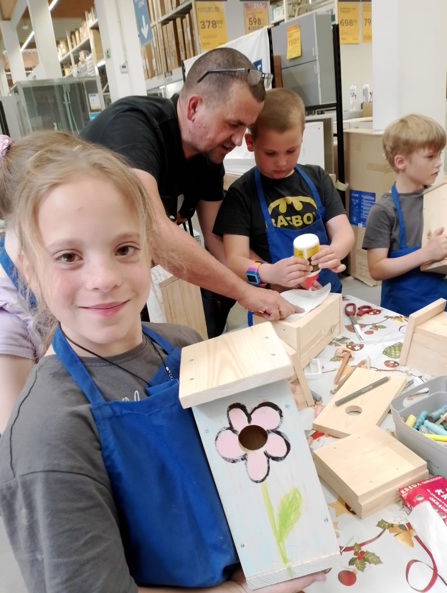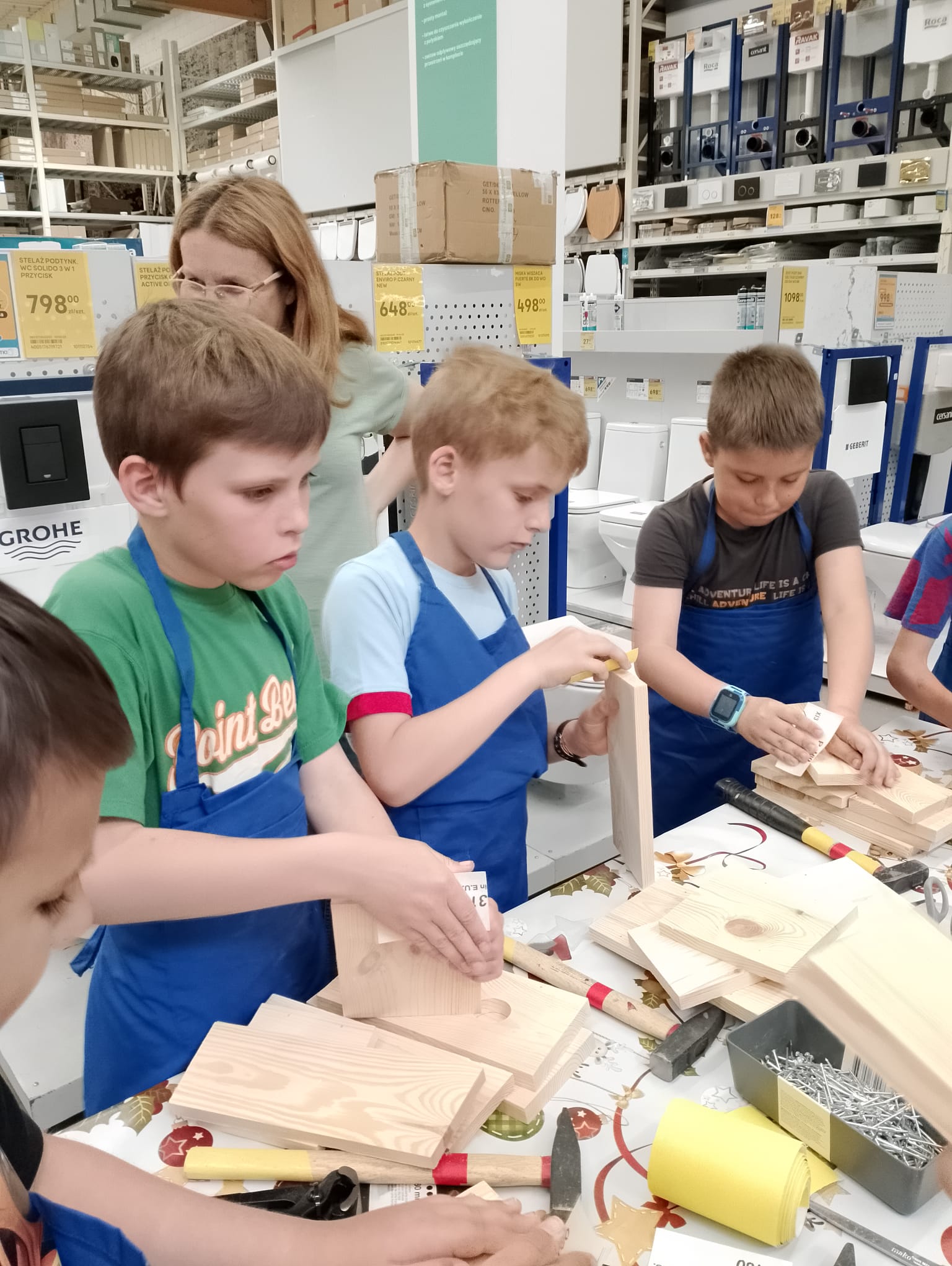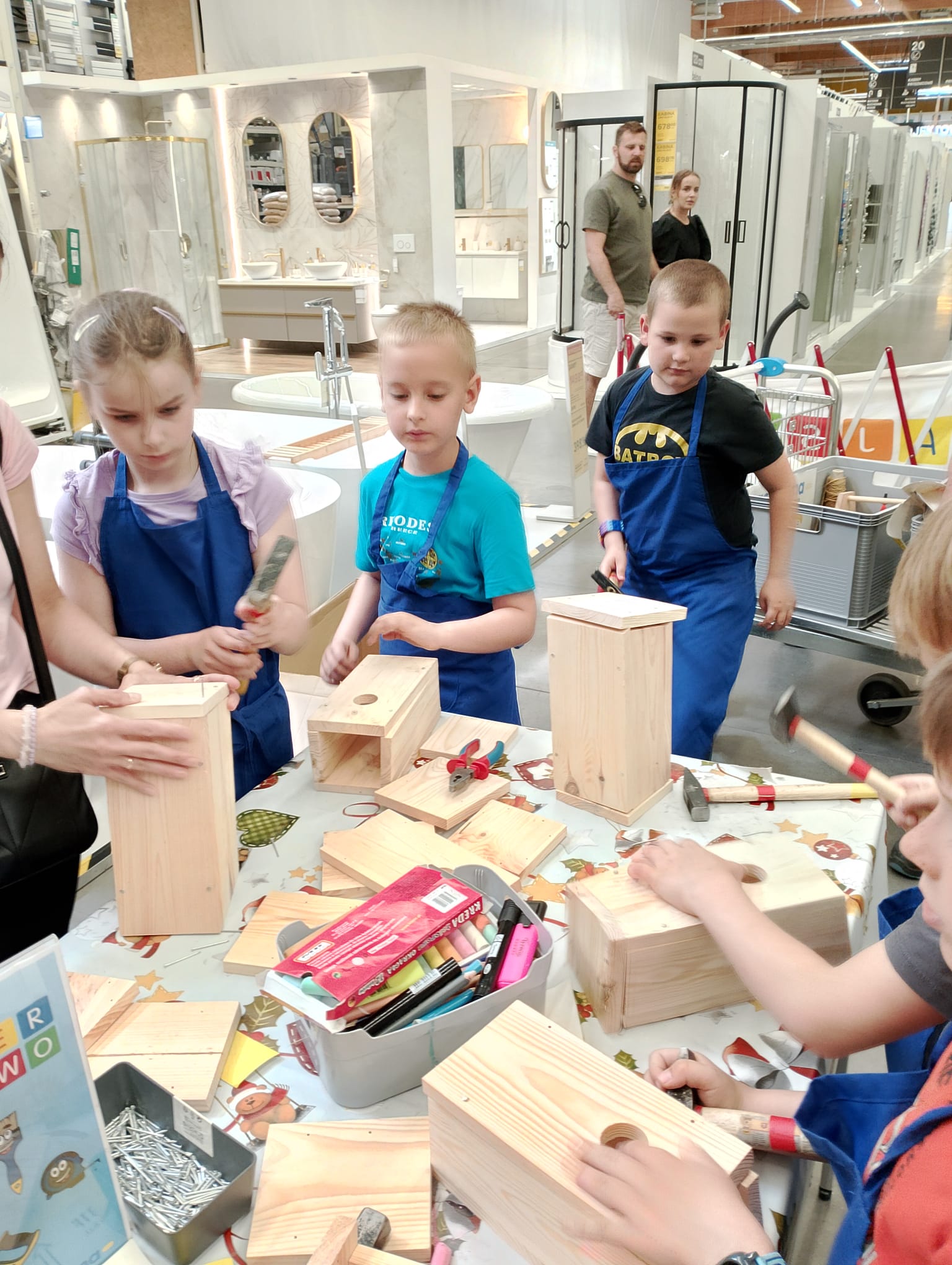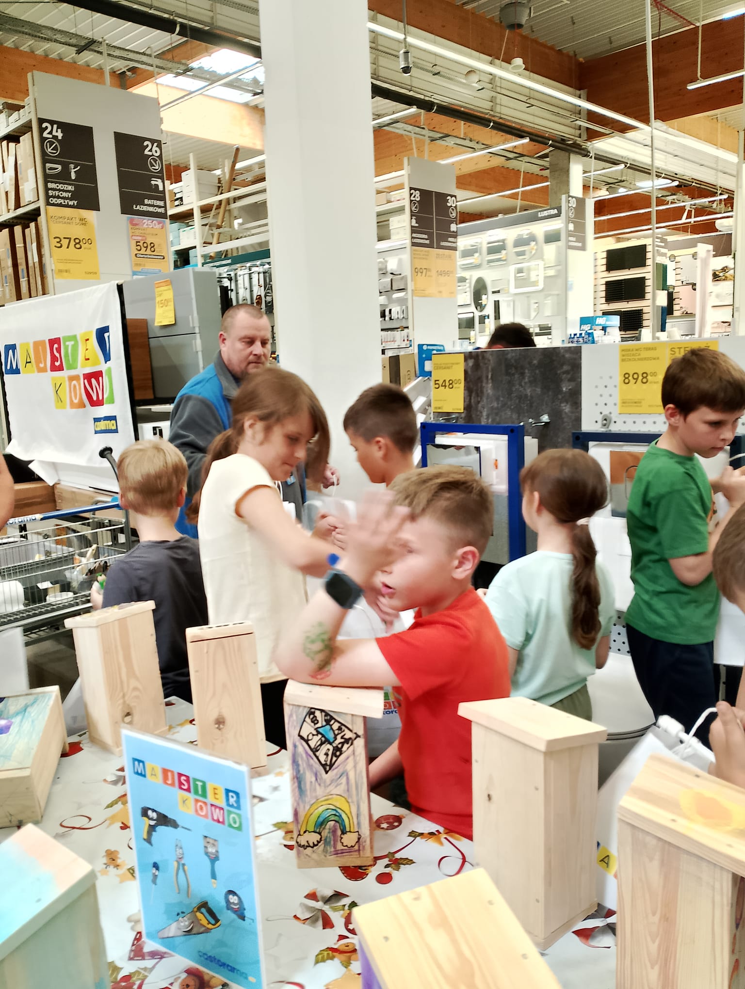 Kl. 2c nieustannie rozwija swoje talenty i podejmuje wciąż nowe wyzwania. W ostatnim miesiącu roku szkolnego wybrała się na warsztaty stolarskie do Castoramy, a tam w ruch poszły młotki, gwoździe, deski, kombinerki… Majsterkowo to okazja do rozwijanie zdolności manualnych i wyobraźni, pobudzenia pasji do majsterkowania. Budując budki lęgowe dla ptaków uczniowie uczyli się dbałości o środowisko nie tylko poprzez wykorzystanie materiałów wtórnych, ale również dobywając wiedzę przyrodniczą.