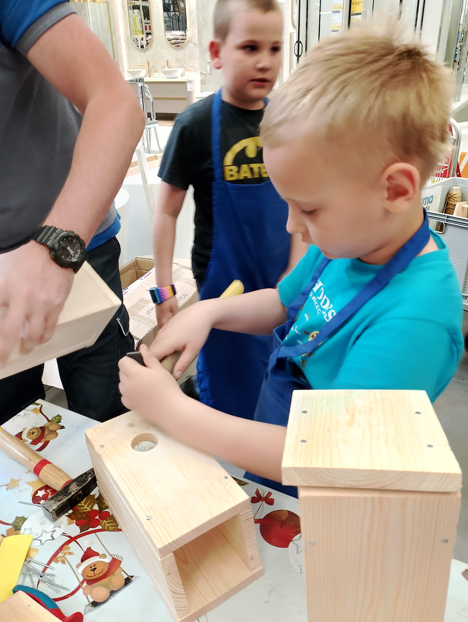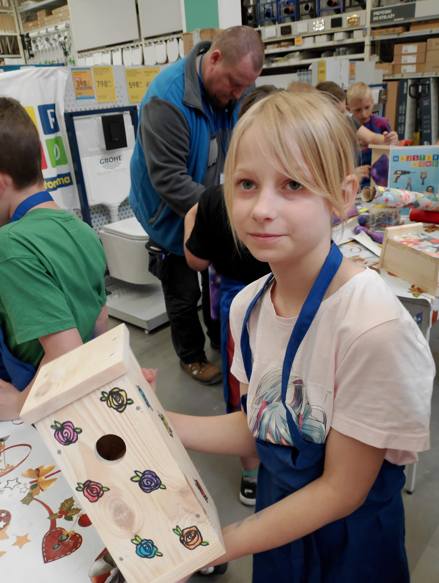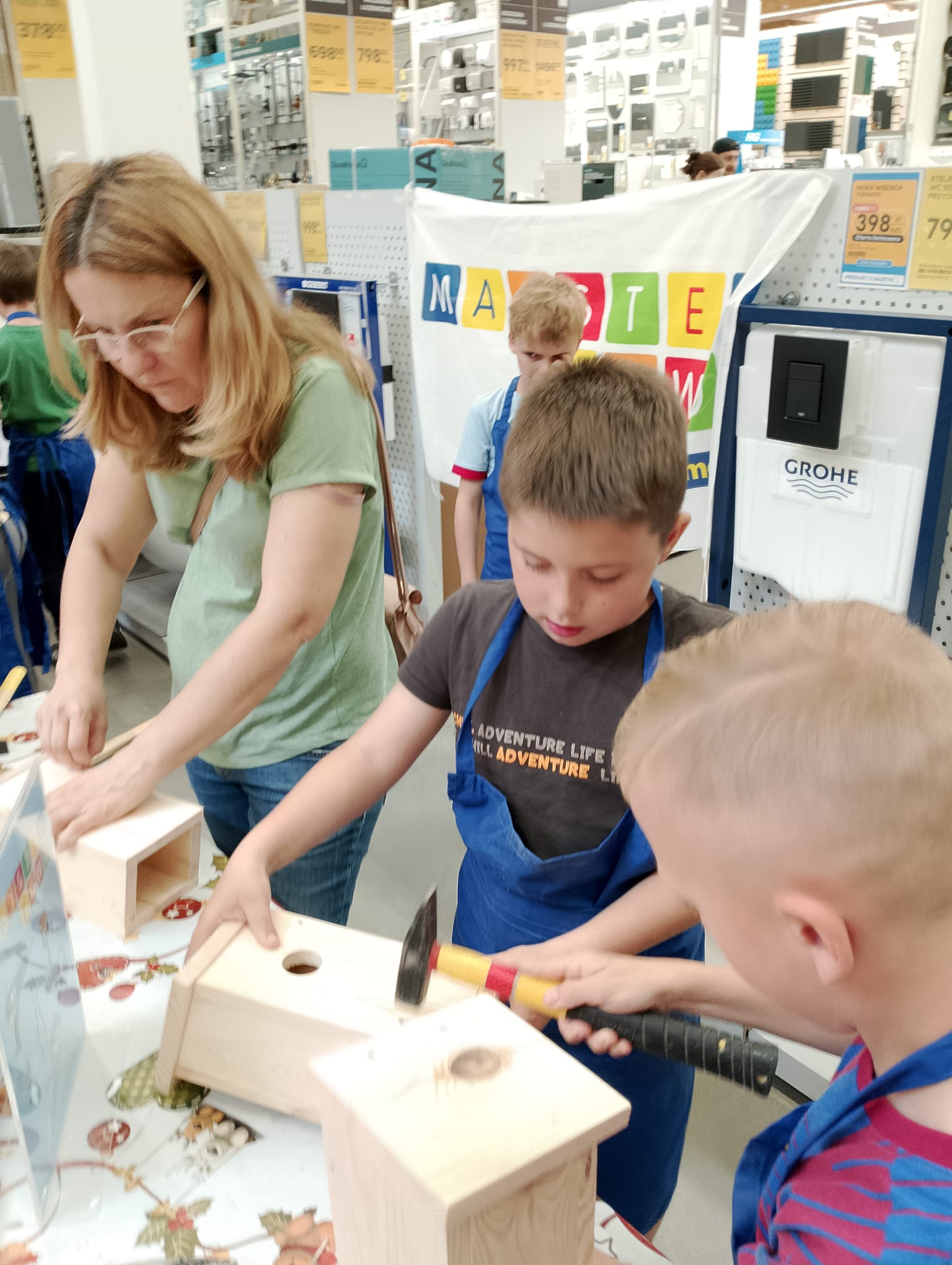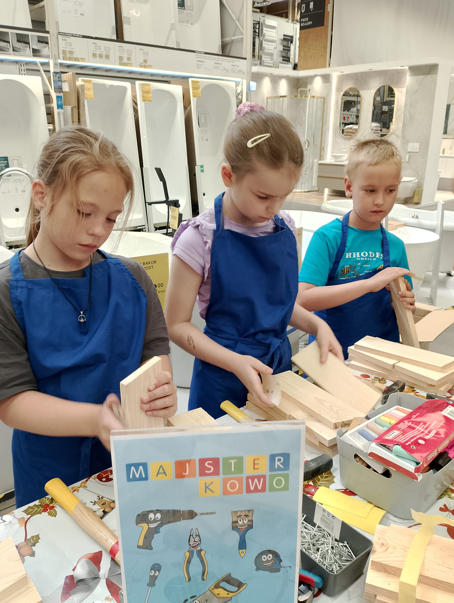 Kl. 2c nieustannie rozwija swoje talenty i podejmuje wciąż nowe wyzwania. W ostatnim miesiącu roku szkolnego wybrała się na warsztaty stolarskie do Castoramy, a tam w ruch poszły młotki, gwoździe, deski, kombinerki… Majsterkowo to okazja do rozwijanie zdolności manualnych i wyobraźni, pobudzenia pasji do majsterkowania. Budując budki lęgowe dla ptaków uczniowie uczyli się dbałości o środowisko nie tylko poprzez wykorzystanie materiałów wtórnych, ale również dobywając wiedzę przyrodniczą.