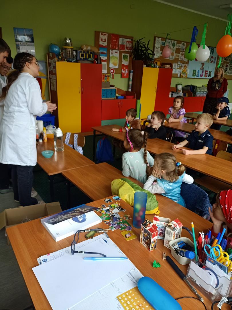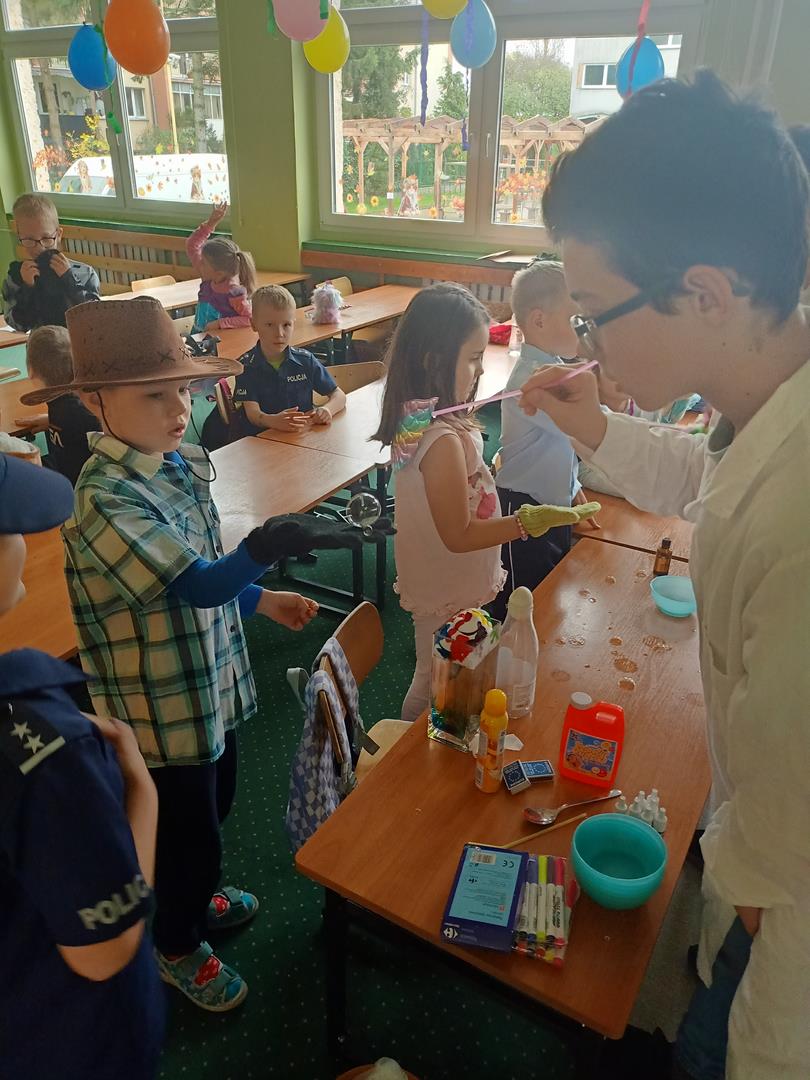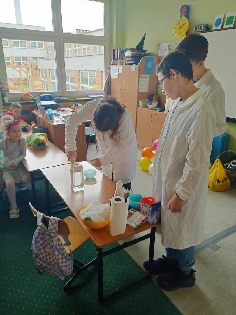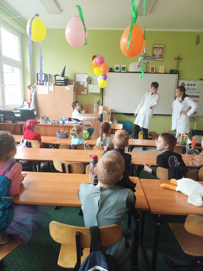 Uczniowie z Koła Naukowego zawitali do młodszych kolegów w ramach kreatywnego piątku pt: " Mali naukowcy ". Odbyła się bardzo ciekawa lekcja doświadczalna. Były niepękające bańki, tęcza, ciecz nieniutonowska, pływające zwierzątka i inne. Dzieciom bardzo się podobało. Zapraszamy do obejrzenia zdjęć.