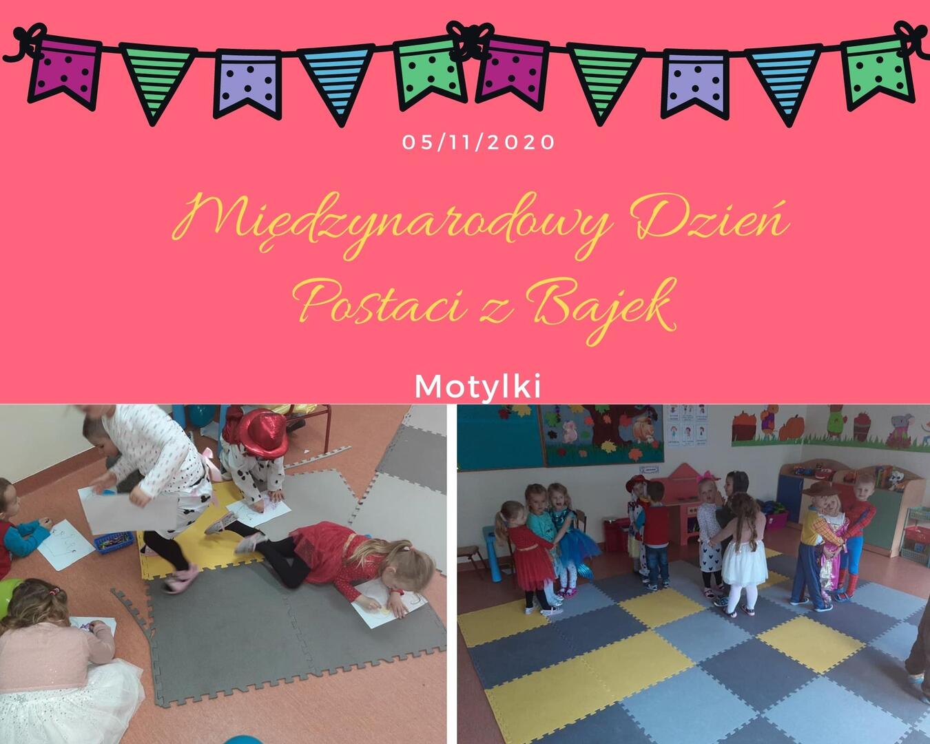 5 listopada obchodzone jest jedno z najsympatyczniejszych świąt – Międzynarodowy Dzień Postaci z Bajek! Tego dnia dzieci z grupy Motylki sprawdziły swoją wiedzę na temat bajek i postaci w nich występujących. Były również zabawy z balonami takie jak zatrute jabłko i taniec balonów. Dzieci poćwiczyły rączki podczas wykonywania karty grafomotorycznej a na koniec odbyła się Dyskoteka z ulubionymi przebojami :)