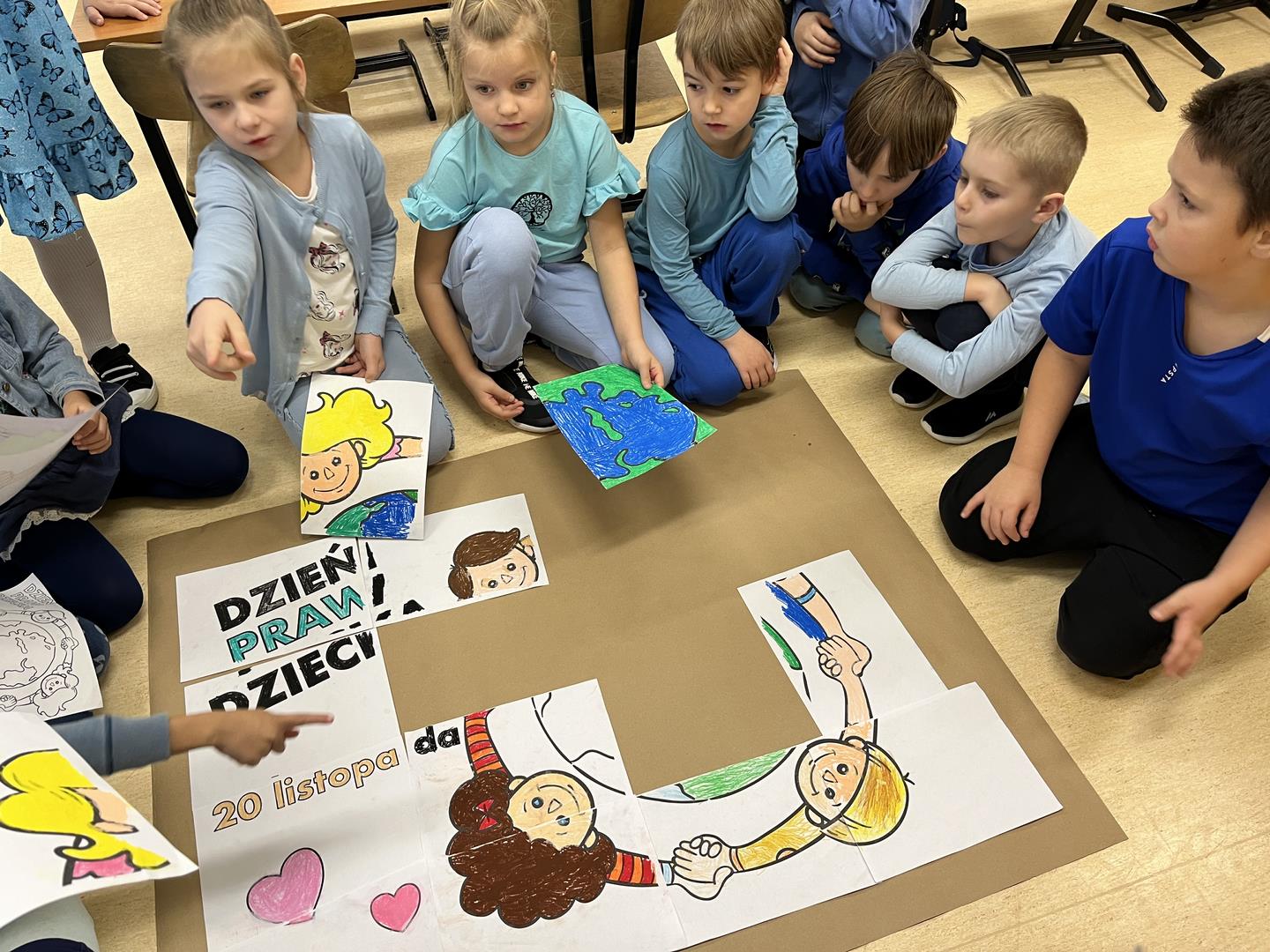 20 listopada 2024 r. klasa 1 b włączyła się do obchodów Międzynarodowego Dnia Praw Dziecka, którego organizatorem jest UNICEF. Prawa Dziecka zostały przyjęte w 1989 roku przez Zgromadzenie Ogólne Narodów Zjednoczonych. W tym roku obchodziliśmy 35 rocznicę, dlatego wszyscy, uczniowie i wychowawczynie naszej klasy ubrani byli na niebiesko. Cyjan to kolor symbolizujący solidarność z wszystkimi dziećmi na całym świecie, zwłaszcza z tymi, których prawa są łamane i nieprzestrzegane. Dzieci z klasy 1 b poznały zapisy Konwencji o prawach dziecka, obejrzały film edukacyjny i samodzielnie wykonały pracę plastyczną, która w formie plakatu została wyeksponowana w sali. Celebrowanie tak ważnego dnia było wspaniałą okazją pod względem poznawczym, ale też umożliwiło kształtowanie pożądanych postaw, umiejętności współpracy i odpowiedzialności za wykonaną pracę w zespołach. Uświadamianie dzieciom ich praw jest obowiązkiem wszystkich dorosłych.