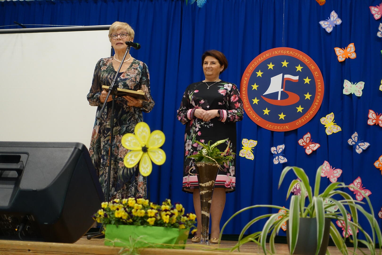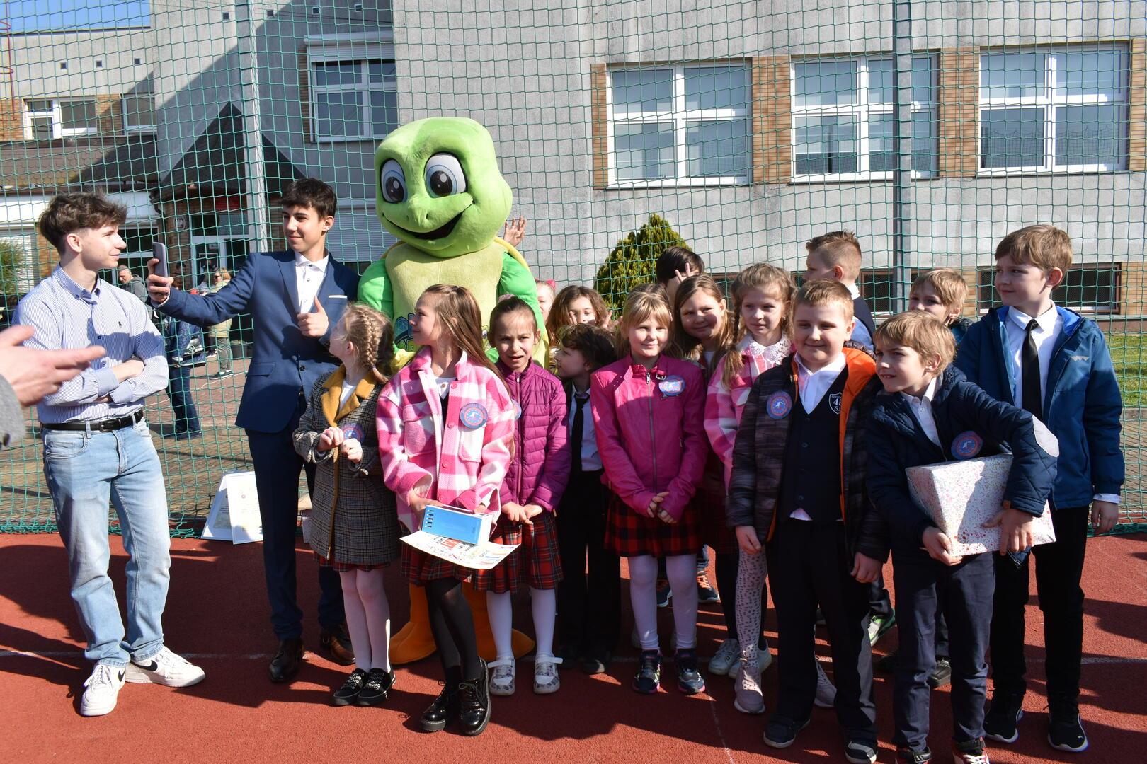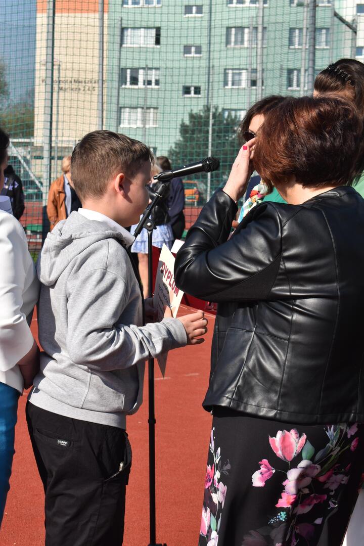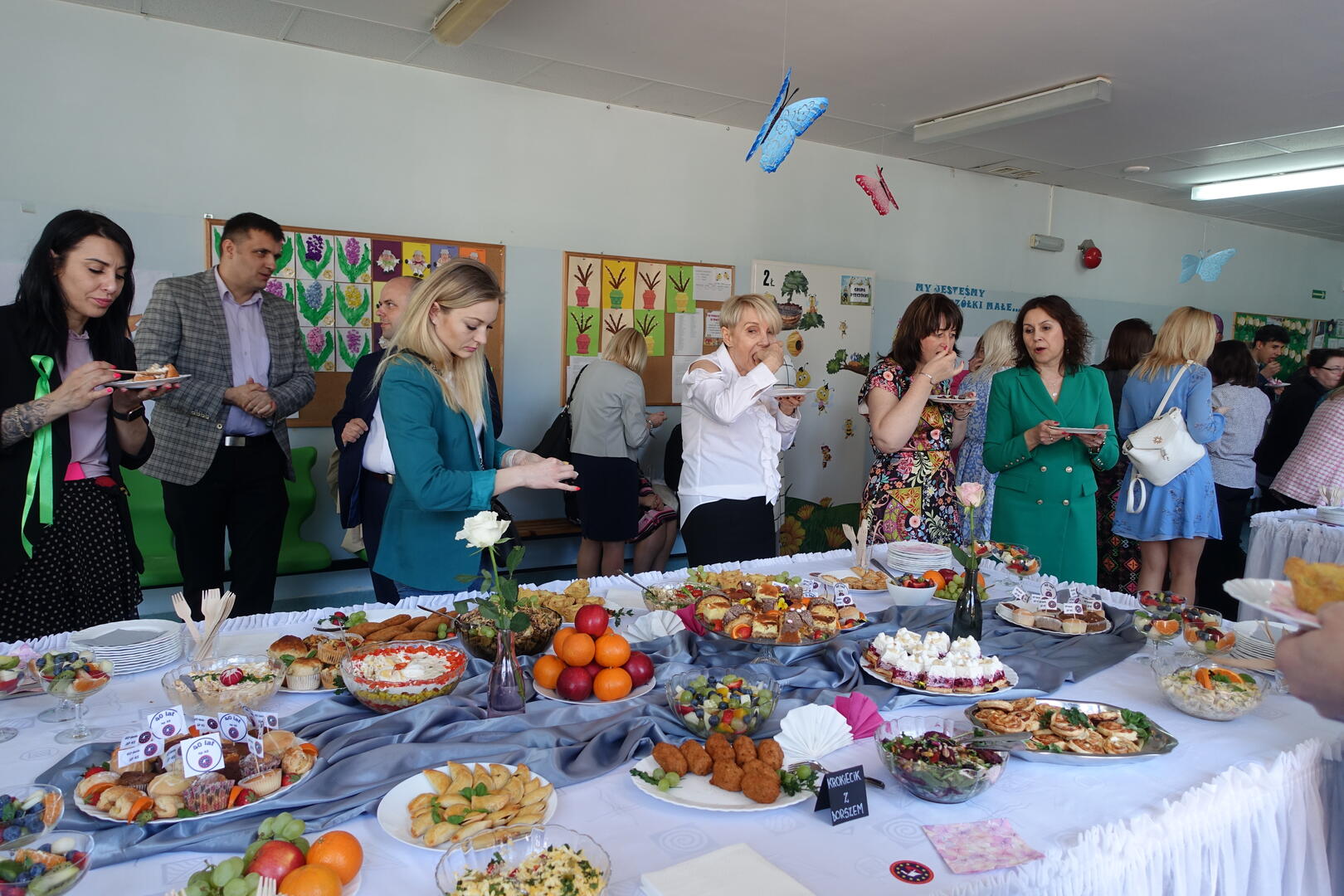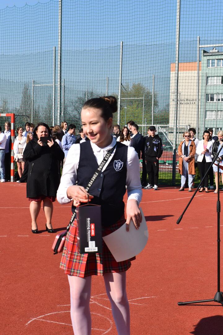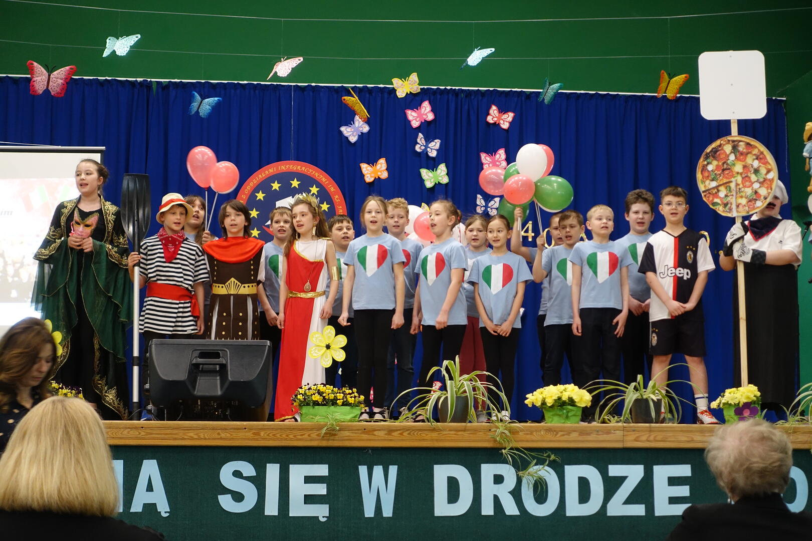 To przede wszystkim nasi uczniowie sprawili, że cieszyliśmy się tym wyjątkowym dniem. Mogliśmy podziwiać niesamowite taneczne występy naszych absolwentów, grę na akordeonie i flażoletach naszych najmłodszych uczniów; nie zabrakło również włoskich muzycznych akcentów. Swoją grą aktorską oczarowała nas klasa 7b, która zaprezentowała spektakl traktujący o szczęściu. Na szkolnym boisku wyjątkowo, bo wypuszczeniem w niebo czterdziestu kolorowych balonów, uczciliśmy ten niezwykły jubileusz szkoły.