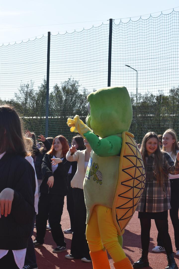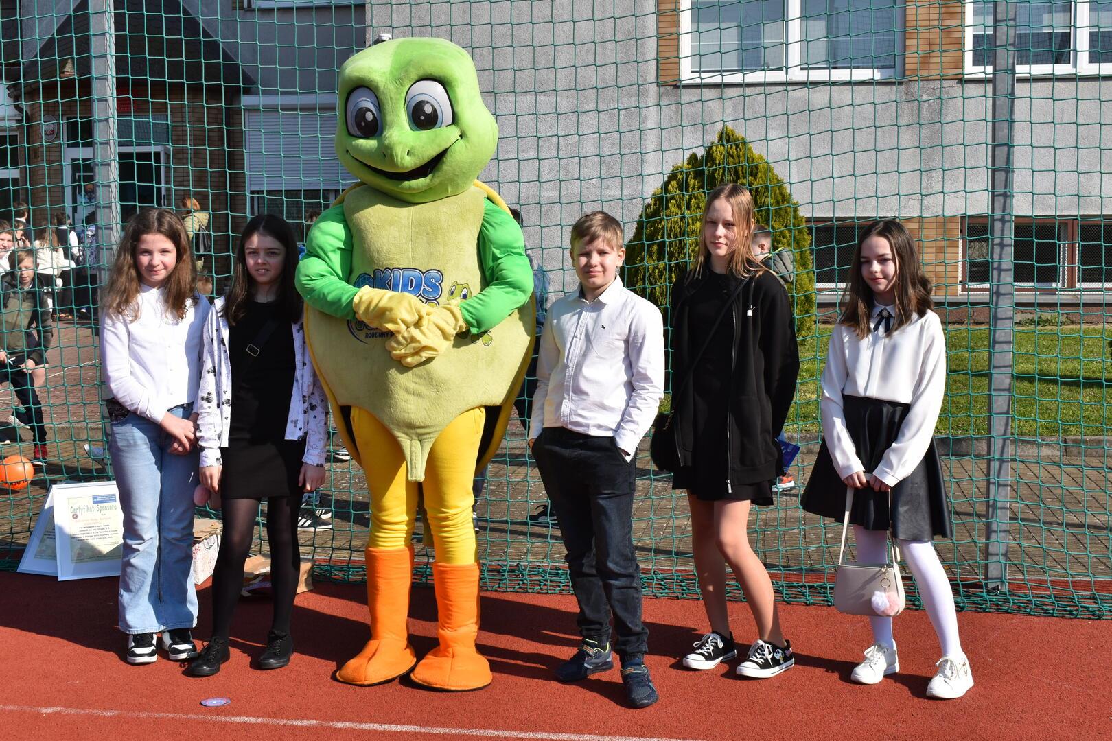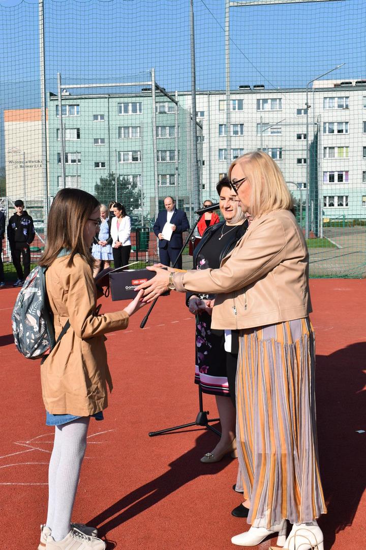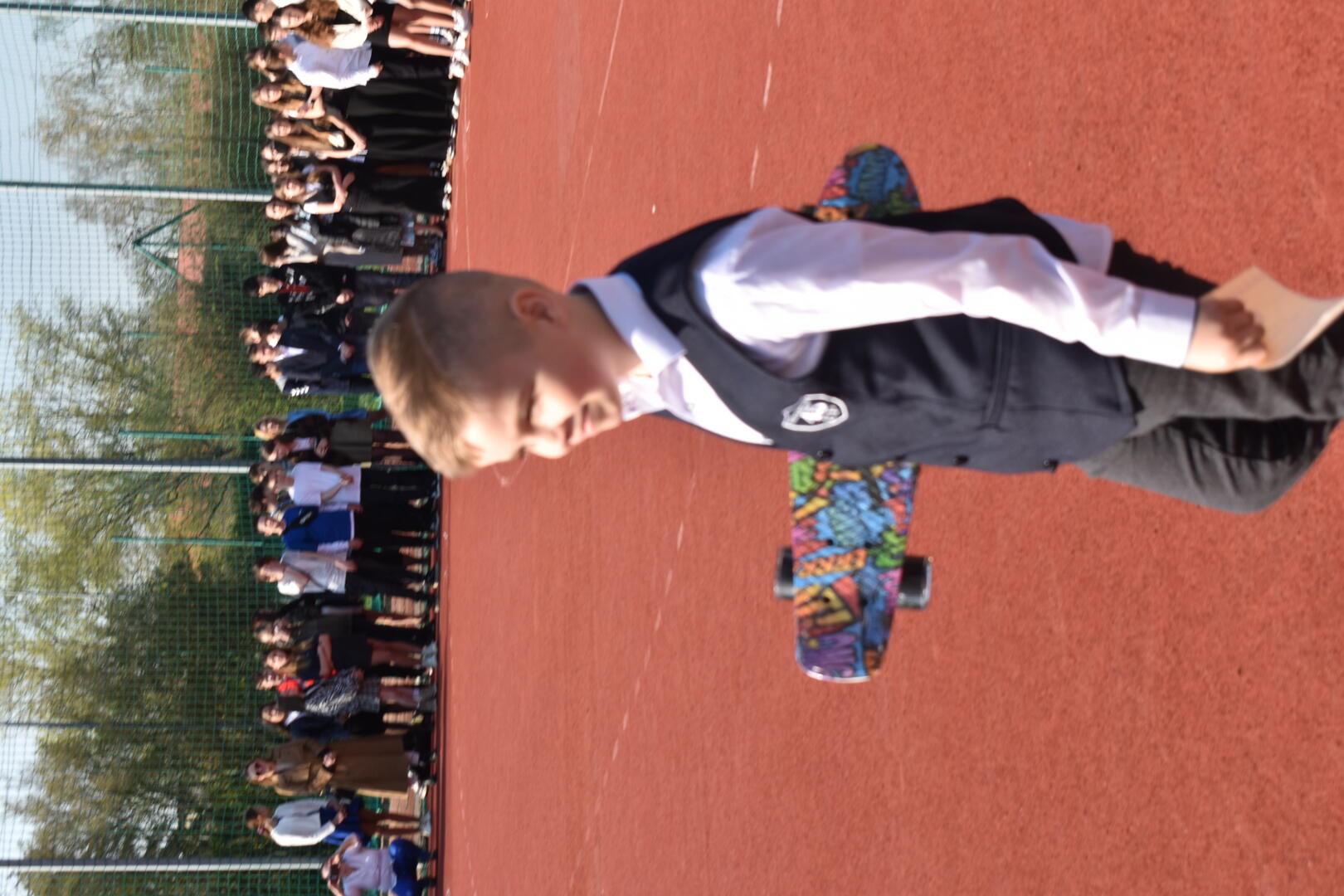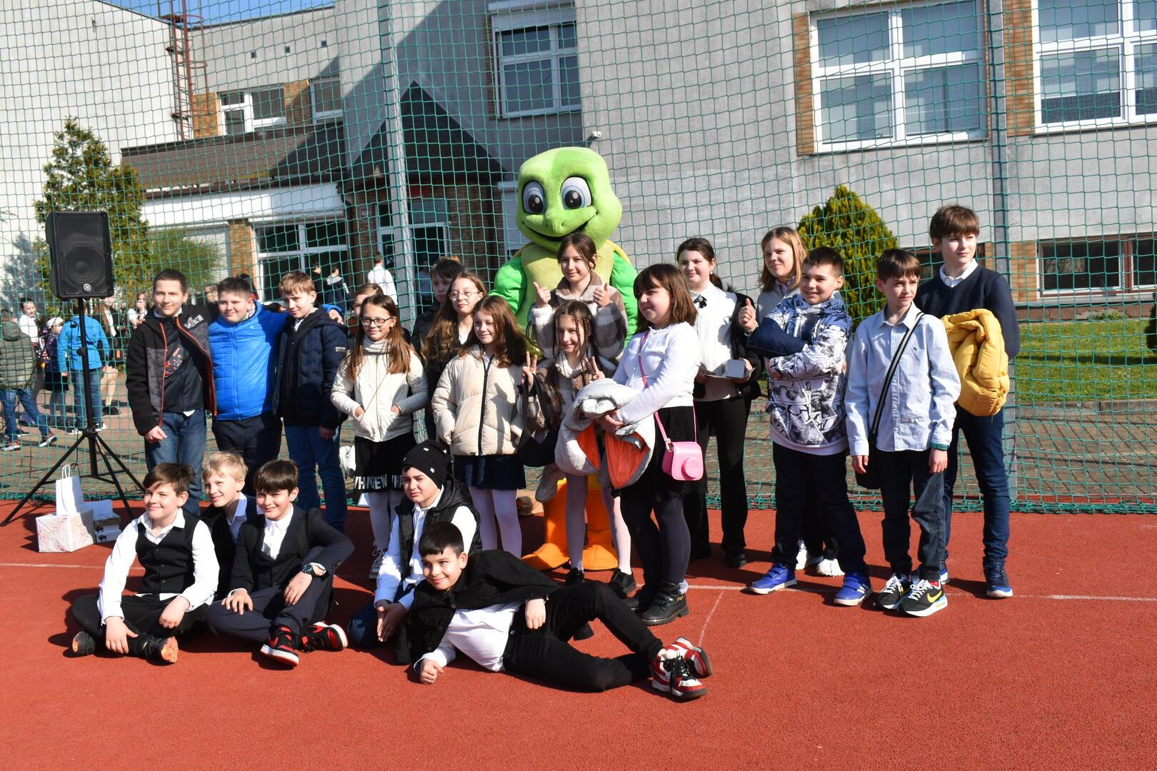 To przede wszystkim nasi uczniowie sprawili, że cieszyliśmy się tym wyjątkowym dniem. Mogliśmy podziwiać niesamowite taneczne występy naszych absolwentów, grę na akordeonie i flażoletach naszych najmłodszych uczniów; nie zabrakło również włoskich muzycznych akcentów. Swoją grą aktorską oczarowała nas klasa 7b, która zaprezentowała spektakl traktujący o szczęściu. Na szkolnym boisku wyjątkowo, bo wypuszczeniem w niebo czterdziestu kolorowych balonów, uczciliśmy ten niezwykły jubileusz szkoły.
