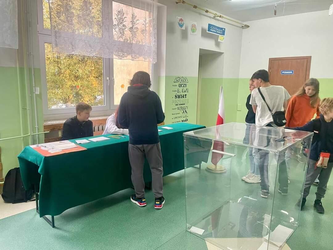 10 października w naszej szkole odbyły się wybory zorganizowane we współpracy z Centrum Edukacji Obywatelskiej. Uczniowie klasy 6-8 mieli szansę oddać głos na wybrany przez siebie komitet wyborczy oraz wziąć udział w referendum. Wyniki szkolnej symulacji wyborów kształtują się następująco: Frekwencja: w głosowaniu wzięło udział 35% uprawnionych uczniów KW Bezpartyjni Samorządowcy: 2% głosów KKW Trzecia Droga: 17% głosów KW Nowa Lewica: 20% głosów KW Prawo i Sprawiedliwość: 4% głosów KW Konfederacja: 7% głosów KKW Koalicja Obywatelska: 42 % głosów KWW Ruch Dobrobytu i Pokoju 5% głosy nieważne - 3% Wszystkim uczniom i uczennicom, którzy wzięli udział w głosowaniu serdecznie dziękujemy i gratulujemy udziału w tej praktycznej lekcji demokracji. Pamiętajcie - to Wy jesteście przyszłością! To Wy będziecie decydować o tym, jak ma wyglądać nasz kraj! Zdjęcia zostały wykonane aparatem, który znajduje się na wypsażeniu pracowni Steam.
