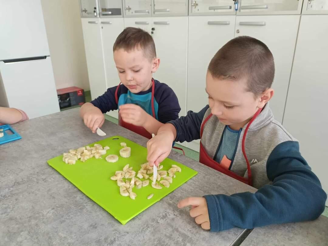 Z okazji Dnia warzyw i owoców, dzieci z grupy 0a odwiedziły 20 października pracownię kulinarną. Dzieci przygotowały sałatkę ze swoich ulubionych owoców.Samodzielnie przygotowany posiłek smakował wyśmienicie.