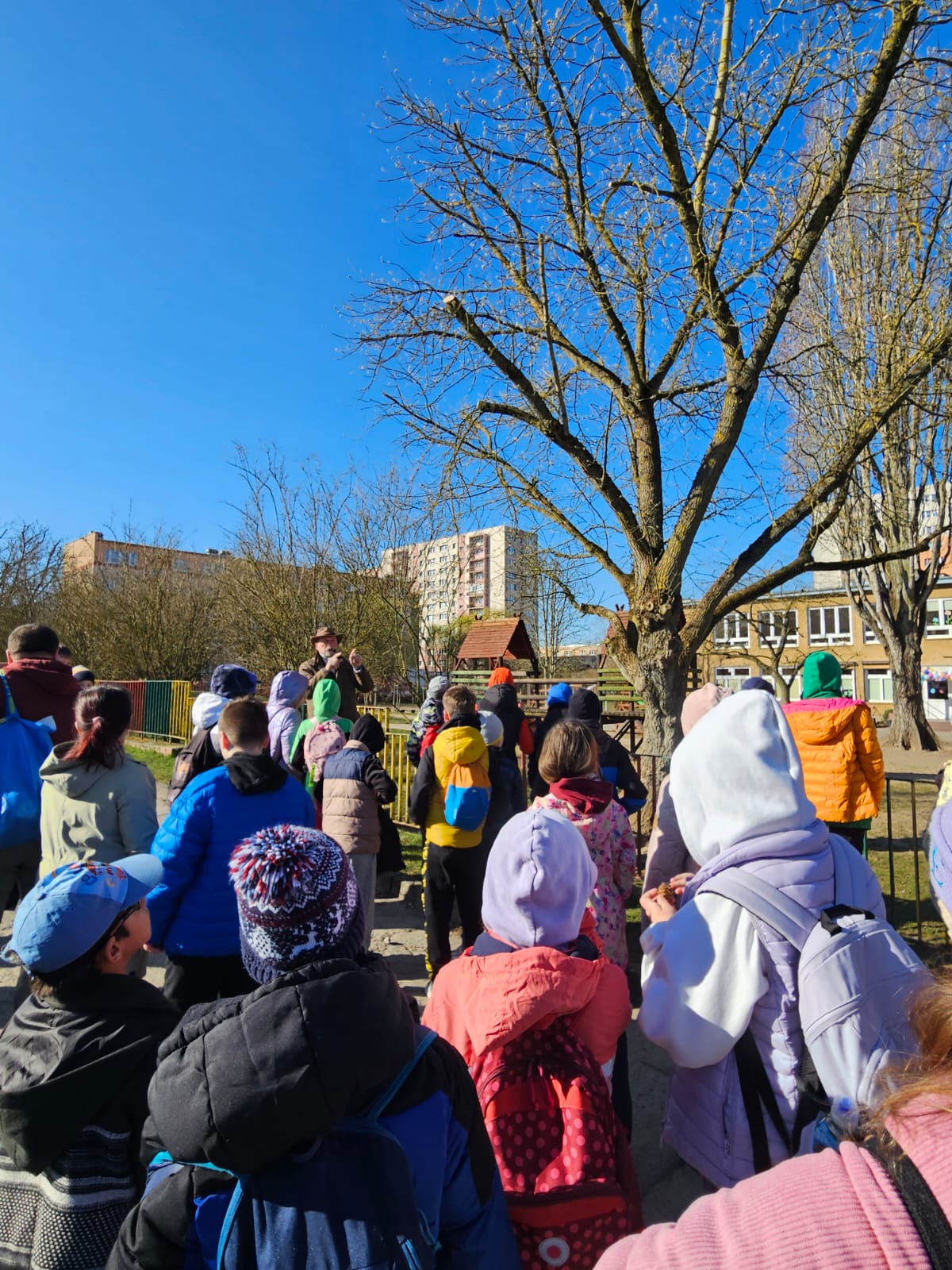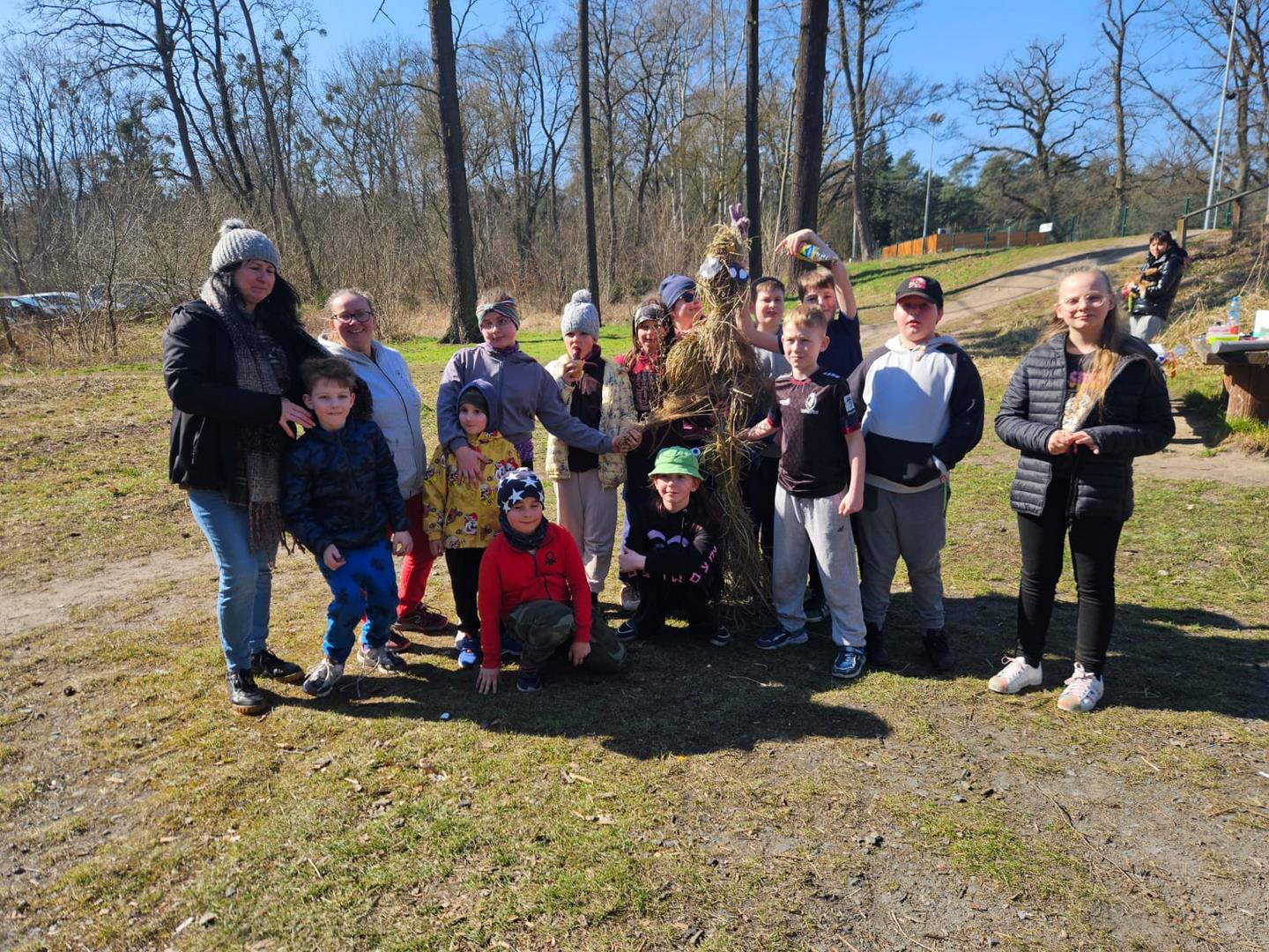 Pierwszy Dzień Wiosny był dla naszych uczniów i ich rodziców dniem radości, kreatywności i wspólnej zabawy. Podczas spaceru wokół naszej szkoły uczniowie mogli dowiedzieć się wielu ciekawych informacji o drzewach,a wszystko to dzięki naszemu przewodnikowi Panu Pawłowi Madejskiemu,który jest autorem mapy ciekawych obiektów dendrologicznych szczecińskich parków. Największą jednak atrakcją dla naszej grupy było tradycyjne pożegnanie zimy. Spacer zakończył się wspólnym ogniskiem i smaczną kiełbaską.