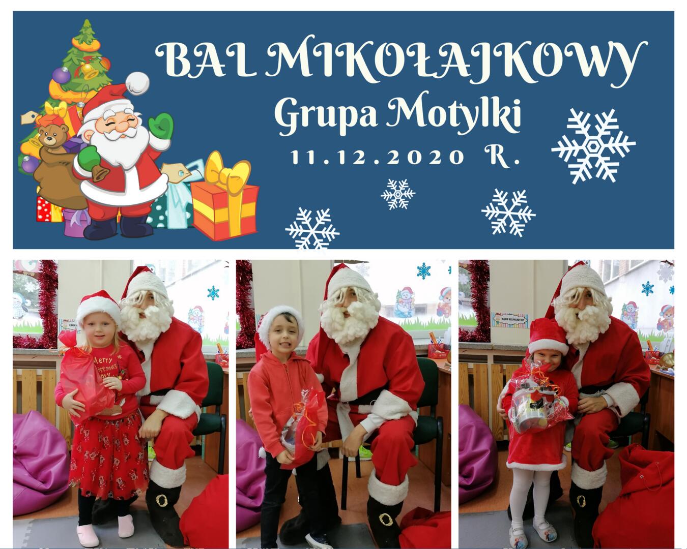 11.12.2020 (piątek) w grupie Motylki odbył się Bal Mikołajkowy, który poprowadził Pan Łukasz Olczak. Motylki chętnie brały udział w zajęciach ruchowych. Dzieci bawiły się znakomicie podczas zabaw tanecznych. Przedszkolaki wyczekiwały od rana specjalnego gościa. Uśmiech, radość, niedowierzanie malowały się na twarzach dzieci, kiedy ukazał się im Św. Mikołaj z prezentami. Każdy grzeczny Motylek otrzymał prezent od Św. Mikołaja. Dzieci w ramach podziękowania zaśpiewały piosenkę i wyrecytowały wierszyki specjalnie dla Św. Mikołaja. Na zakończenie dnia był słodki poczęstunek. Serdecznie dziękujemy Panu Łukaszowi Olczakowi oraz Panu Damianowi Orzechowskiemu za wcielenie się w rolę Św. Mikołaja. Serdecznie dziękujemy również rodzicom za słodkości.