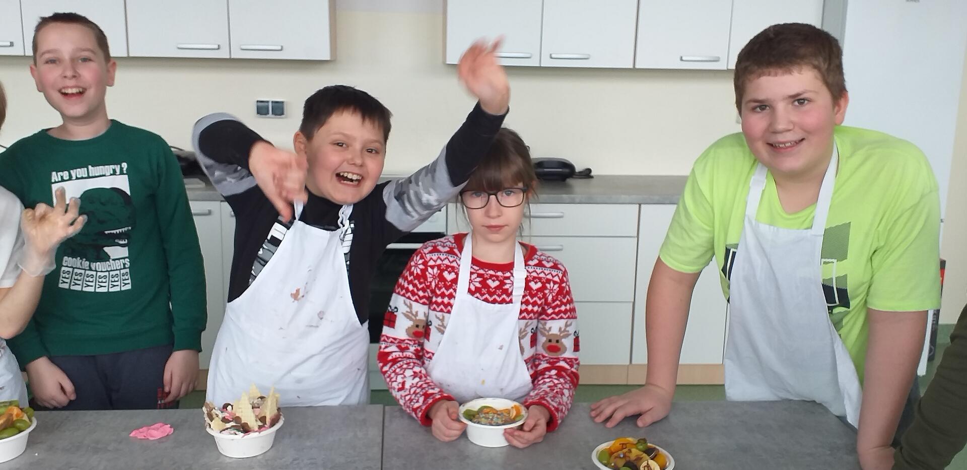 Dzieci i młodzież chętnie podjęły wyzwanie, czym bardzo ucieszyły organizatorów. W szkolnej kuchni Laboratorium Przyszłości fartuchy kucharskie założyli uczniowie wielu zespołów klasowych. Z dużym zaangażowaniem tworzyli cukiernicze dzieła sztuki.