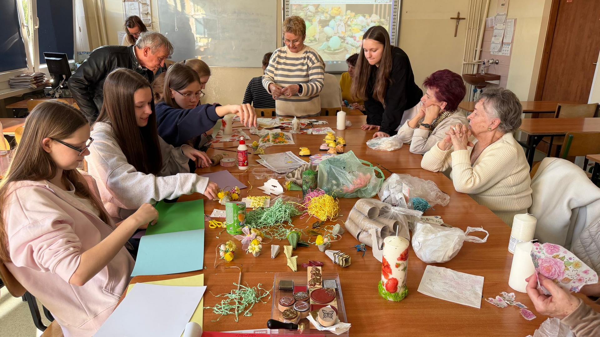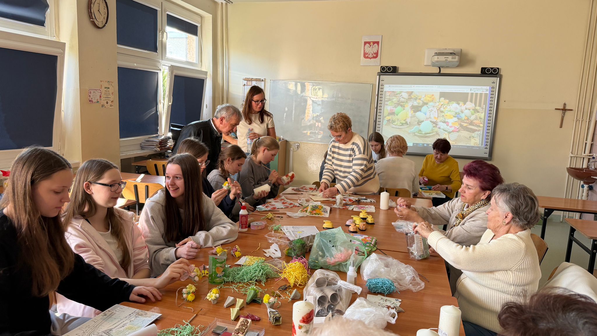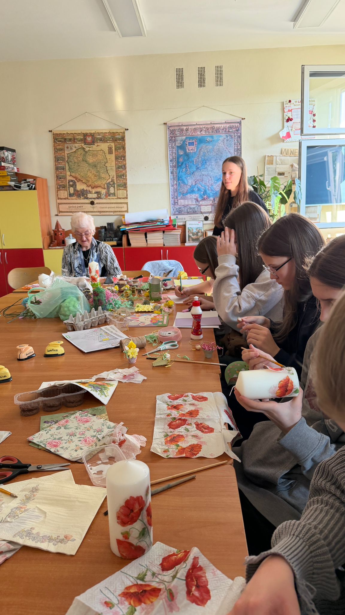 Szkolne Koło Wolontariatu zorganizowało przed świętami spotkanie z seniorami działającymi przy Radzie Osiedla. Wspólnie tworzyliśmy ozdoby świąteczne, spędzając czas w miłej i serdecznej atmosferze. Przygotowane dekoracje zostały następnie zaniesione do Domu Pomocy Społecznej razem ze zbieranymi wcześniej skarpetkami dla jego mieszkańców.
