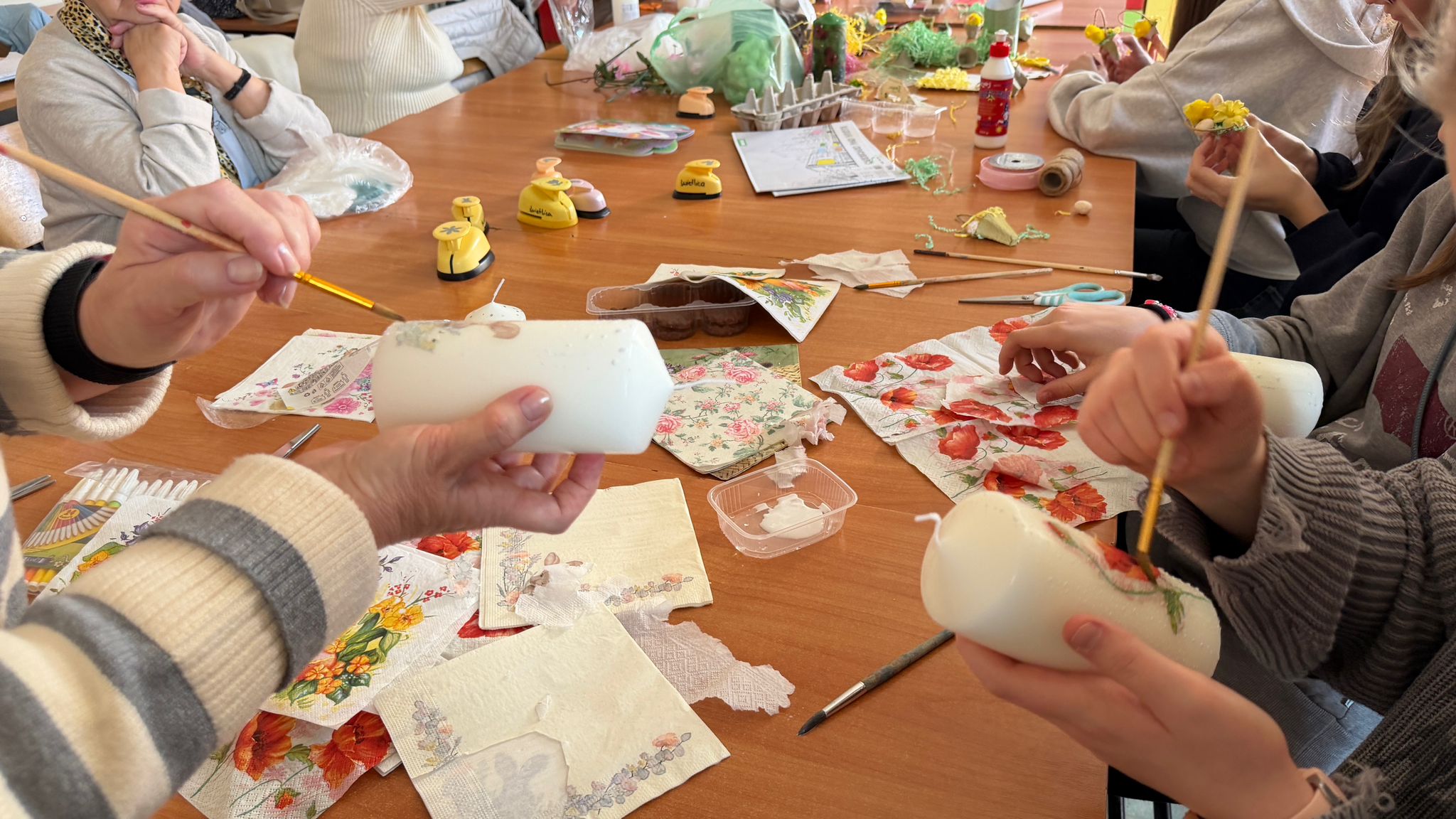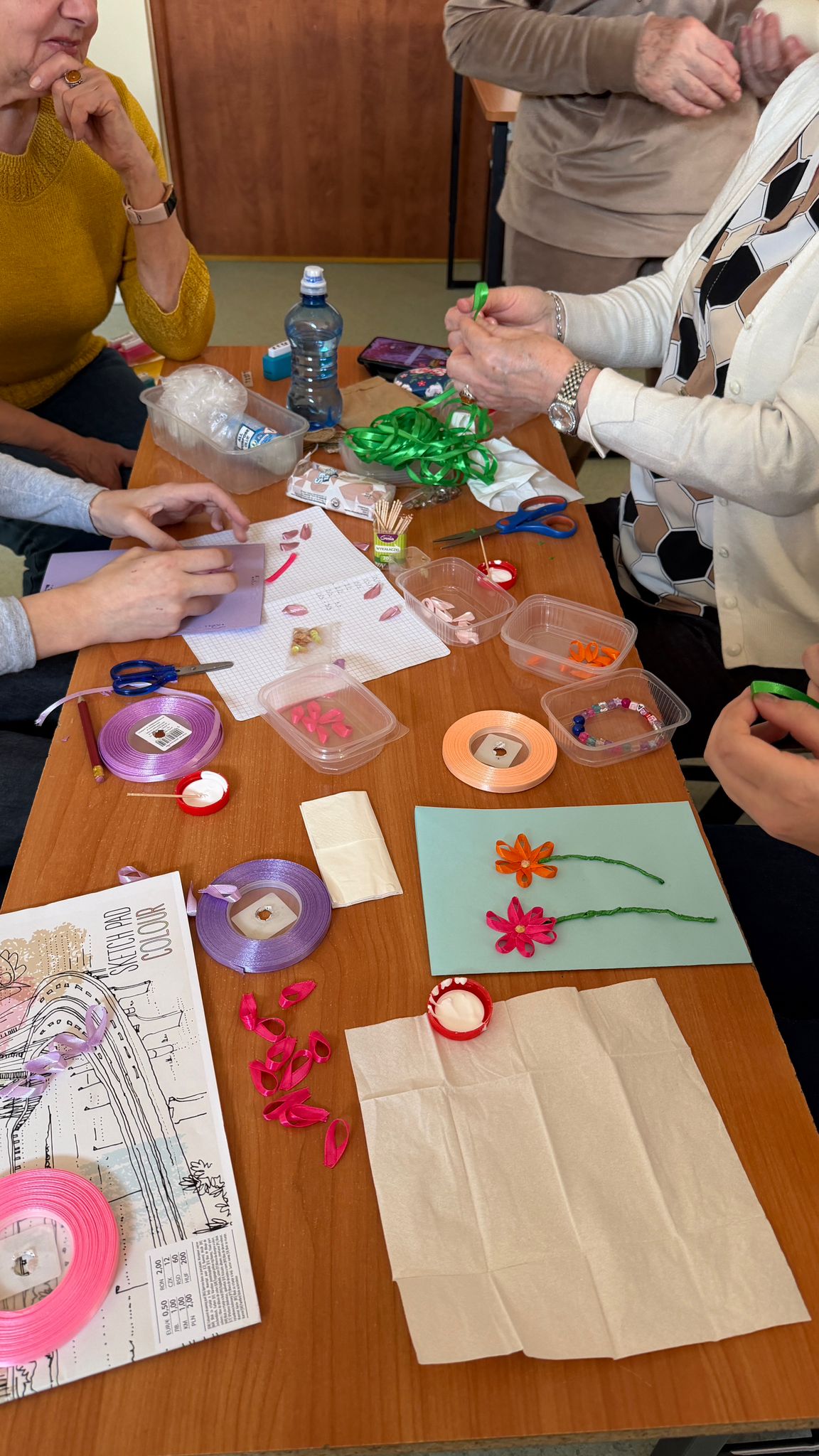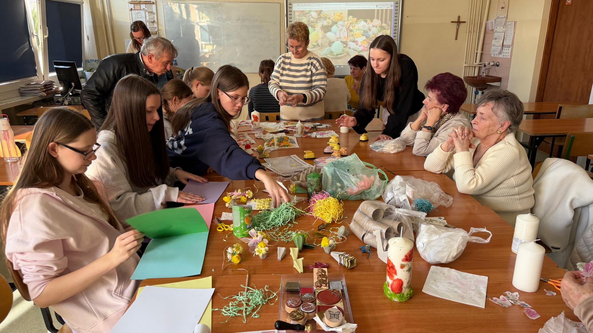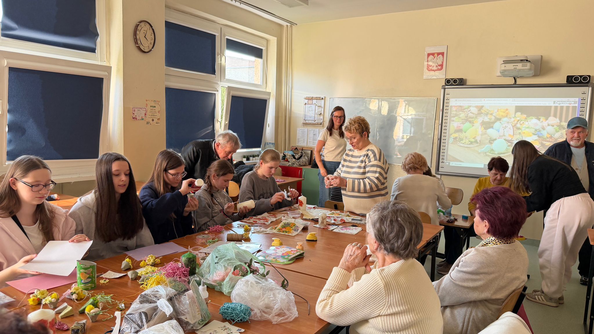 Szkolne Koło Wolontariatu zorganizowało przed świętami spotkanie z seniorami działającymi przy Radzie Osiedla. Wspólnie tworzyliśmy ozdoby świąteczne, spędzając czas w miłej i serdecznej atmosferze. Przygotowane dekoracje zostały następnie zaniesione do Domu Pomocy Społecznej razem ze zbieranymi wcześniej skarpetkami dla jego mieszkańców.