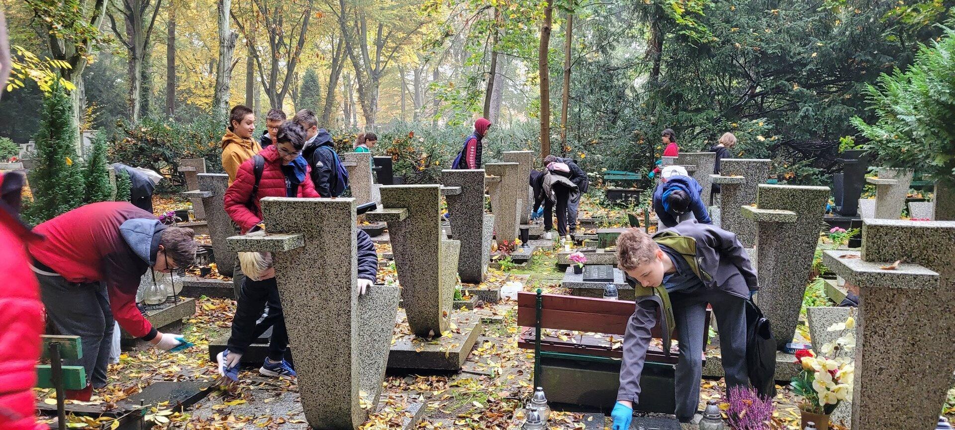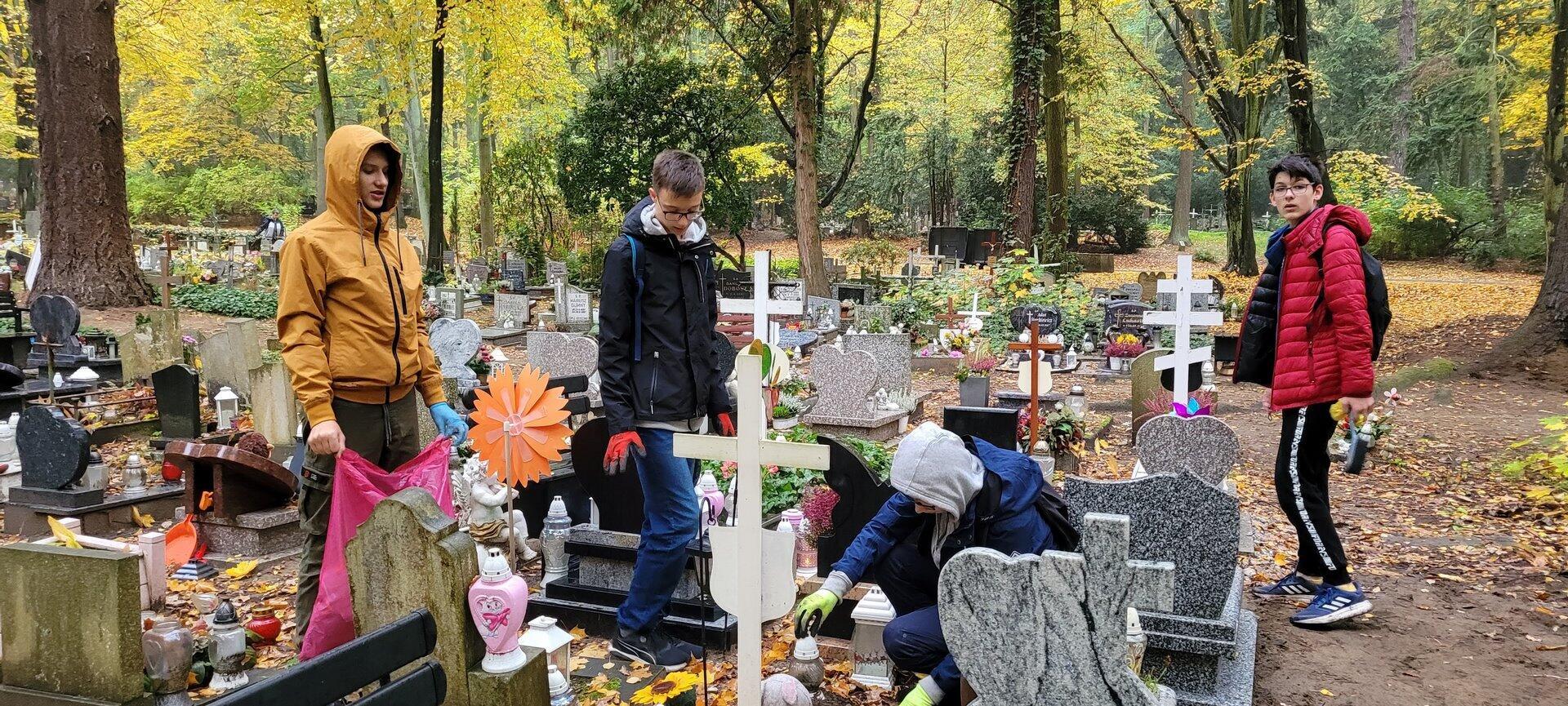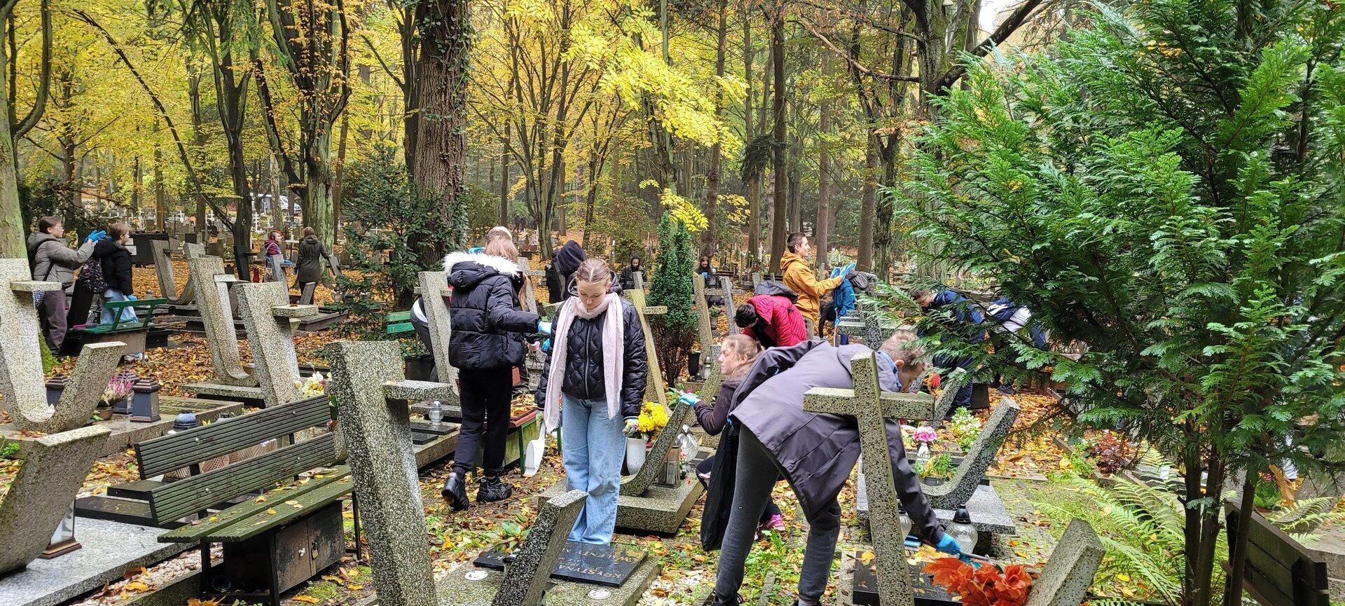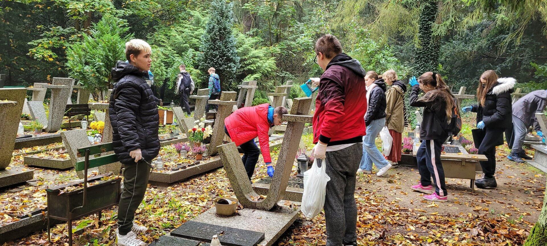 22 października wolontariusze z naszego Szkolnego Koła Wolontariatu, jak co roku spotkali się na Cmentarzu Centralnym w Szczecinie, gdzie porządkowali groby więźniarek niemieckiego obozu koncentracyjnego w Ravensbrück oraz zaniedbane, często bezimienne groby w kwaterze dziecięcej. Pamięć o zmarłych jednoczy ludzi różnych pokoleń i przekonań, łączy przeszłość z teraźniejszością. Sprzątanie cmentarza dla wolontariuszy było lekcją szacunku dla tradycji i poszanowania miejsca pamięci oraz okazją do refleksji na temat sensu życia i przemijania.