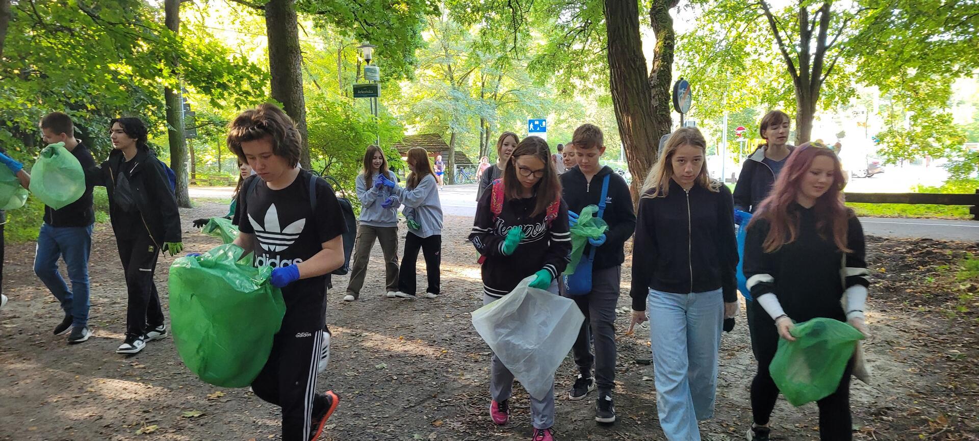 W sobotę 16 września 2023r. odbyła się 30 Akcja Sprzątania Świata „Sprzątanie łączy ludzi” w ramach, której wolontariusze z naszej szkoły pod nadzorem opiekunów Szkolnego Koła Wolontariatu wzięli udział w sprzątaniu Lasku Arkońskiego. Wolontariusze zaopatrzeni w worki i rękawice ruszyli w las. Efektem naszej pracy były worki wypełnione: plastikiem, szkłem czy odpadami zmieszanymi.