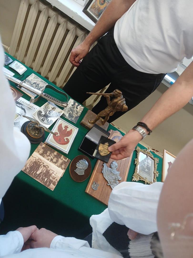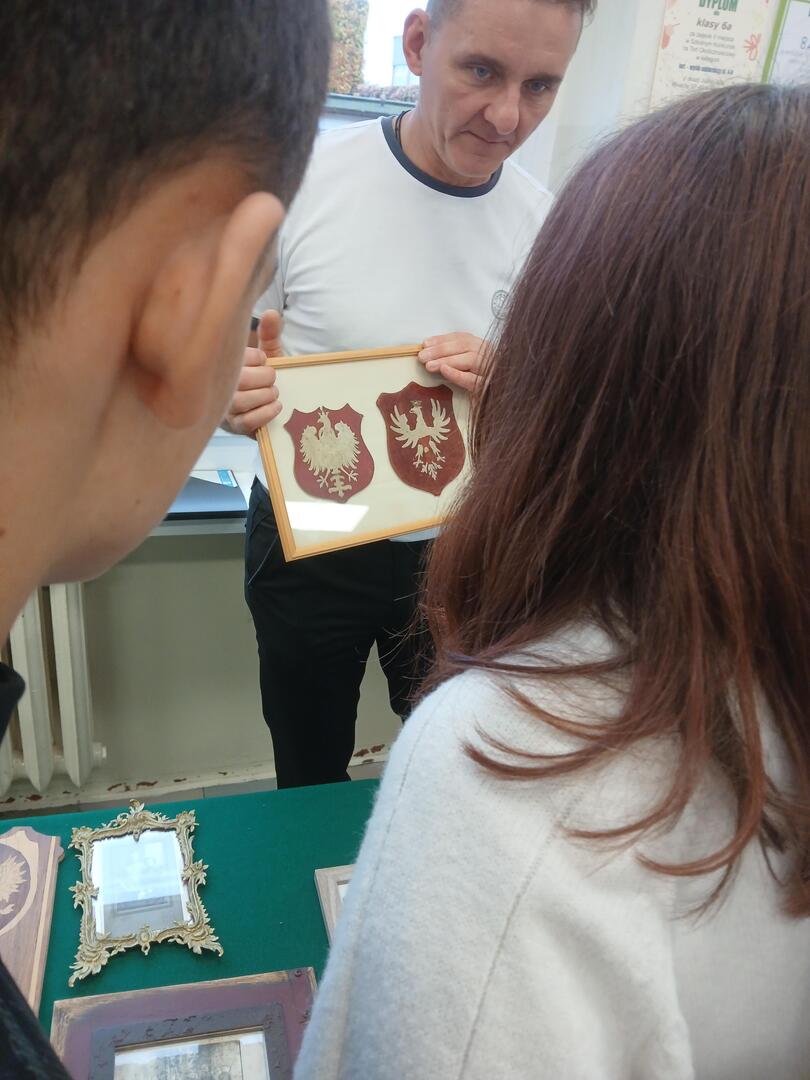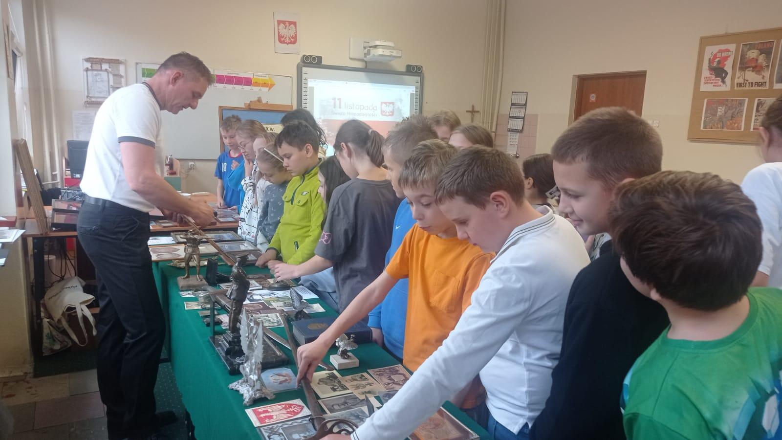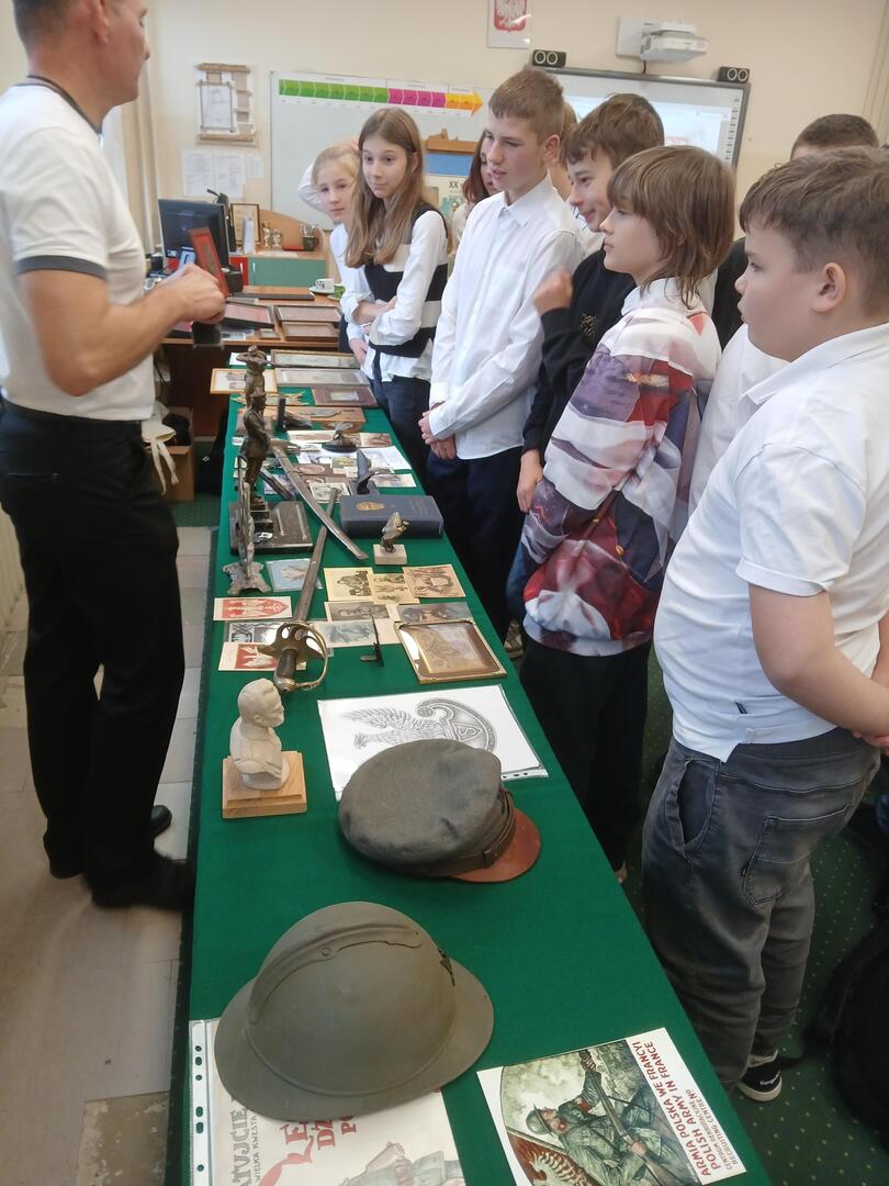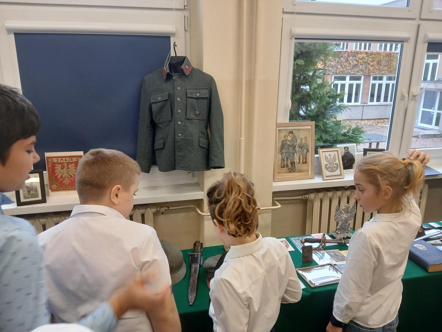 Eksponaty oglądaliśmy słuchając ciekawego wykładu o okresie odzyskiwania przez Polskę wolności. To spotkanie idealnie dopełniło obchodzone w szkole Narodowe Święto Niepodległości.