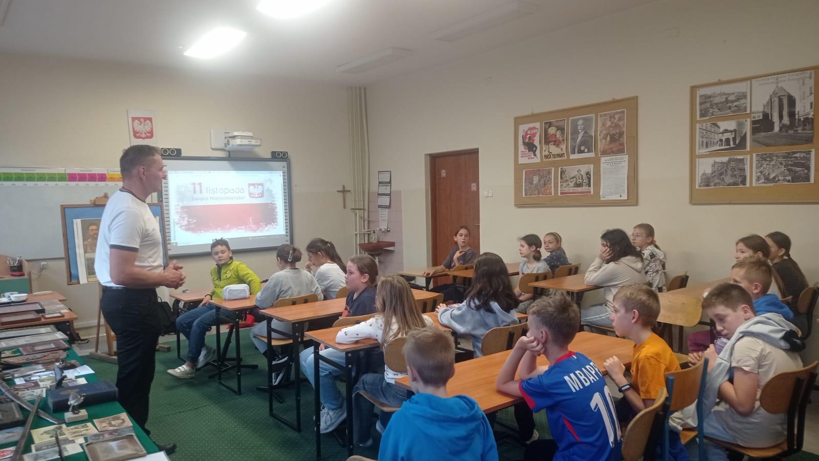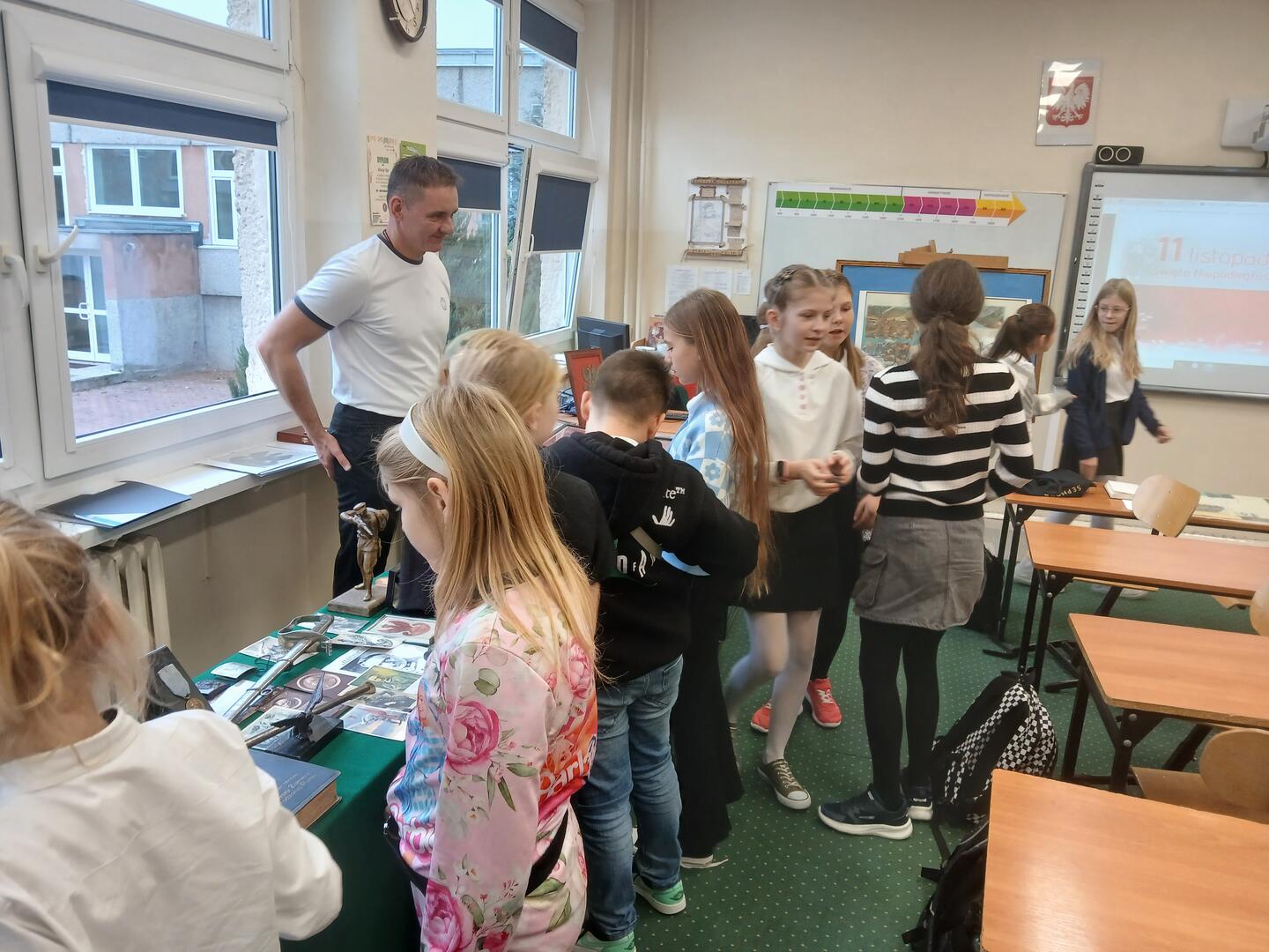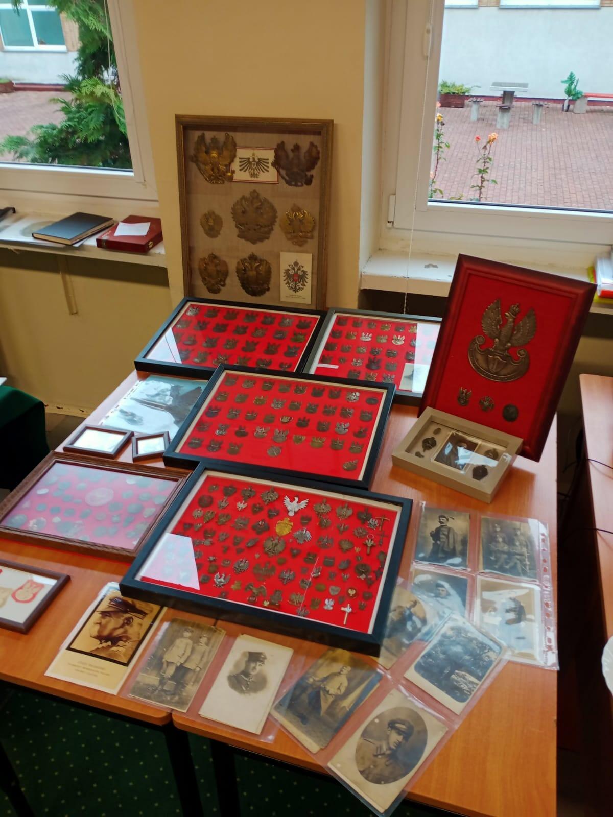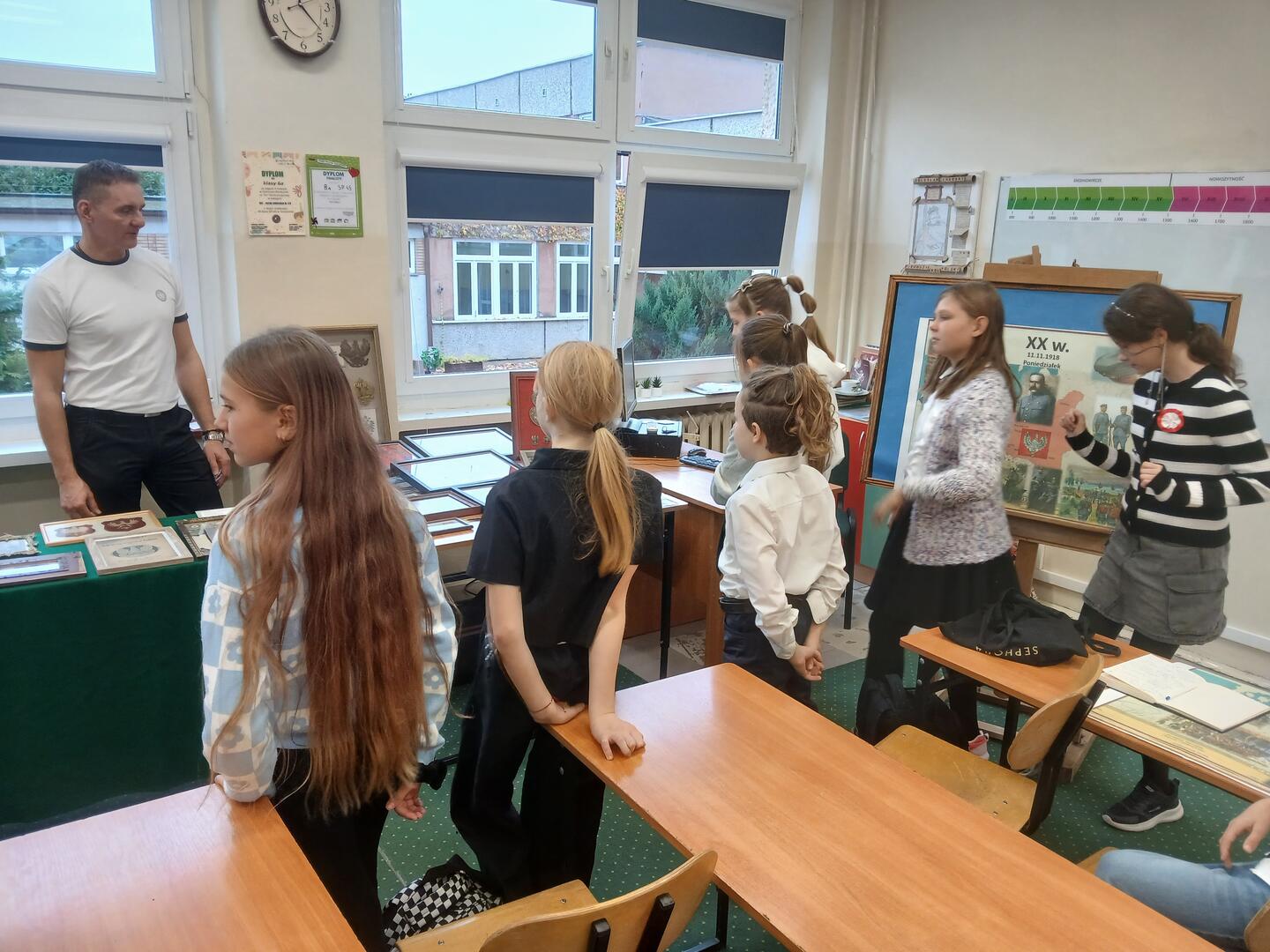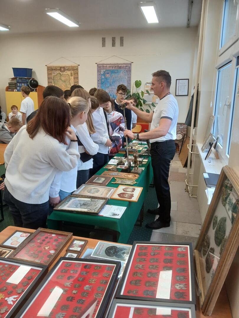 Eksponaty oglądaliśmy słuchając ciekawego wykładu o okresie odzyskiwania przez Polskę wolności. To spotkanie idealnie dopełniło obchodzone w szkole Narodowe Święto Niepodległości.