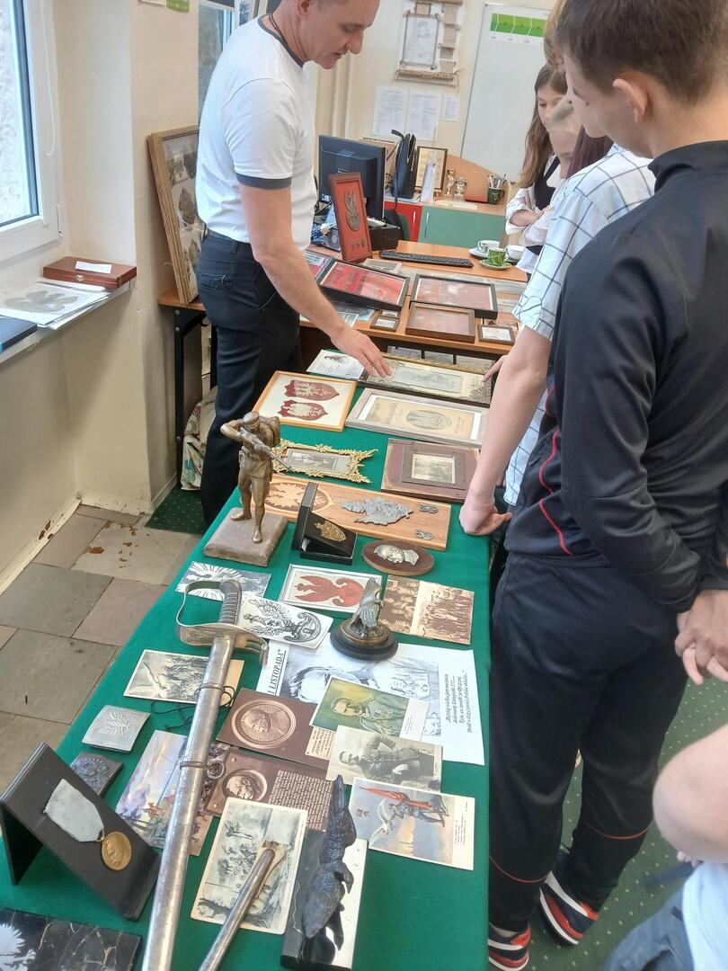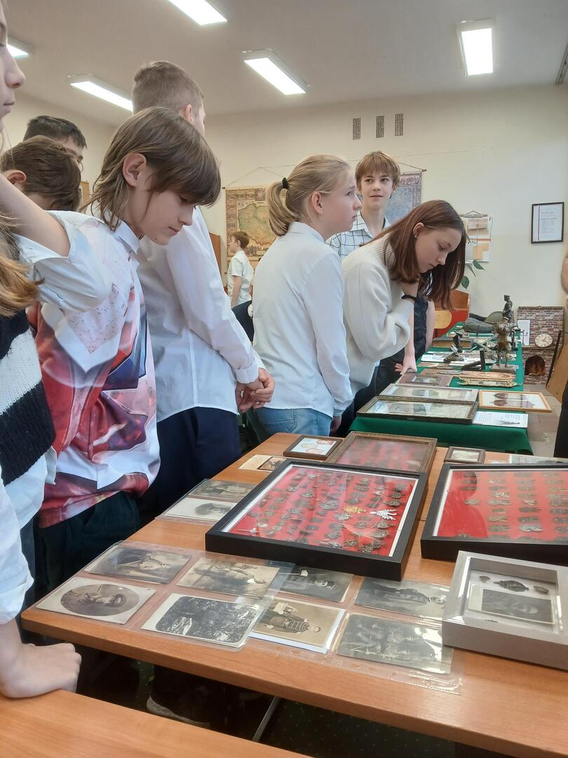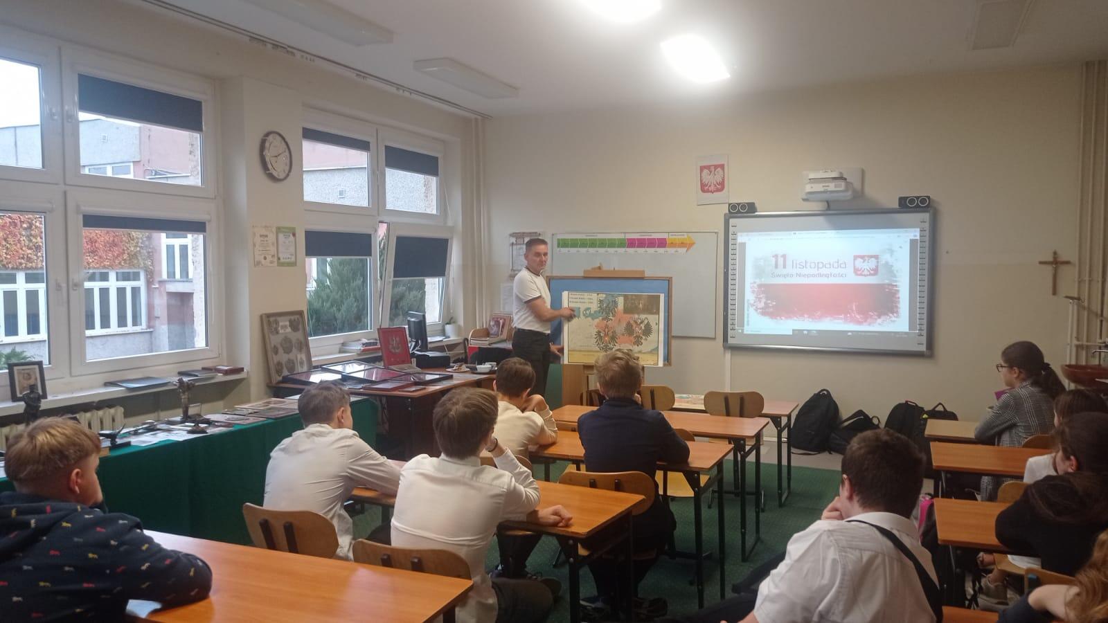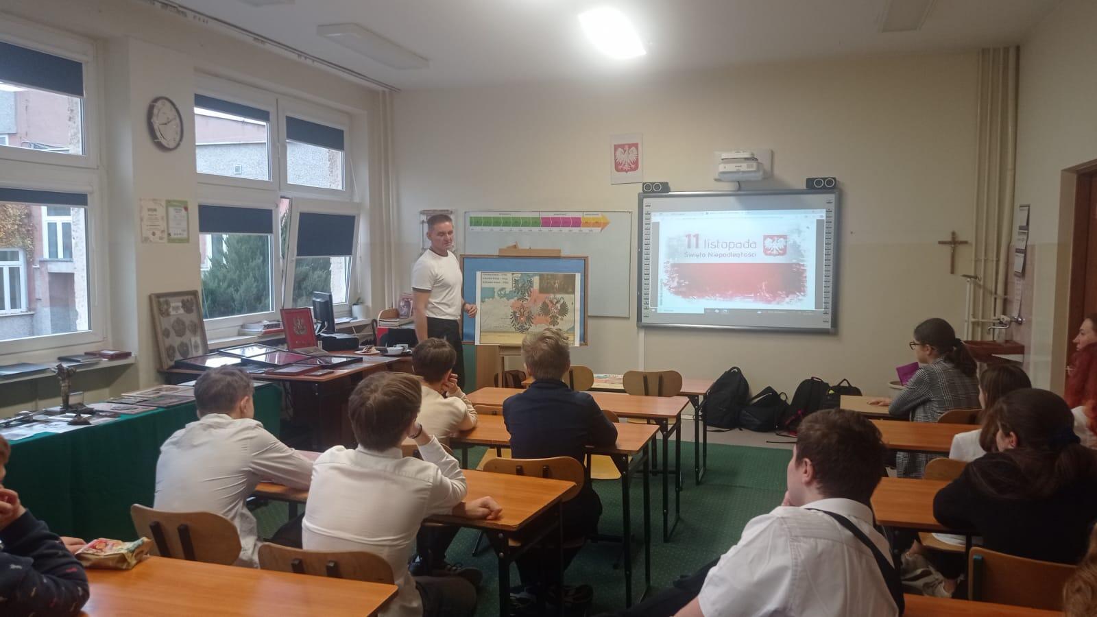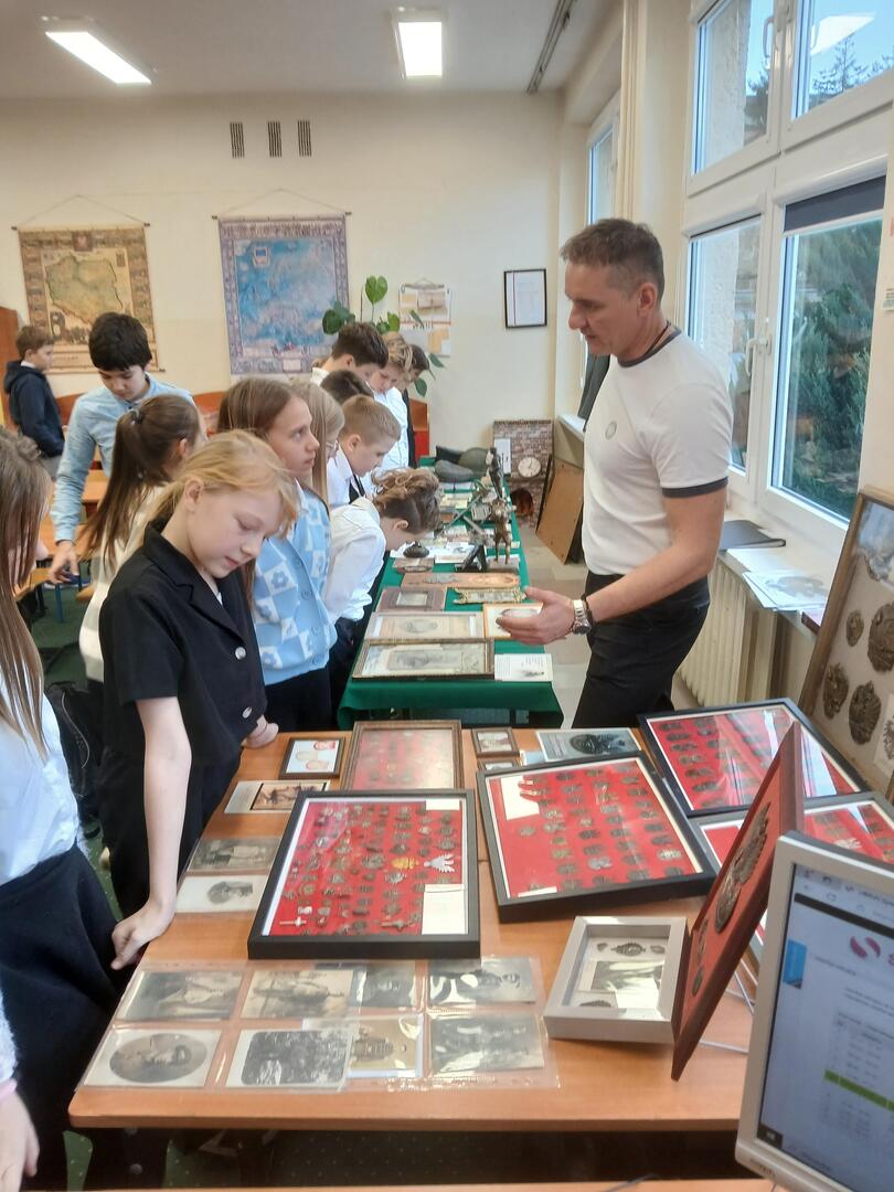 Eksponaty oglądaliśmy słuchając ciekawego wykładu o okresie odzyskiwania przez Polskę wolności. To spotkanie idealnie dopełniło obchodzone w szkole Narodowe Święto Niepodległości.
