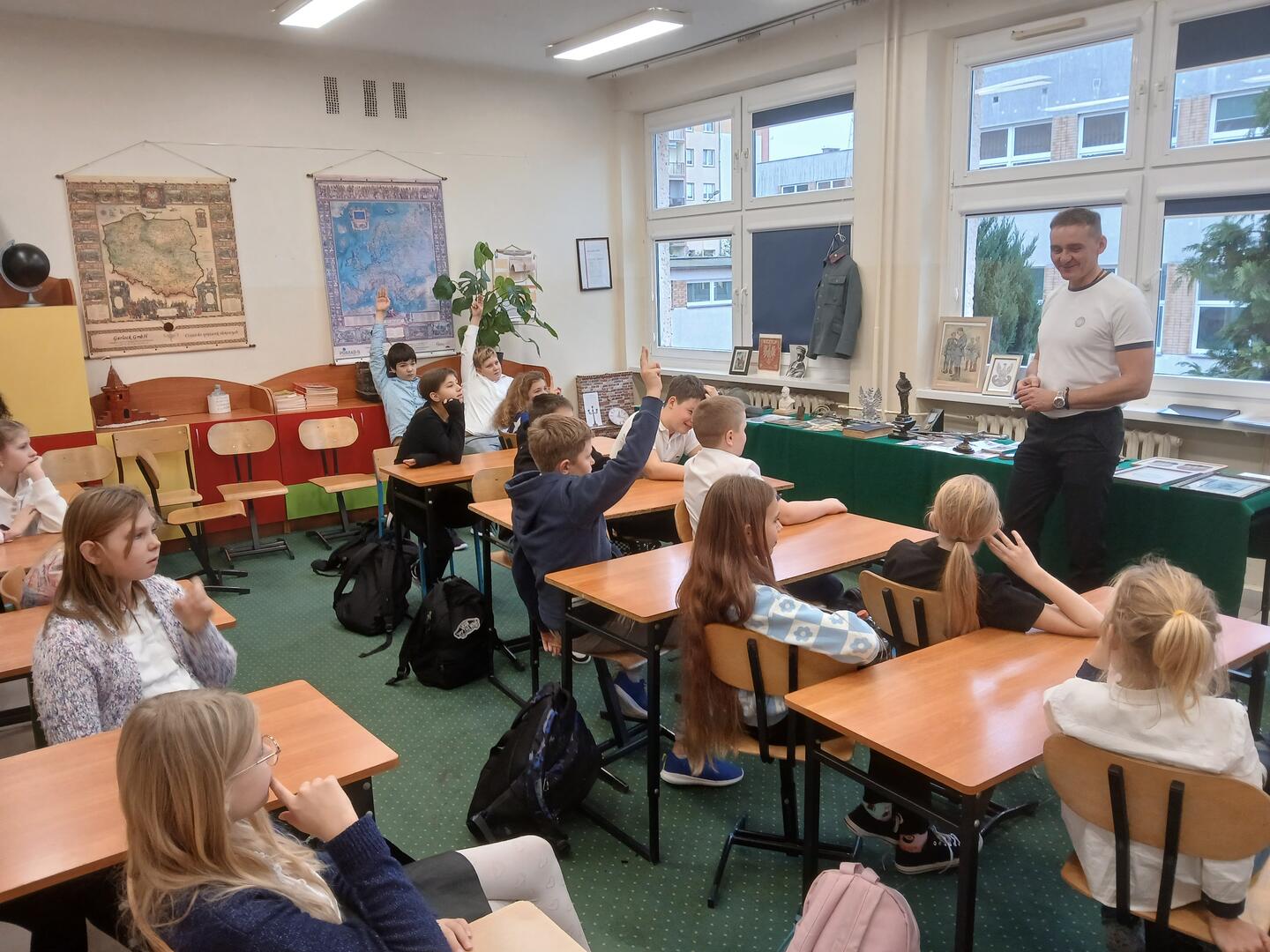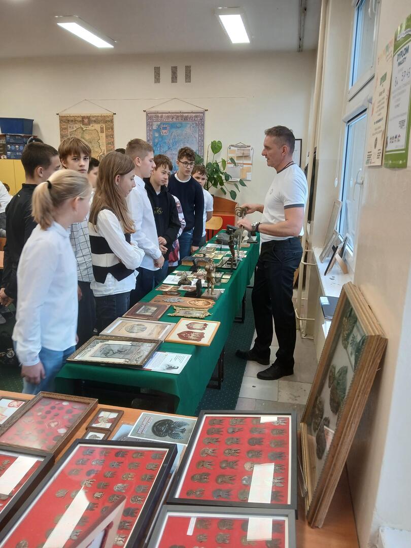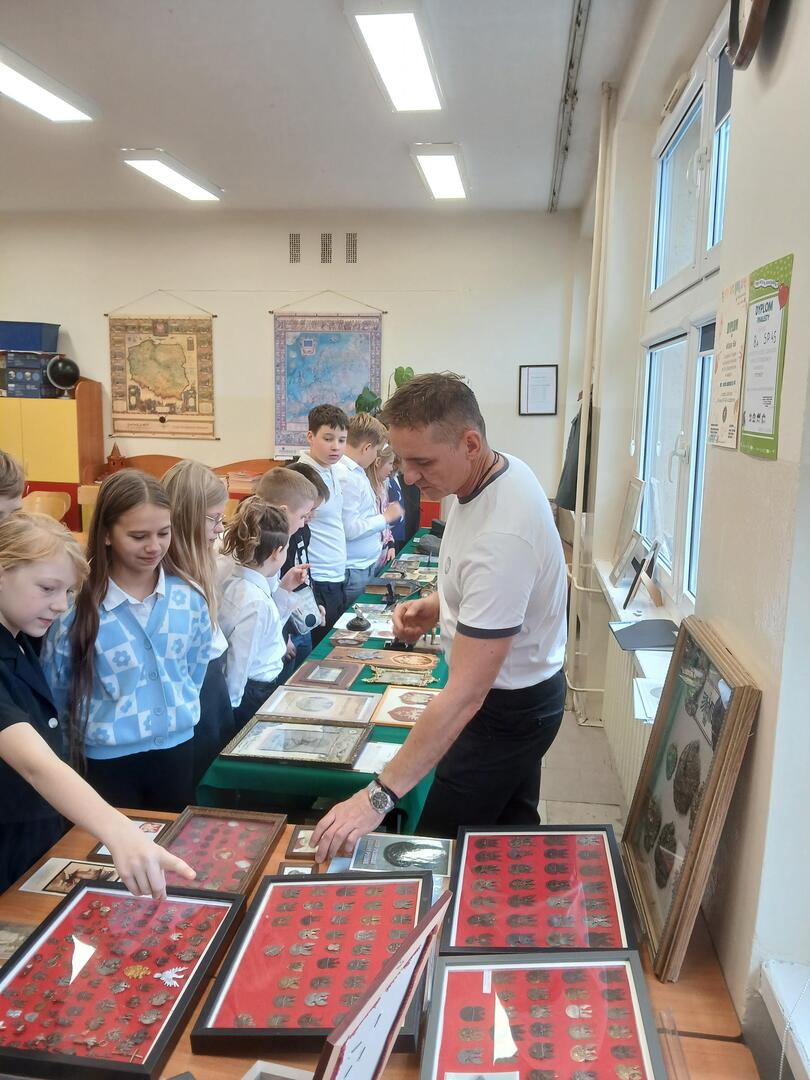 Dziś mieliśmy zaszczyt gościć pana Tomasza Glińskiego- kolekcjonera i pasjonata historii. Dzieci zapoznały się z częścią bogatego zbioru orłów- przypinek do czapek wojskowych. Oglądaliśmy też broń i mundury. Ten dzień był prawdziwą przygodą z historią w tle.