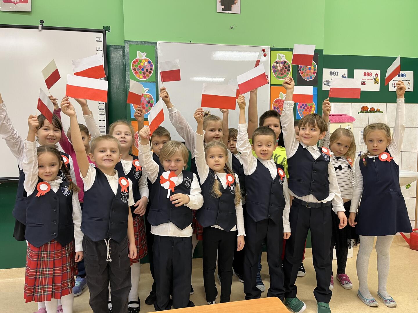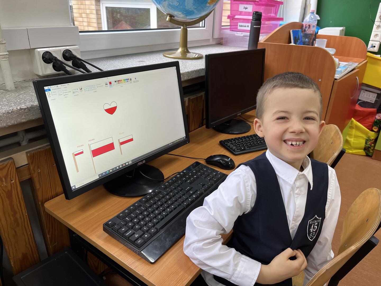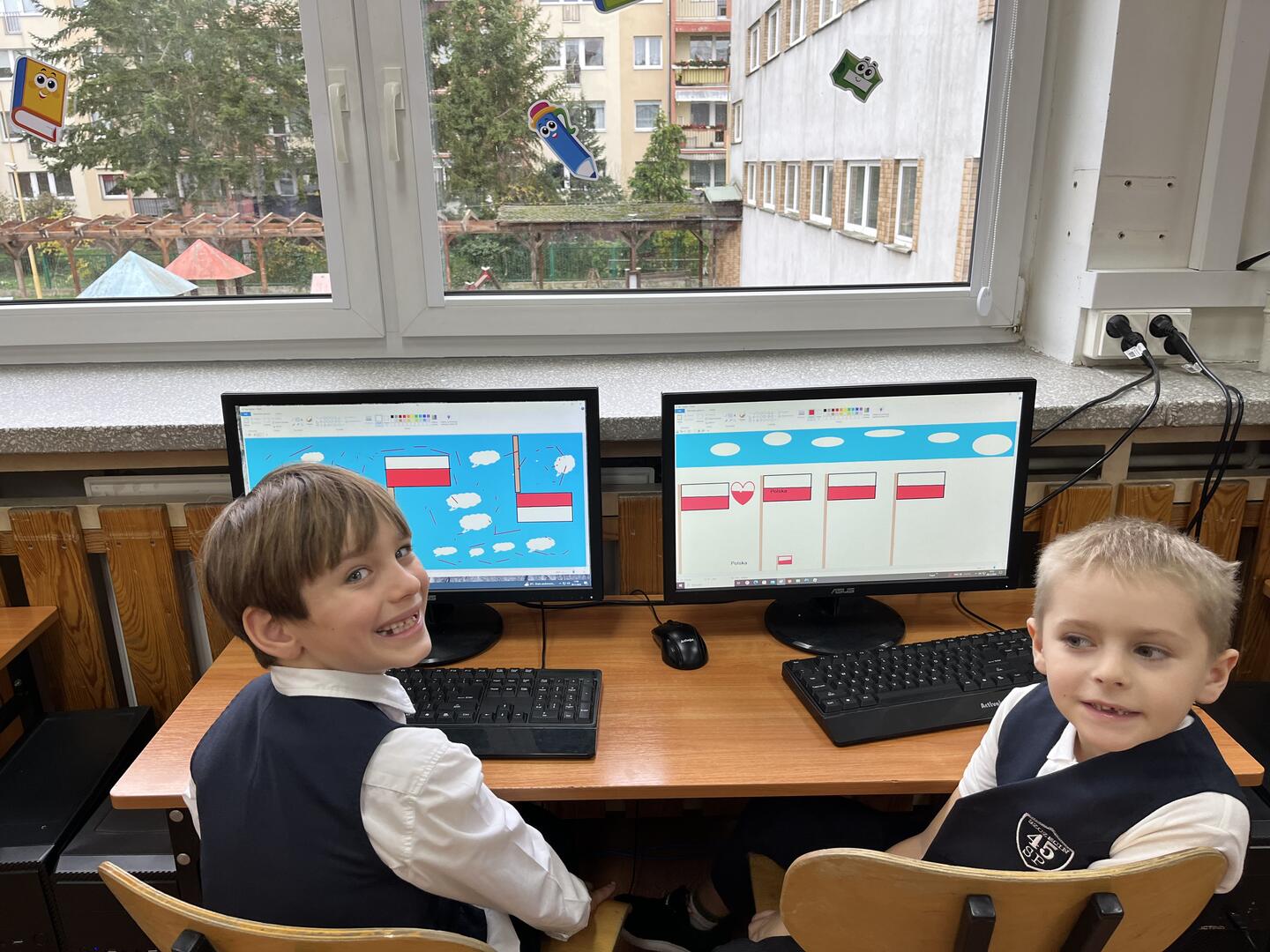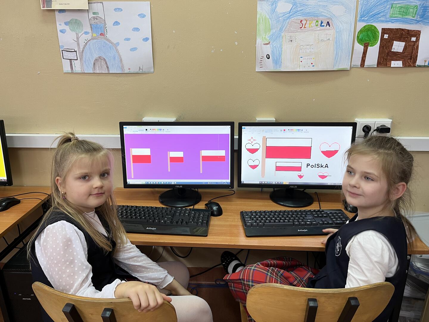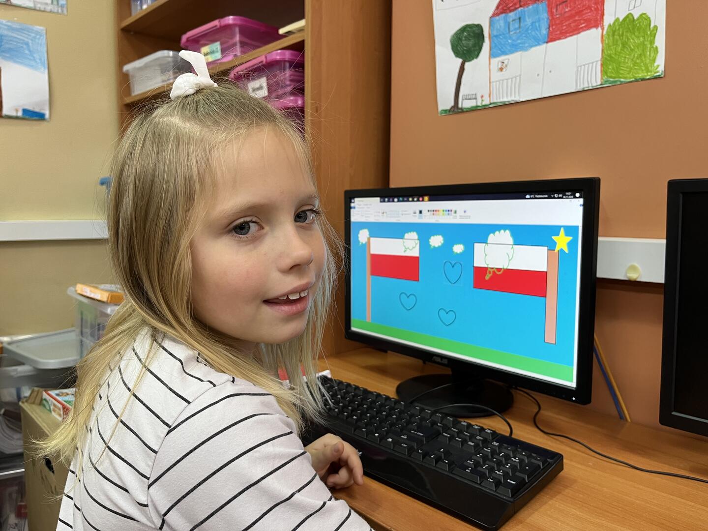 Uczennice i uczniowie klasy 1 b przygotowywali się do obchodów Święta Niepodległości kilka dni wcześniej. W czwartek na edukacji polonistycznej wysłuchały pogadanki i obejrzały film w ramach lekcji patriotyzmu. Na edukacji plastycznej samodzielnie wykonały flagę Polski. Był to też dobry moment na przypomnienie o pozostałych symbolach Polski. Dzieci wspólnie śpiewały hymn Polski pamiętając o zachowaniu właściwej postawy oraz kolorowały godło Polski. W piątek z własnoręcznie wykonanymi flagami uczestniczyły w akademii przygotowanej przez trzecioklasistów. Podsumowaniem tego niezwykłego, ważnego dla każdego Polaka Dnia była lekcja informatyki, na której uczennice i uczniowie wykonali tematyczną pracę wykorzystując dotychczas poznane narzędzia edytora grafiki Paint. Coroczna tradycja organizowania w naszej szkole akademii Święta Niepodległości jest wspaniałą okazją kształcenia postaw patriotycznych, przypomnienia trudnej drogi kraju do suwerenności oraz wspólnego świętowania.