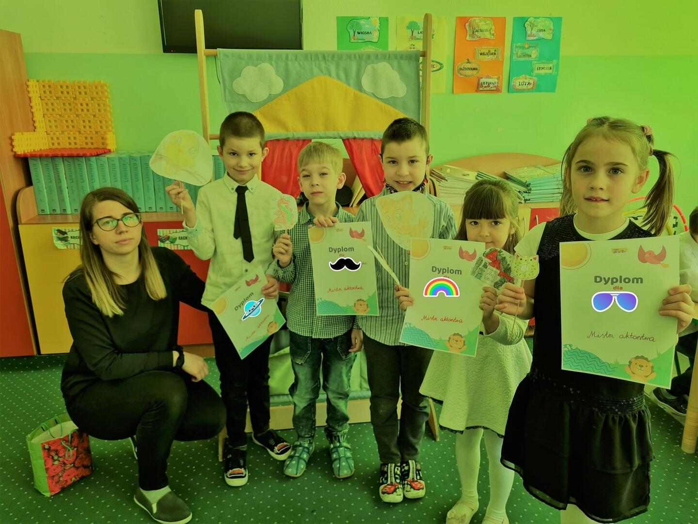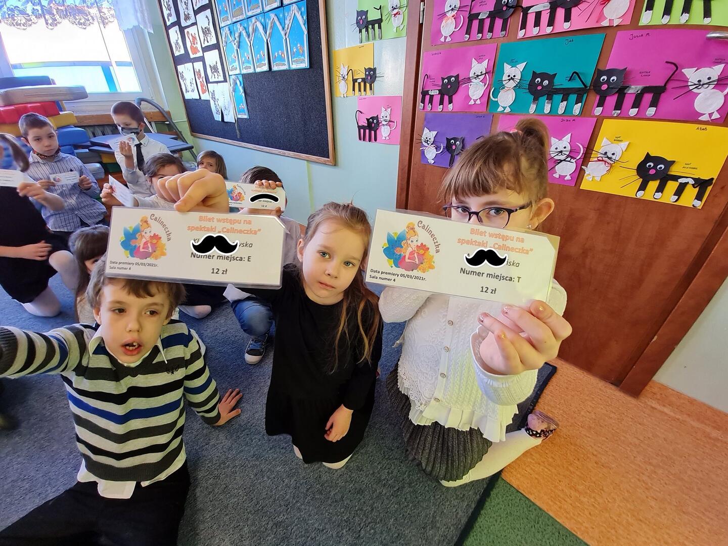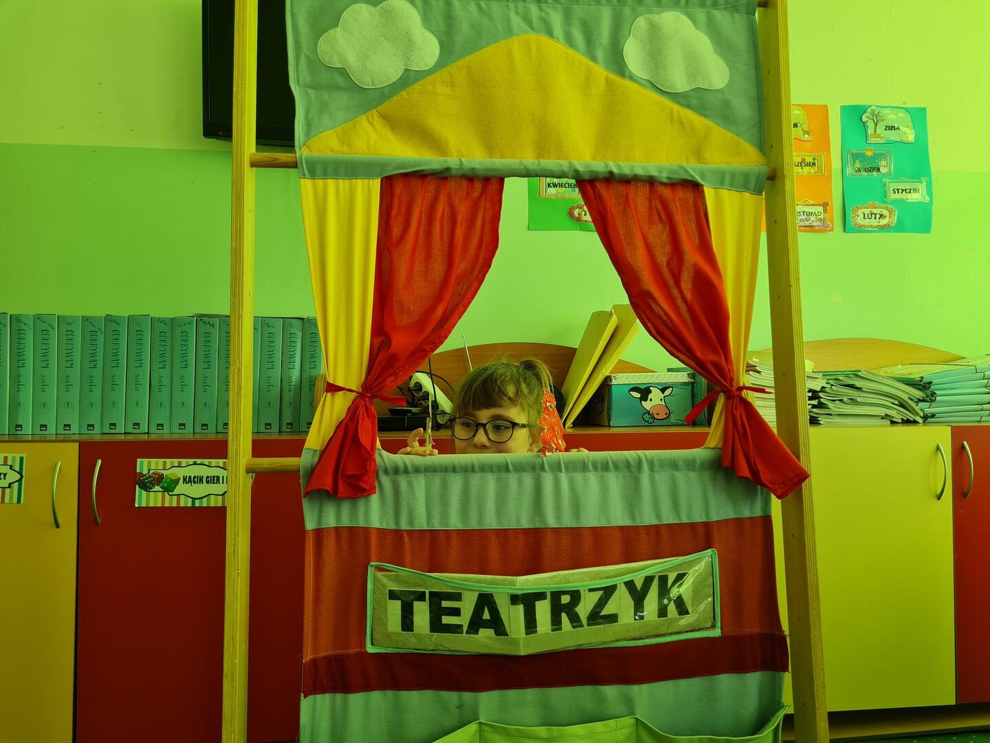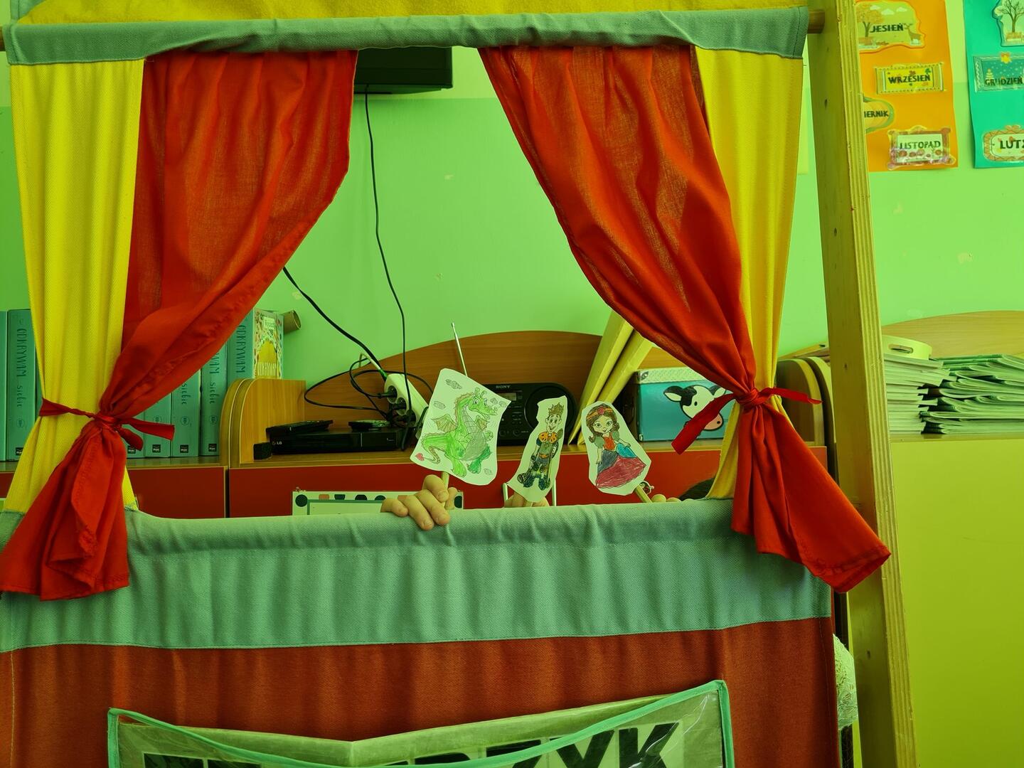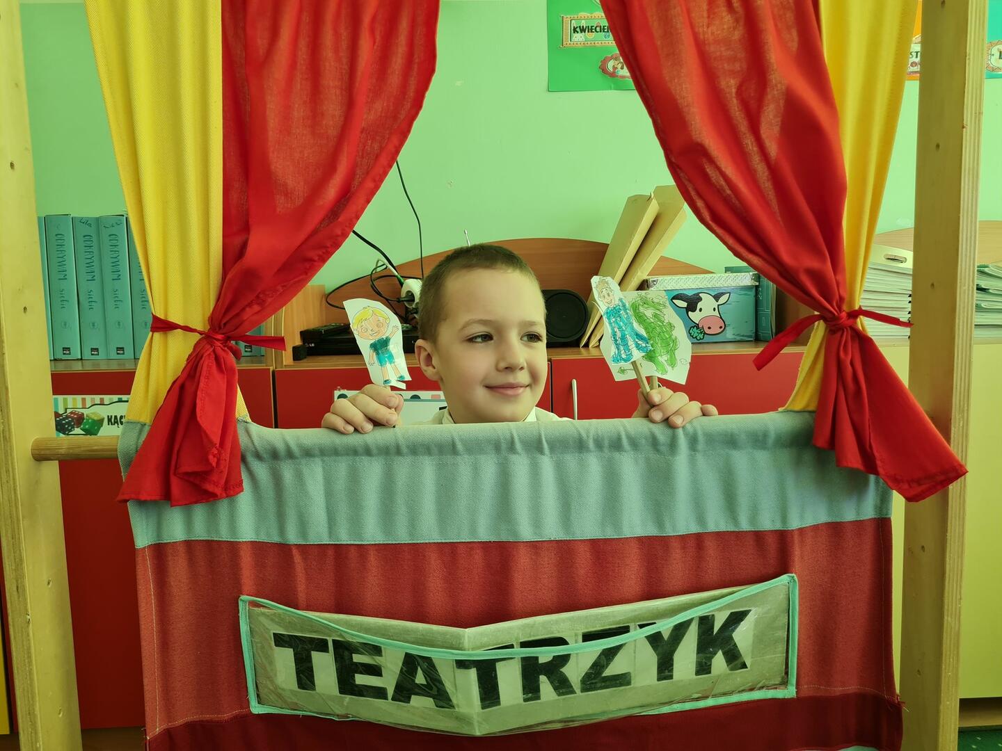Przedszkolaki przez cały tydzień zajmowały się tematyką związaną z teatrem. Dzieci pogłębiły swoją wiedzę na temat teatru. Poznały między innymi jego budowę. Samodzielnie tworzyły kukiełki do historii o smoku i królewnie. Następnie odgrywały wymyślone przez siebie scenki teatralne. Po zakończonym zadaniu dzieci otrzymały dyplom “Mistrza aktorstwa”. Temat okazał się na tyle ciekawy, że dzieci organizowały sobie teatr również podczas zabawy swobodnej. Tydzień został zakończony wizytą w teatrze. Ze względu na trwającą pandemię wycieczka do prawdziwego teatru była niemożliwa więc zorganizowaliśmy teatr w naszej sali przedszkolnej. Wszystkie dzieci pamiętały o stosownym stroju. Każdy z małych widzów musiał samodzielnie kupić bilet w kasie biletowej, gdzie obsługiwała pani Iga. W tym celu należało odliczyć odpowiednią kwotę pieniędzy. Następnym zadaniem było odnalezienie właściwego miejsca, oznaczonego literą. Dzieci przestrzegały wszystkich zasad zachowania obowiązujących w teatrze. Spektakl, który obejrzeliśmy to “Calineczka”. Widowisko okazało się bardzo interesujące. W ciągu tego tygodnia dzieci wiele się nauczyły i czerpały dużo radości z podejmowanych działań.