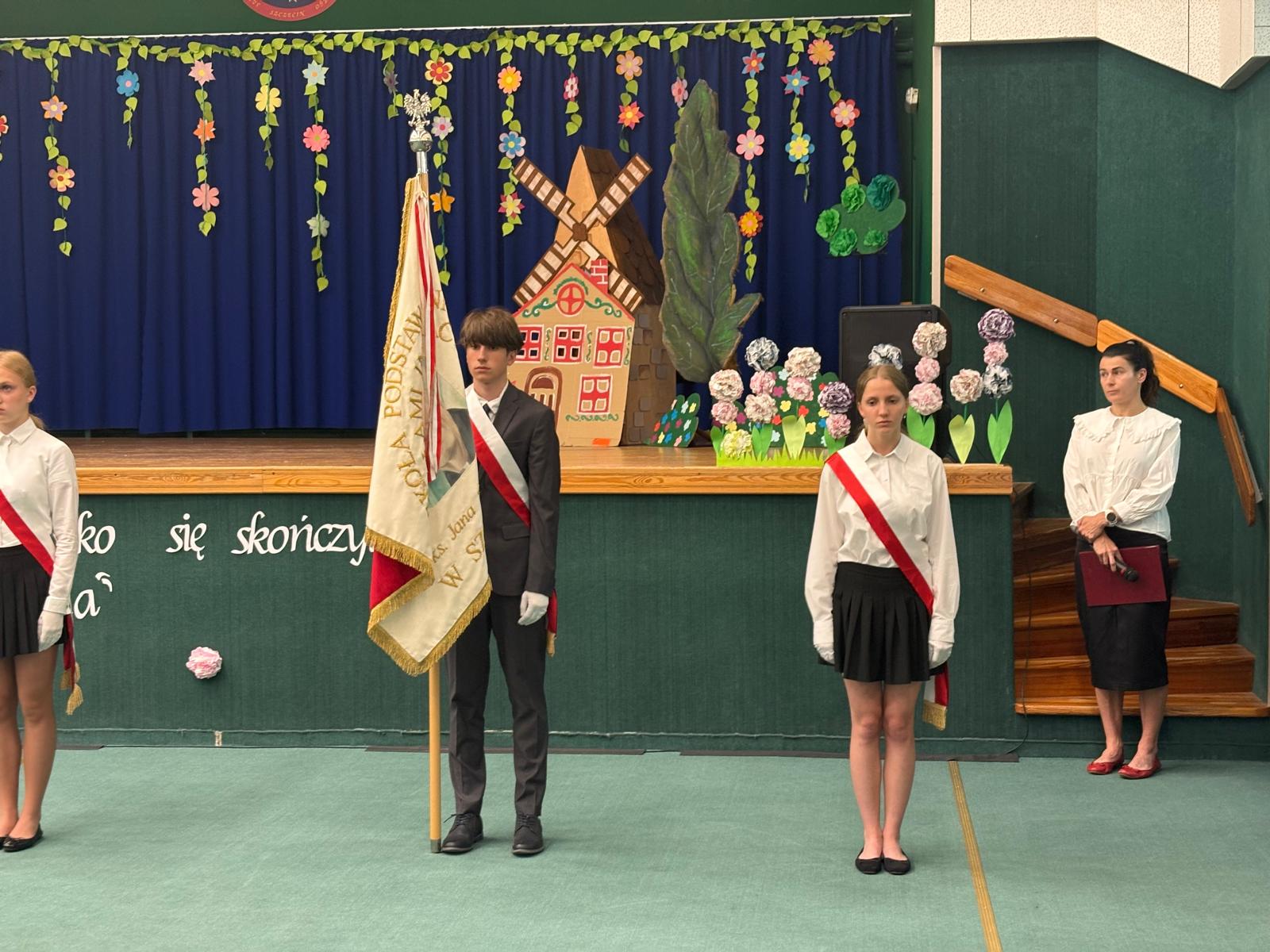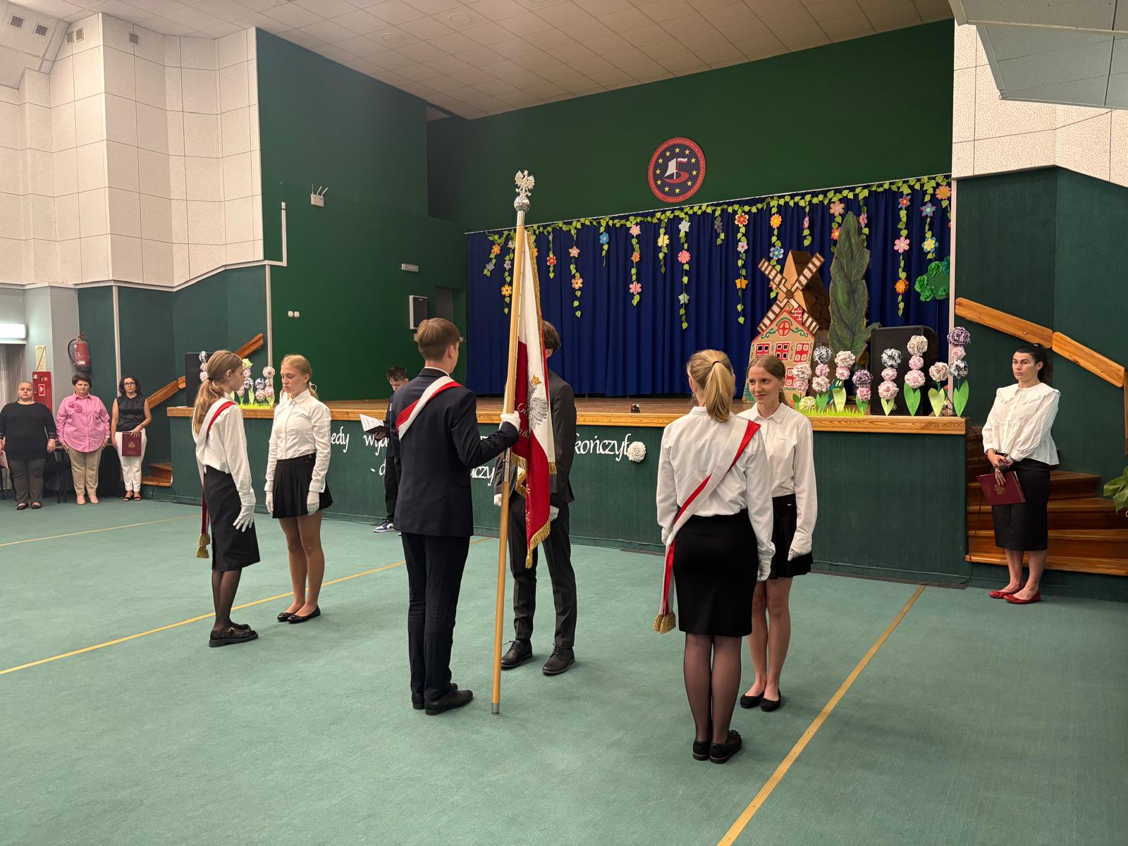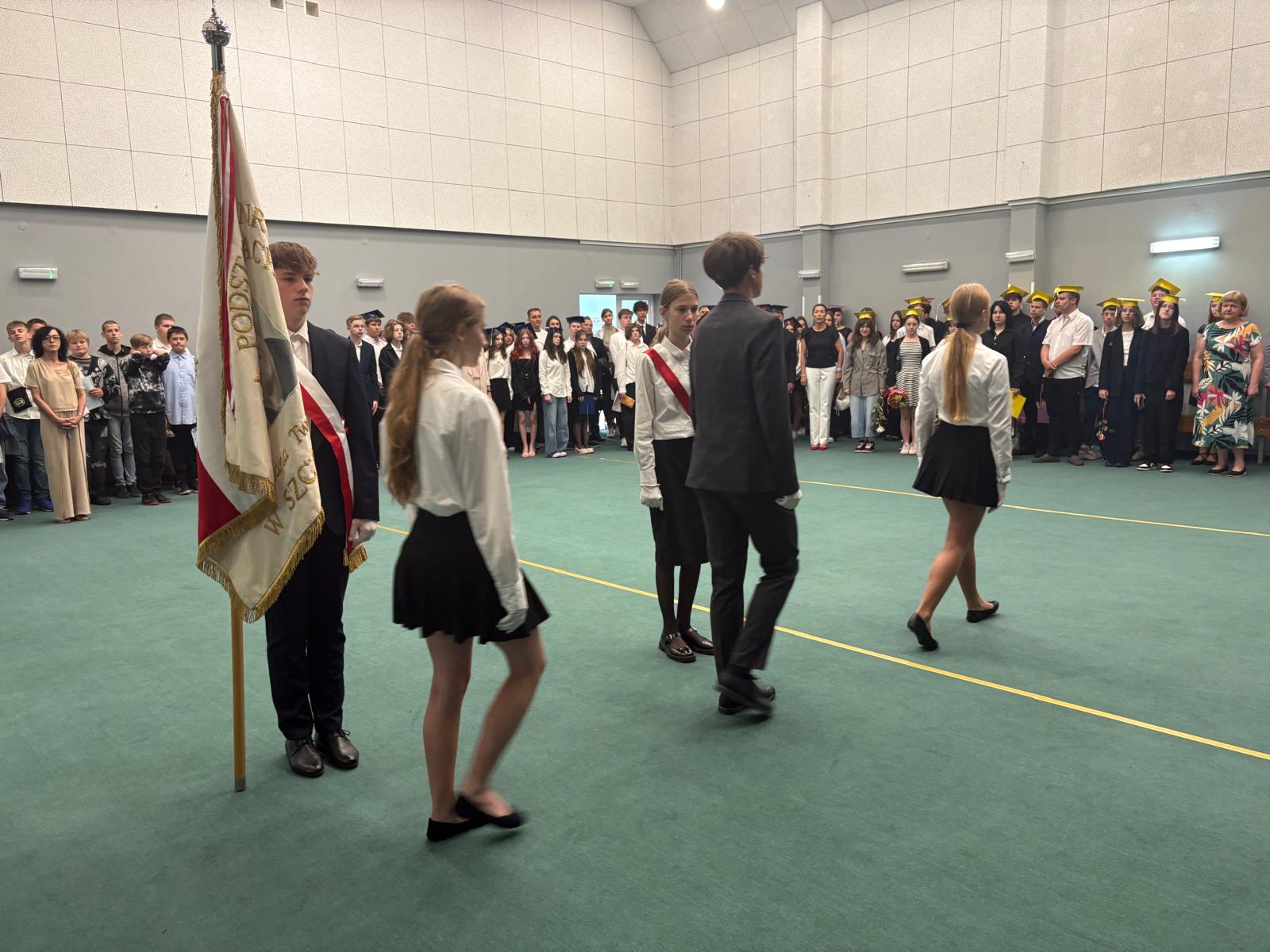 Zakończenie roku szkolnego to zawsze wyjątkowy moment w życiu szkolnej społeczności — czas podsumowań, refleksji, ale także przekazywania tradycji kolejnym rocznikom. Podczas uroczystego apelu kończącego rok szkolny 2024/2025, w obecności klas siódmych i ósmych, odbyło się symboliczne przekazanie sztandaru — wyjątkowy moment, który podkreśla ciągłość wartości pielęgnowanych w naszej szkole.
