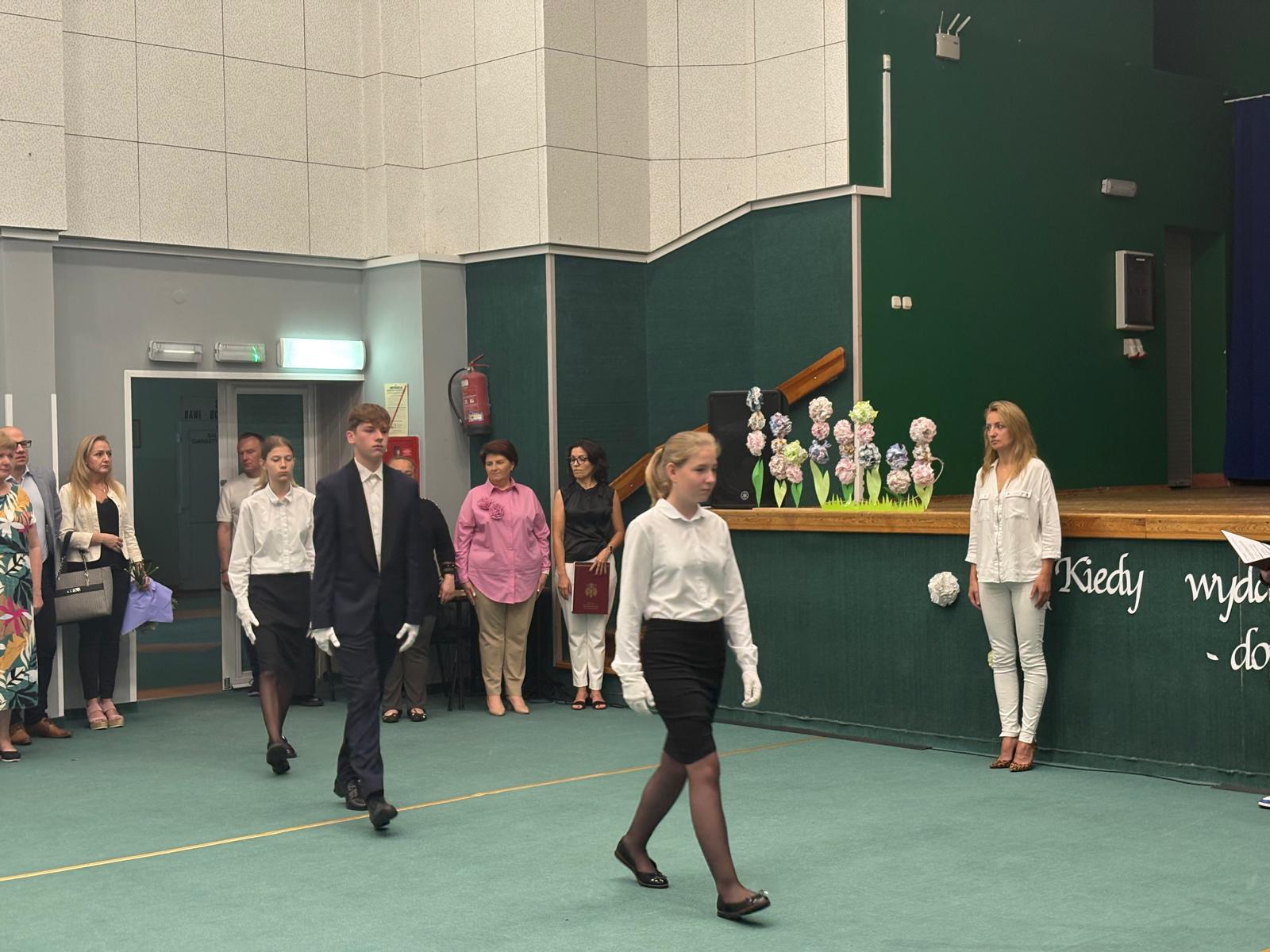Dziękujemy Wam za godną postawę, odpowiedzialność i piękne świadectwo oddania tradycji szkolnej. Wasze zaangażowanie pozostanie wzorem dla młodszych koleżanek i kolegów.
