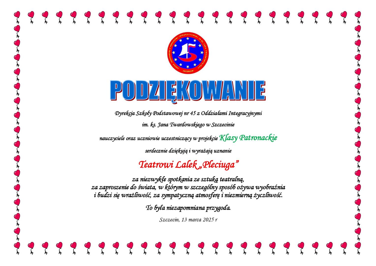 Uczniowie kl. 2c w I półroczu z dużym zaangażowaniem brali udział w projekcie „Klasy Patronackie” prowadzonym przez Teatr Lalek „Pleciuga” w Szczecinie. Ostatnią aktywnością w tym wydarzeniu dla uczniów naszej szkoły był udział w spektaklu „Oskar i rzeczy” oraz warsztaty teatralne, podczas których dzieci tworzyły lalki – kukiełki. Wszyscy dali ponieść się fantastycznej wyobraźni, dzięki czemu powstały prawdziwe dziecięce dzieła sztuki.