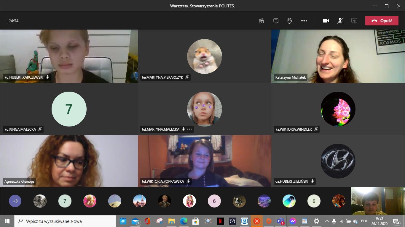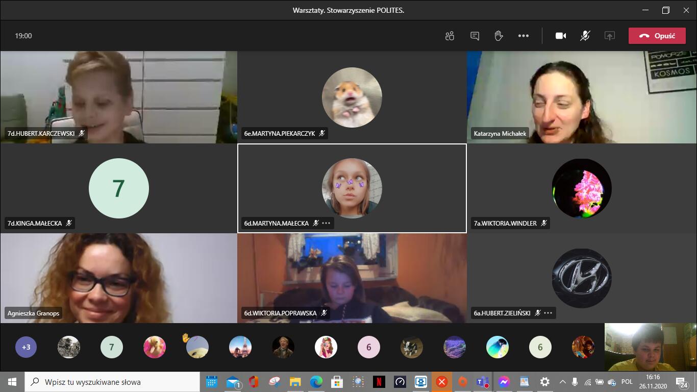 Mimo pandemii Szkolne Koło Wolontariatu działa cały czas. Przygotowujemy się do obchodów Międzynarodowego Dnia Wolontariatu, nagrywając m.in. Bajki od Wolontariuszy, które uprzyjemnią przebywanie w świetlicy młodszym dzieciom, a przed chwilą skończyliśmy warsztaty, które poprowadziła pani Katarzyna Michałek specjalista ds. wolontariatu ze Stowarzyszenia POLITES. Rozmawialiśmy o pracy wolontariuszy za granicą, międzynarodowych akcjach wolontariackich czy współpracy z zagranicznymi organizacjami. A to tylko niektóre z tematów, które zostały poruszone podczas dzisiejszego spotkania.